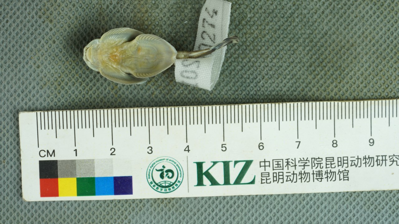 峨眉后平鳅属于平鳍鳅科后平鳅属动物,是泥鳅的一种,体短,前部宽扁,后部窄小,背部隆起,腹面平坦,体宽显著大于体高。背鳍iii-7—9;胸鳍Ⅸ一KI-10-13;腹鳍V一Ⅶ一12一13;臀鳍ii-5。侧线鳞70-75。标准长为体高的4.5—5.5倍,为体宽的3.1—3.7倍,为头长的4.O一5.0倍,为尾柄长的9.5—14.l倍,为尾柄高的11.5—12.9倍。头长为体高的1.O—1.2倍,为头宽的0.8-0.9倍,为吻长的1.7—2.1倍,为眼径的4.4一5.6倍,为眼间距的1.8—2.2倍。头宽为口裂宽的2.3—3.1倍。头短而扁平。吻扁圆。吻皮下包成吻褶并与上唇间形成吻沟,吻褶叶间具2对小吻须.口下位,口裂小,弧形,具口角须2对,粗短,外侧l对长于内侧。唇具乳突,上唇乳突较下唇发达。颏部无须。眼小,侧上位,眼间隔宽平。鼻孔l对,距眼前缘较距吻端为近。鳃裂甚窄,仅限于胸鳍基部的背面上方。背鳍小,无硬刺,其起点距吻端较距尾鳍基稍近或相等。偶鳍向左右平展。胸鳍起点与眼前缘垂线平,末端超过腹鳍起点。腹鳍后缘鳍条左右相连成吸盘状,末端远不及肛门。臀鳍无硬刺,末端可达尾鳍基.尾鳍微凹,下叶稍长于上叶。尾柄稍侧扁.肛门紧靠臀鳍起点。体被细鳞。头、胸、腹部以及偶鳍基背面均裸露无鳞。侧线完全。背面为褐色,具团块状斑纹.各鳍均有斑纹。