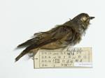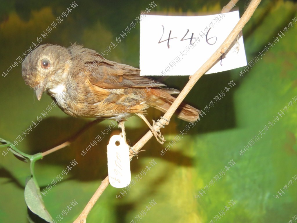 体型略小(13厘米)的红褐色鹟。眼圈皮黄,喉块白,头石板灰色,背褐,腰棕色,下体白,胸具褐色横斑,两胁及尾下覆羽棕色。通常具白色的半颈环。三级飞羽及大覆羽羽缘棕色。虹膜-褐色;嘴-黑色;脚-灰色。叫声:轻柔的低颤音si-si-si。冬季一般无声。鸣声可能为粗哑的高音tsit-tittu-tittu。习性:性惧生,喜林间空地及溪流两侧。