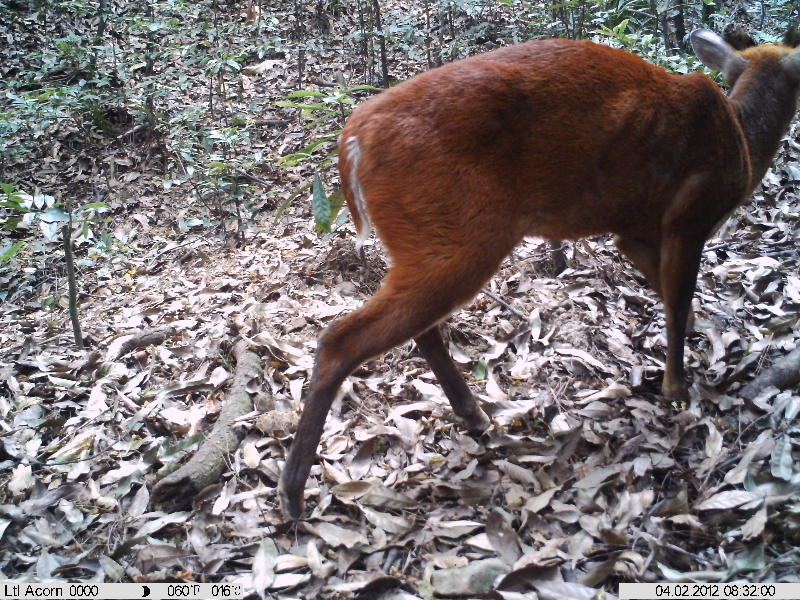 描述赤麂是麂属中体型最大的种类,体重25kg左右。外形与黄麂相似,唯全体毛色红棕,夏毛尤为明显。角柄特长,明显超过麂属其他麂类的角柄长度。从北京动物所测得22号成年雄性赤麂角的数据(无产地),角柄长为8.14土1. 38cm,角冠长为10.08土2.31cm,角冠略长于角柄。但其中4头刚达性成熟的个体,其角冠短于角柄,角柄长9.83土1.61cm,角冠为7.13土0.94cm。 4龄以上个体的角冠都长于角柄。从云南测得的15号赤麂标本,角柄与角冠长度并无显著差异。鼻骨与前领骨绝大多数相连。而黄麂和黑麂均呈分离