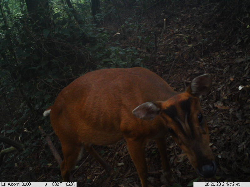 赤麂是麂属中体型最大的种类,体重25kg左右。外形与黄麂相似,唯全体毛色红棕,夏毛尤为明显。角柄特长,明显超过麂属其他麂类的角柄长度。从北京动物所测得22号成年雄性赤麂角的数据(无产地),角柄长为8.14土1. 38cm,角冠长为10.08土2.31cm,角冠略长于角柄。但其中4头刚达性成熟的个体,其角冠短于角柄,角柄长9.83土1.61cm,角冠为7.13土0.94cm。 4龄以上个体的角冠都长于角柄。从云南测得的15号赤麂标本,角柄与角冠长度并无显著差异。鼻骨与前领骨绝大多数相连。而黄麂和黑麂均呈分离