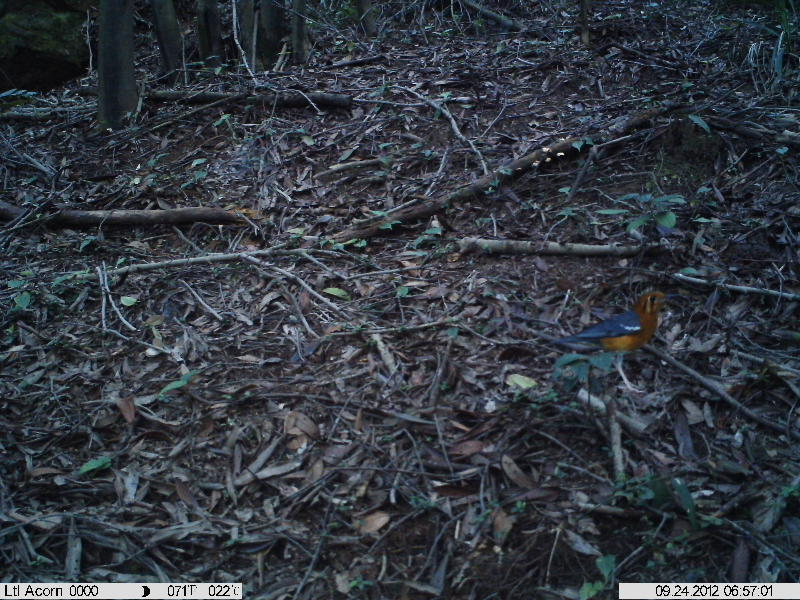 中等体型(22厘米)、头为橙黄色的地鸫。雄鸟:头、颈背及下体深橙褐,臀白,上体蓝灰,翼具白色横纹(亚种innotata翼上无横纹)。亚种courtoisi,melli及 aurimacula 的颊上具两道深色的垂直斑纹。雌鸟上体橄榄灰色。亚成鸟似雌鸟,但背具细纹及鳞状纹。虹膜-褐色;嘴-略黑;脚-肉色。