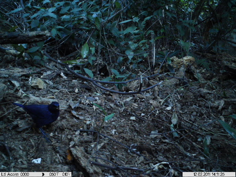 雌雄羽色相似。前额基部和眼先黑色,其余头部和整个上下体羽深紫蓝色,各羽末端均具辉亮的淡紫色滴状斑,此滴状斑在头顶和后颈较小,在两肩和背部较大,腰和尾上覆羽滴状斑较小而且稀疏。两翅黑褐色,翅上覆羽外翈深紫蓝色,内翈黑褐色,翅上小覆羽全为辉紫蓝色,中覆羽除西南亚种无白色端斑外,均具白色或紫白色端斑。飞羽亦为黑褐色,除第一枚初级飞羽外,其余飞羽外表均缀紫蓝色。尾内翈黑褐色,外翈深紫蓝色,其外表亦为深紫蓝色。头侧、颈侧、颏喉、胸、上腹和两胁等下体亦具辉亮的淡紫色滴状斑,且滴状斑较大而显著,特别是喉、胸部滴状斑更大,常常比背,肩部滴状斑大而显著。腹、后胁和尾下覆羽黑褐色有的微沾紫蓝色。