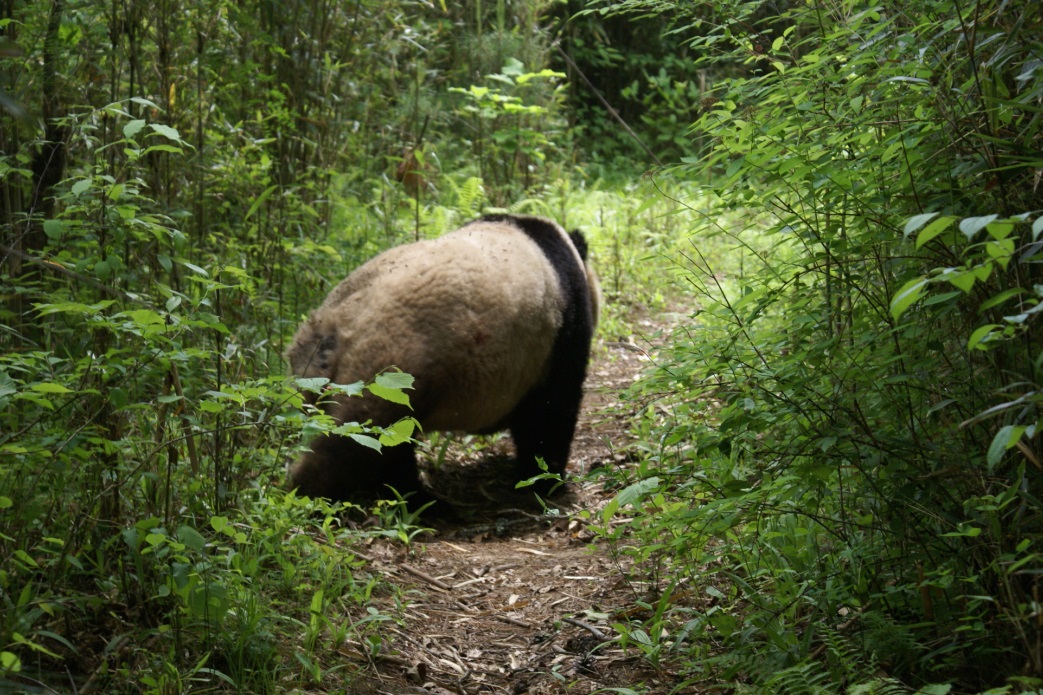 成年雄性体长1.5-1.8m,肩高65-70cm。尾长12-14cm,体重一般为80-125kg。雌性比雄 性小10-20%。头圆、体肥、尾短。眼圈、耳壳、肩和四肢为深黑色外,蓁部分均为乳白色。大熊猫皮肤厚,最厚处可达10毫米。身体不同部分的皮肤厚度也不一样,体背部厚于腹侧,体外侧厚于体内侧,皮肤的平均厚度约为5毫米,并且色白而富有弹性和韧性。大熊猫的视觉极不发达。这是由于大熊猫长期生活于密密的竹林里,光线很暗,障碍物又多,致使其目光变得十分短浅。此外由于它的瞳孔像猫一样是纵裂的。因此,当夜幕降临的傍晚,它们还能活动。