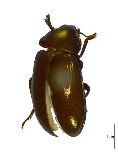 描述:体长,两侧近平行,弱隆,有光泽。体深红棕色,背面红棕色,铜色光泽。鞘翅行间反射绿色光泽,鞘翅肩部家肩胛处有 1 斑块,小,卵圆形;端部 1/3 有 1 椭圆形横带;二者都为绿色,边缘钢蓝色,侧缘橄榄绿色,足和腹面铜色,足有绿色光泽。