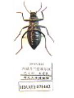 描述:体长卵形,黑色有光泽。上唇前缘凹,具毛列;颏椭圆形;唇基前缘直截;头顶和唇基有稠密刻点。触角长,向后超过前胸背板基部,第2-11节长(宽)比为:3.5(2.5): 15(2.5): 7(3): 7(2.5): 6.5(2): 6(2.5): 5.5(3): 5.5(3): 5(3): 6.5(3),第2-7节圆柱形,第3节是第4节的2倍,8-10节椭圆形,长约为宽的2倍。前胸背板宽为长的1.1倍,前缘、最宽处、基部之比为:28: 44: 32,有刻点;前缘略凹,侧缘中部之前最宽,由此向前弧形收缩,向后斜直地收缩;前、后角都钝;盘区隆起,四周下沉。前胸侧板靠近基节窝处皱纹明显,有稀疏小粒点。小盾片三角形,被毛。鞘翅肩角处凹陷;侧缘有饰边,由背面看不到其全长;背面平坦,有细纹状刻点,翅坡处有粒点,末端尖圆,不形成尾突;假缘折窄,在第2腹节末端开始向后急剧地收缩。前足腿节极细,胫节下侧有刺毛;中、后足胫节有稠密刺状毛;后足第1跗节对称,近等于第2+3节。腹部扁平,基部3节有细纹,端部2节有刻点。