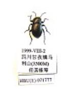 描述:♂:体中等,椭圆形,黑色,略具光泽。上唇长方形,前缘两侧弧形,中部近直,被以金黄色毛;唇基直。颏小近半圆形。前颊直缩,后颊最宽处与眼外缘近等宽。触角细,向前可达前胸背板基部近1/3处,2-11节长(宽)比为:11(13): 18(11): 13(12): 13(12): 14(13): 15(13): 14(16): 13(16): 13(16): 19(17);2-7节椭圆形,8-10节球形,端节尖卵形;端部4节被以密集棕色细毛和稀疏长毛。前胸背板近长方形,宽约为长的1.28倍,最宽处位于侧缘中部,为头宽的1.83倍。前缘凹,无饰边;侧缘圆弧形,向前圆缩,向后直缩,饰边完整;后缘直,中部无饰边;前缘、最宽处、基部宽度之比:26: 44: 34。盘区被以细小刻点,中部具浅凹。前角钝三角形,后角近直角形。前胸侧板粗糙,具宽皱纹和颗粒状突起。前胸腹板突具中沟,向前后均陡降,鞘翅长约为宽的1.41倍,最宽处位于中部之前,为前胸背板的1.20倍。由背部可见鞘翅侧缘前部少于1/3。翅面被以细小皱纹,夹杂以稀疏小刻点。腹板光滑,基部3节前半部具纵行皱纹,后部具刻点;端节具粗大刻点。足强壮,腿节棒状,向端部均匀加粗;前、中、后足胫节长(宽)之比为:65(9): 68(11): 83(13);后足第1-4跗节的长(宽)度比为:20(7): 9(7): 8(7): 19(6)。阳茎基板为基侧突的2.43倍;基侧突基部略突出,端部均匀收缩,长为宽的1.56倍。
