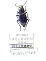 描述:体细长,黑色,光亮,背面刻点极细小稀疏,近光滑。右上颚背面无齿;唇基矩形,与颊间圆直角形凹;前颊圆弧形,在眼前稍扩展;眼近菱形,较前颊宽,眼褶不明显;后颊向后宽弧形收缩;头平坦,顶部微凹。触角细,长达前胸背板基部;第3节长大于宽近3倍,末节尖卵形;第2~11节相对长度之比为:22,34,22,21,19,17,16,15,15,16。前胸背板弱心形,长宽近相等;前缘弱凹,饰边宽断;侧缘宽弧形,近基部直,近端部最宽;基部弱三角形后突,细饰边完整;前角圆直、后角钝角形;盘圆拱。鞘翅细长,长大于宽1.8倍,大于前胸背板2.4倍;基部宽弧形,弱饰边宽断,肩圆;侧缘近平行,向后稍延伸;翅背鲨皮状,沿中缝宽凹。颏端部浅弧凹。前胸侧板光滑;腹突在基节间不隆,短指状后伸,小刻点稠密。中胸侧片和腹板端部具浅横刻纹。后胸腹板锉状粗刻点向后渐