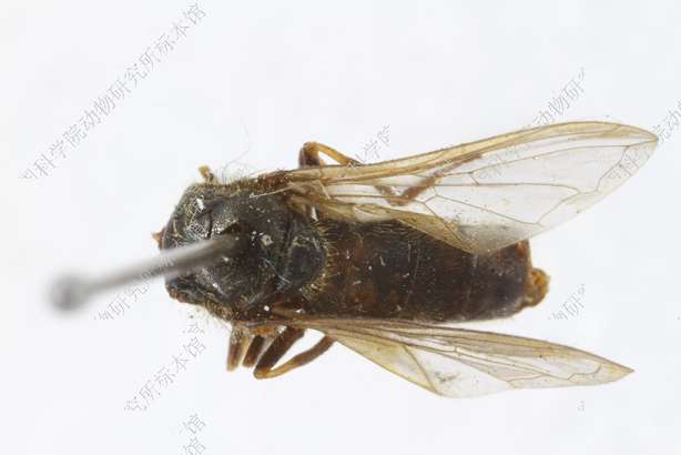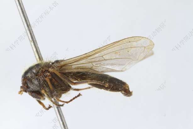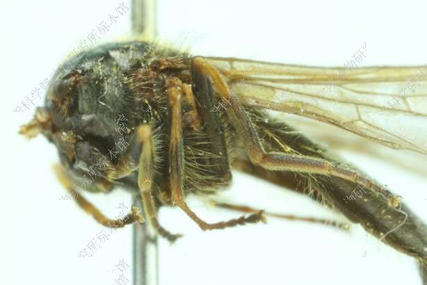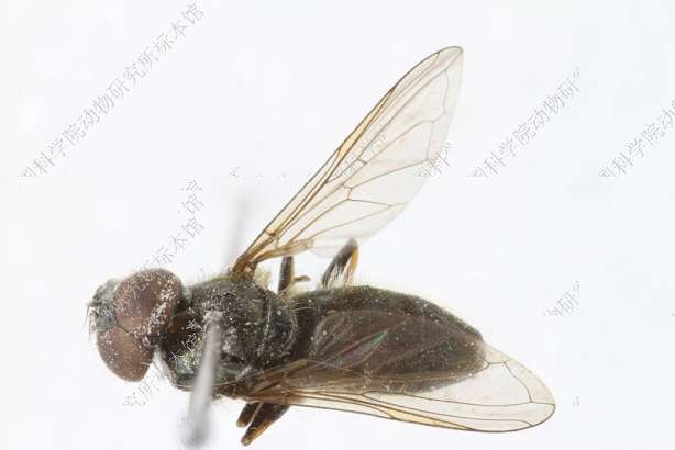描述:雄性 头顶黑色,被黄色毛单眼三角为等边三角形额很宽,黑色,密被白色粉被和直立黑色长毛颜甚宽,隆起,向下明显增宽,黑色,密被灰色粉被中突中等大,圆眼缘很宽,光亮,被1排黄色长毛颊高,略具光泽,被黄色毛新月片黑色触角窝分开。触角第3节小,圆,褐色,上部色暗芒较短,黑色,裸。复眼被密黄毛,两眼连角为锐角,其连线长约与额高相等。中胸背板黑色,略具光泽,密被黄色毛,并混杂些黑色毛小盾片后缘无任何鬃,盾下缘缨短密,黄色侧板同中胸背板。腹部污色,被褐色粉被,两侧毛直立,黄色,中部毛平伏,与两侧同色。足黑色,腿节的顶端、胫节基部1/3和末端、中足跗节基部两节和所有跗节的腹面褐色足毛主要黄色,有时胫节和跗节毛黑色,后足腿节腹面无长毛。翅透明,翅痣黄色,m1+2和r4+5脉间的内角大于90°。平衡棒褐色,端部黑色腋瓣黄色。