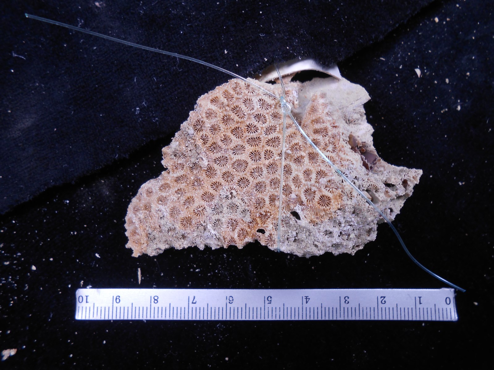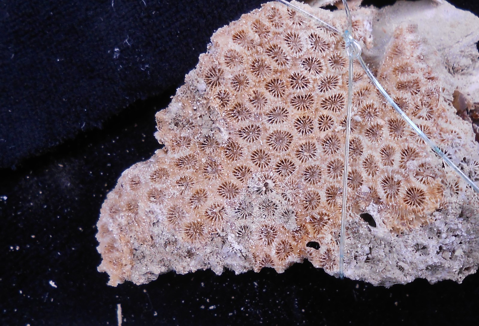 特征:珊瑚骼皮壳块状。珊瑚杯多边形,夹杂圆或长圆形珊瑚杯,杯径在4—8mm。隔片四轮,第工轮隔片>第Ⅱ轮隔片>第Ⅲ轮隔片,第Ⅳ轮隔片发育不全。隔片边缘有齿和两侧有颗粒,第Ⅰ轮隔片与轴柱相连。轴柱由海绵状小梁组成。