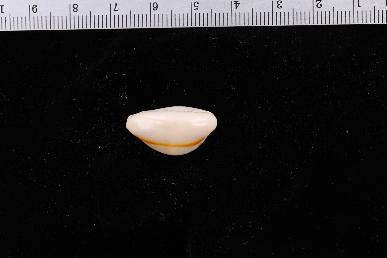 描述:鉴别特征贝壳大小和形状近似货贝,但壳面呈淡蓝灰色或灰白色,背部具有明显的金黄色环纹。
