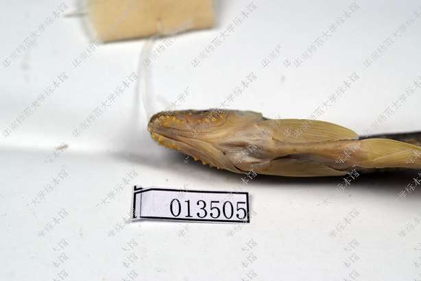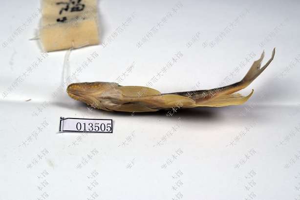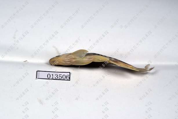 固定标本体背暗黑,腹面灰白。尾柄体侧中部有1道不显著的纵行黑纹。除背鳍的鳍膜上略有黑斑外,其他各鳍均无明显斑纹