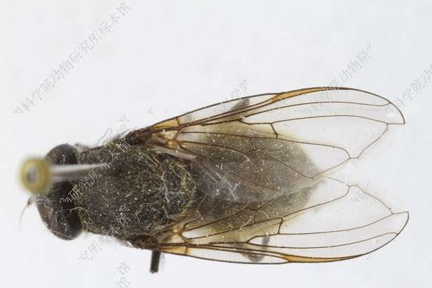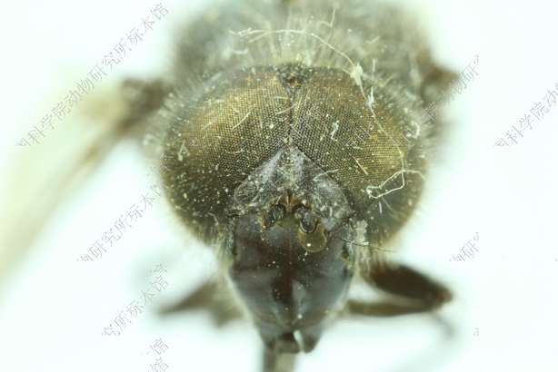 描述:雌性 头顶隆起,单眼呈等边三角形,黑色,毛黄色额平而狭,前面明显加宽,具3条纵沟,亮黑色,白色毛长而密颜向下明显增宽,黑色,具强光泽,在触角基部下面覆稀粉被,两侧从眼缘至口缘具狭的粉被纵条,中突略大而突出眼缘宽,黑色,具粉被和黄毛近复眼具光亮条纹颊高,具灰色粉被和长而稀的黄色毛或黄色和黑色毛新月片鲜黄色触角窝分开。复眼被长而密的褐色或黑色毛。触角黑色,第3节圆,较大,被褐色粉被芒长,黑色,裸而光亮。中胸背板具粗刻点,具光泽,两侧覆灰色粉被,被短而密的黄色平伏毛和长的黑色半平伏毛小盾片毛黄色和黑色,长,后缘无鬃,盾下缘缨黄色,短而稀侧板密被褐色粉被和细长的黑色毛,腹侧片具少量黄毛后胸腹板黄色毛长。腹部卵形,明显宽于胸,两侧具光泽,中部覆稀的粉被和黄色平伏毛,两侧毛直立。足黑色腿节长,毛黑色和黄色。翅透明,翅脉黑色,m1+2和r4+5脉间的内角几乎为90°。平衡棒褐色,端部暗色腋瓣褐色,边黑色。