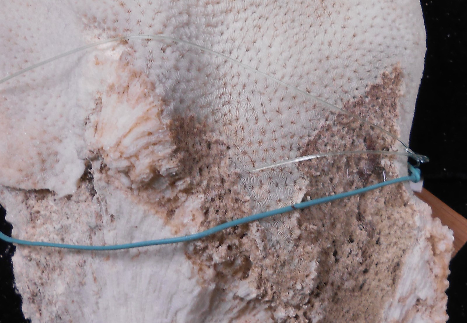 特征:群体块状,其表面起伏但光滑。珊瑚杯小,均匀分布。隔片—珊瑚肋厚,两侧有颗粒,边缘光滑。轴柱发育不全或针状小梁组成。