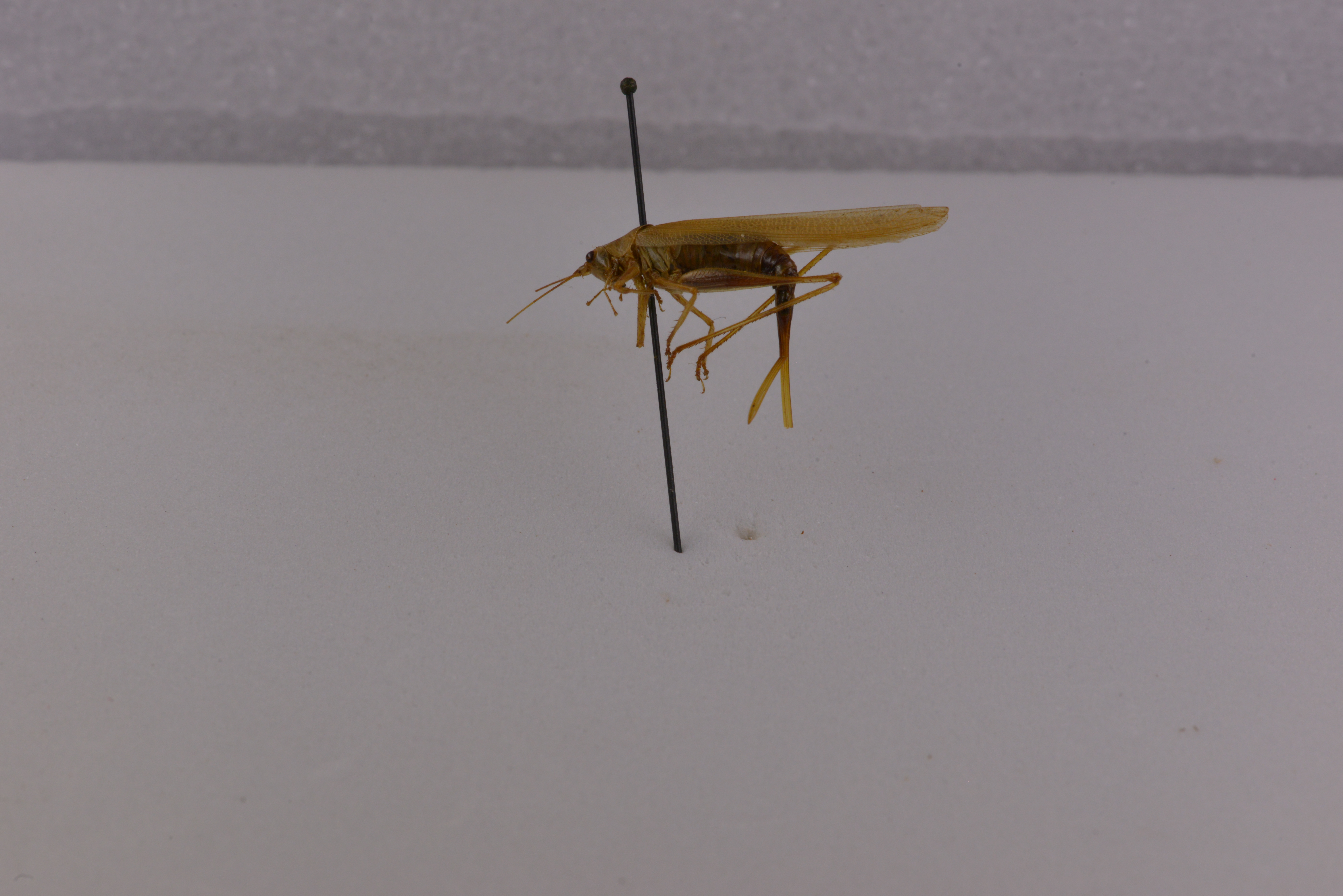 描述:Description-form typical for the genus ; coloration pale greenish buff, pale foliage green in life. Dorsum of pronotum with faint trace of pale brown dorso-lateral stripe. Leg spination as follows : all femora unspined fore tibiae with 4 pairs of spines, the proximal pair the largest ; meso tibiae with 4 pairs of small ventral spines caudal tibiae with 30 to 32 external and internal, alterna tely large and small teeth, on the dorsal keels and with 7 external and 2 internal apical teeth on the ventral surface. Supra-anal plate slightly concave · with two small median, moderately separated caudally projecting prongs. Cerci forcipate, with a large internal basal and