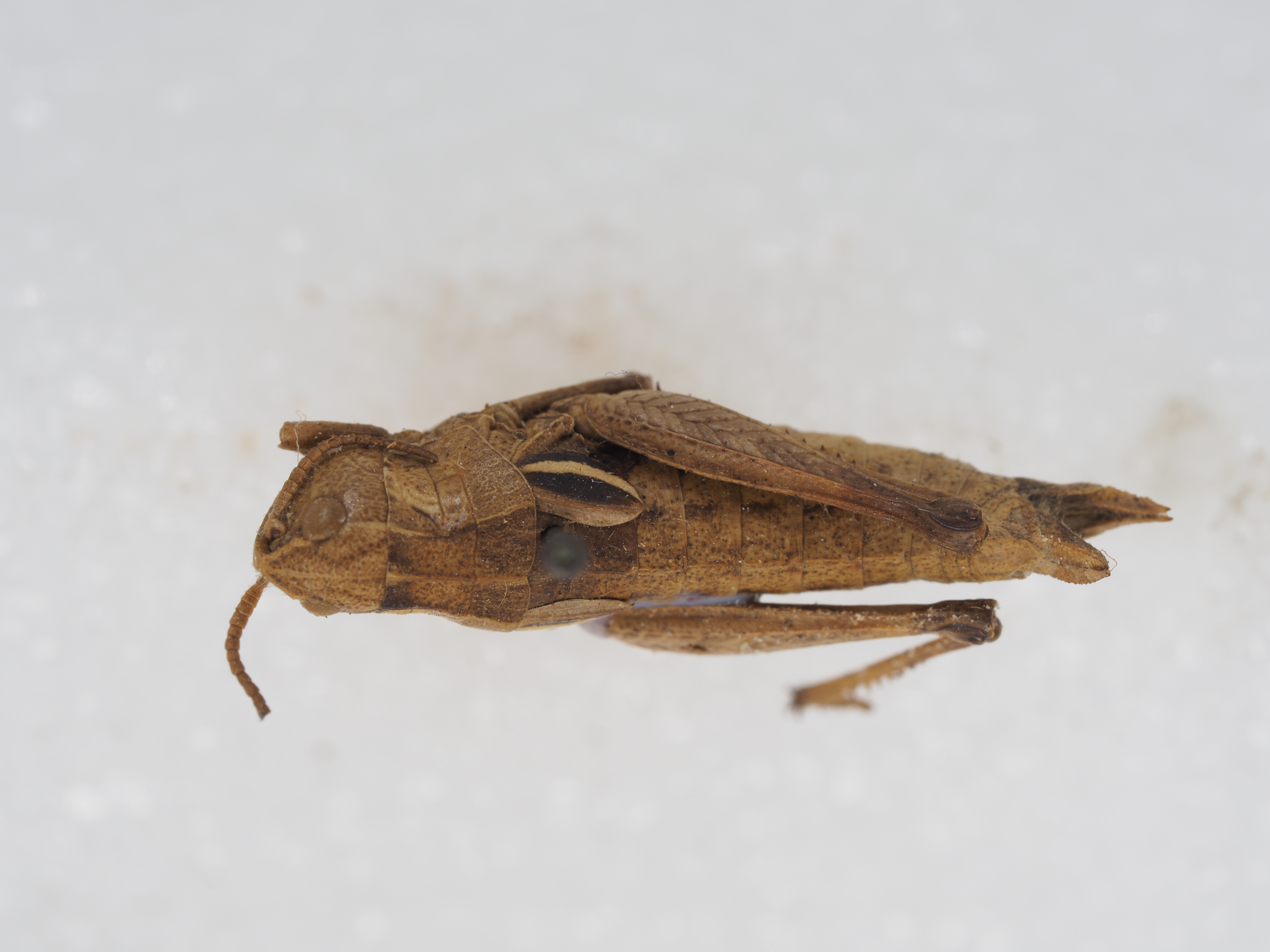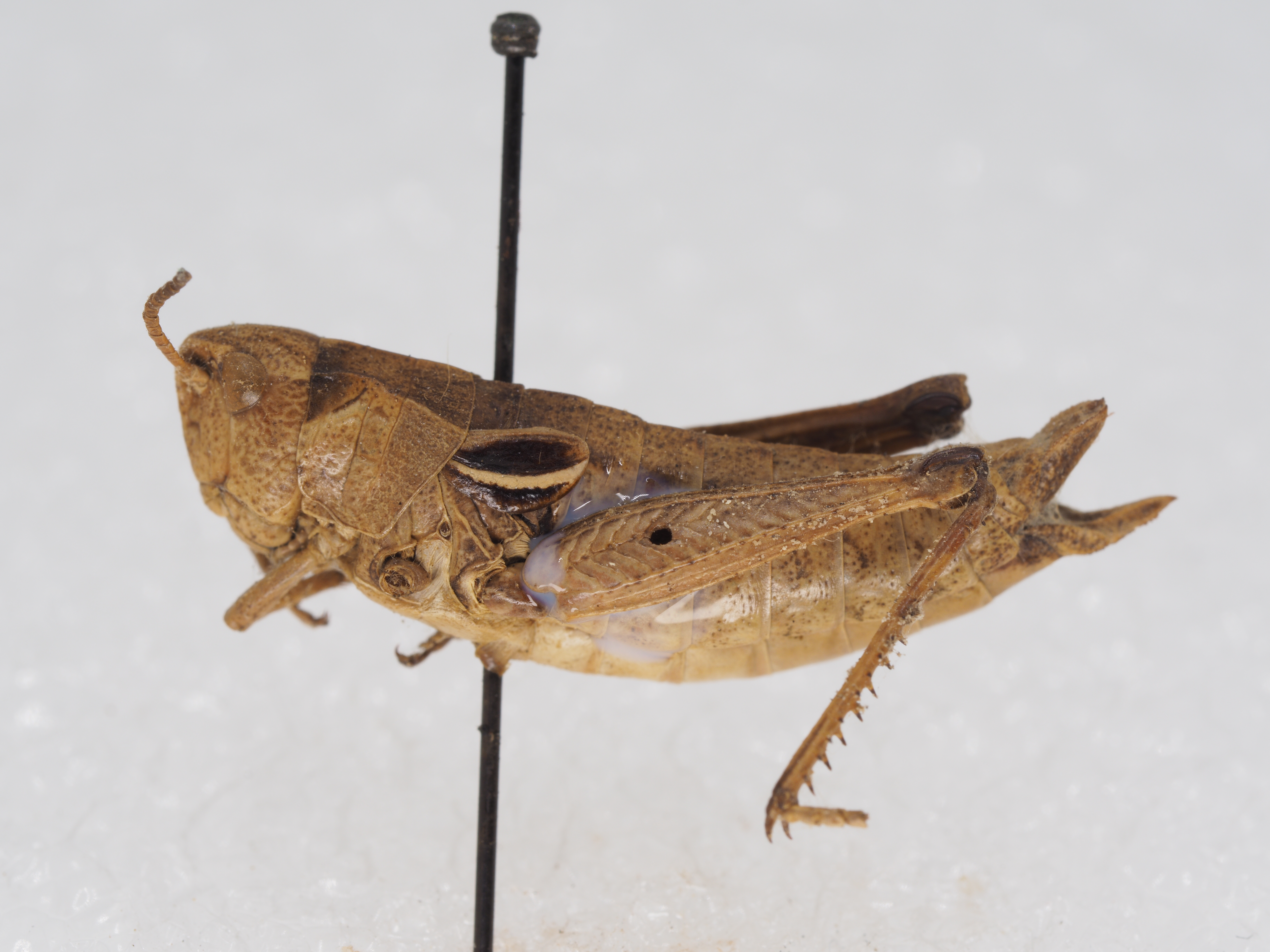 描述:体中小型。头顶突出,三角形,自复眼的前缘到头顶顶端的距离大于复眼横径和眼间距宽度。无头侧窝。颜面倾斜,颜面隆起自触角基部到唇基具明显纵沟。颜面侧隆线弱。触角丝状,不到达或超过前胸背板后缘,中段一节的长宽相等或长为宽的1.5—1.6倍。复眼卵圆形,复眼纵径为横径的1.3倍而与眼下沟几等长。前胸背板前缘平直或中部略向前突出;中隆线较粗,侧隆线在沟前区略内曲,沟前区的长度为沟后区长的1.7倍。中胸腹板侧叶间中隔宽大于长,与侧叶等宽。前翅宽叶状,顶圆,侧置,雄性超过第2腹节背板后缘,翅长为宽的2.3—2.5倍;雌性超过第1腹节背板后缘,翅长为宽的1.8倍。后足股节匀称,长为宽的4—5倍。雄性腹部末节背板具小尾片;肛上板宽,顶三角形突出;尾须柱状,到达肛上板顶端;一下生殖板短锥形,顶钝。雌性产卵瓣细长,上产卵瓣之上外缘具细齿;下生殖板后缘中央突起。