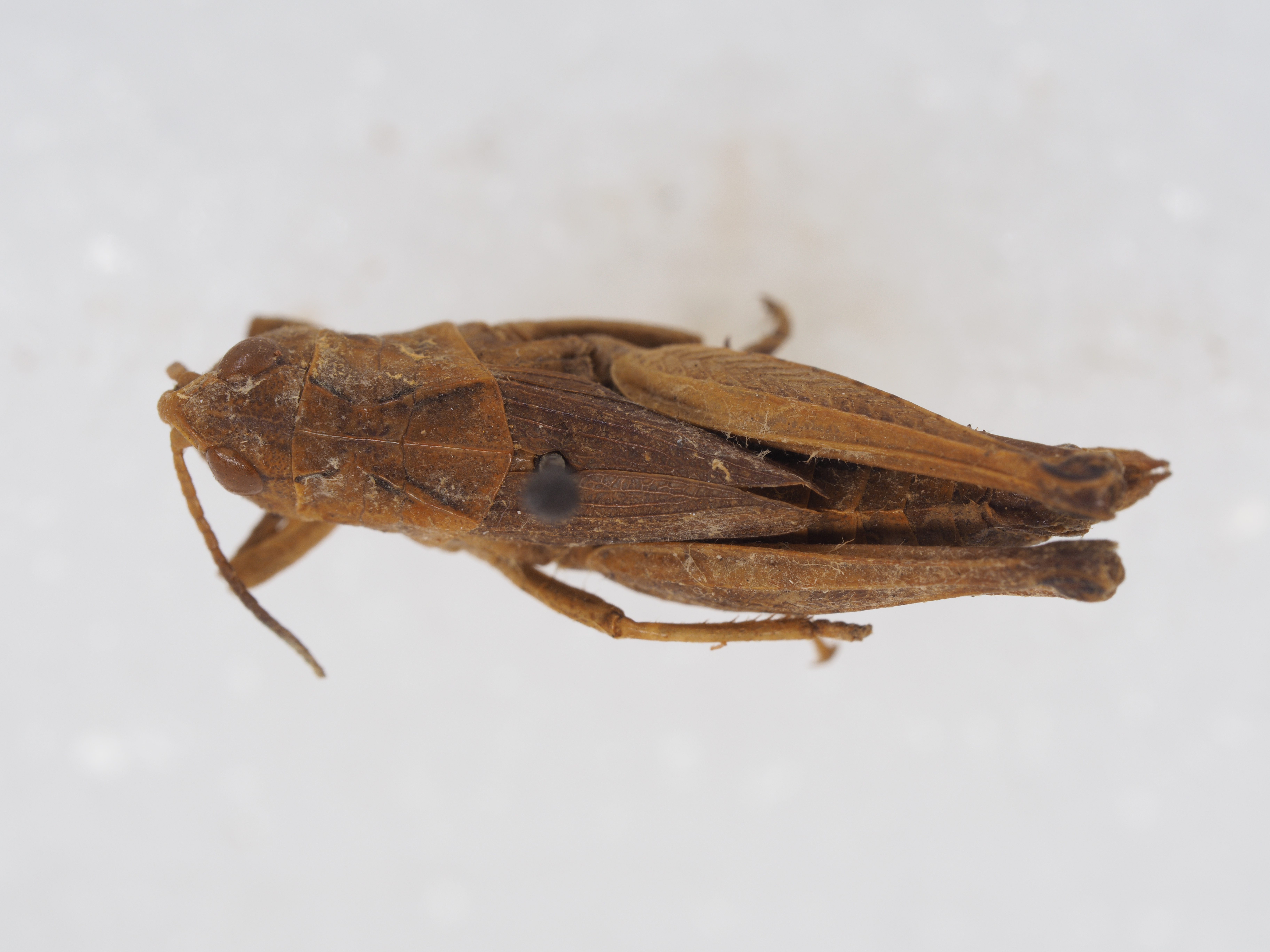 描述:雄性 体小型。头顶三角形,顶尖圆形。头部背面隆起。头侧窝狭长,四角形,长为宽的3倍。颜面倾斜,颜面隆起侧缘近平行,具纵沟。触角细长,其长度大于头及前胸背板之和,中段节长为宽的2倍。前胸背板前缘中部略突出,后缘钝角形;中隆线明显,侧隆线在沟前区呈弧形弯曲;后横沟位于背板中部稍后处,沟前区略大于沟后区。前翅短缩,到达后足股节中部稍后或肛上板基部,翅顶圆形;缘前脉域狭长,顶端远超过前翅的中部,具闰脉,前缘脉域较宽,最宽处为中脉域宽的1.5倍;中脉域与肘脉域几等宽。后翅短小,仅达第2腹节背板。后足股节内侧下隆线具音齿100个。鼓膜孔半圆形。肛上板三角形,顶尖。下生殖板短锥形。阳具基背片及阳茎复合体如图。