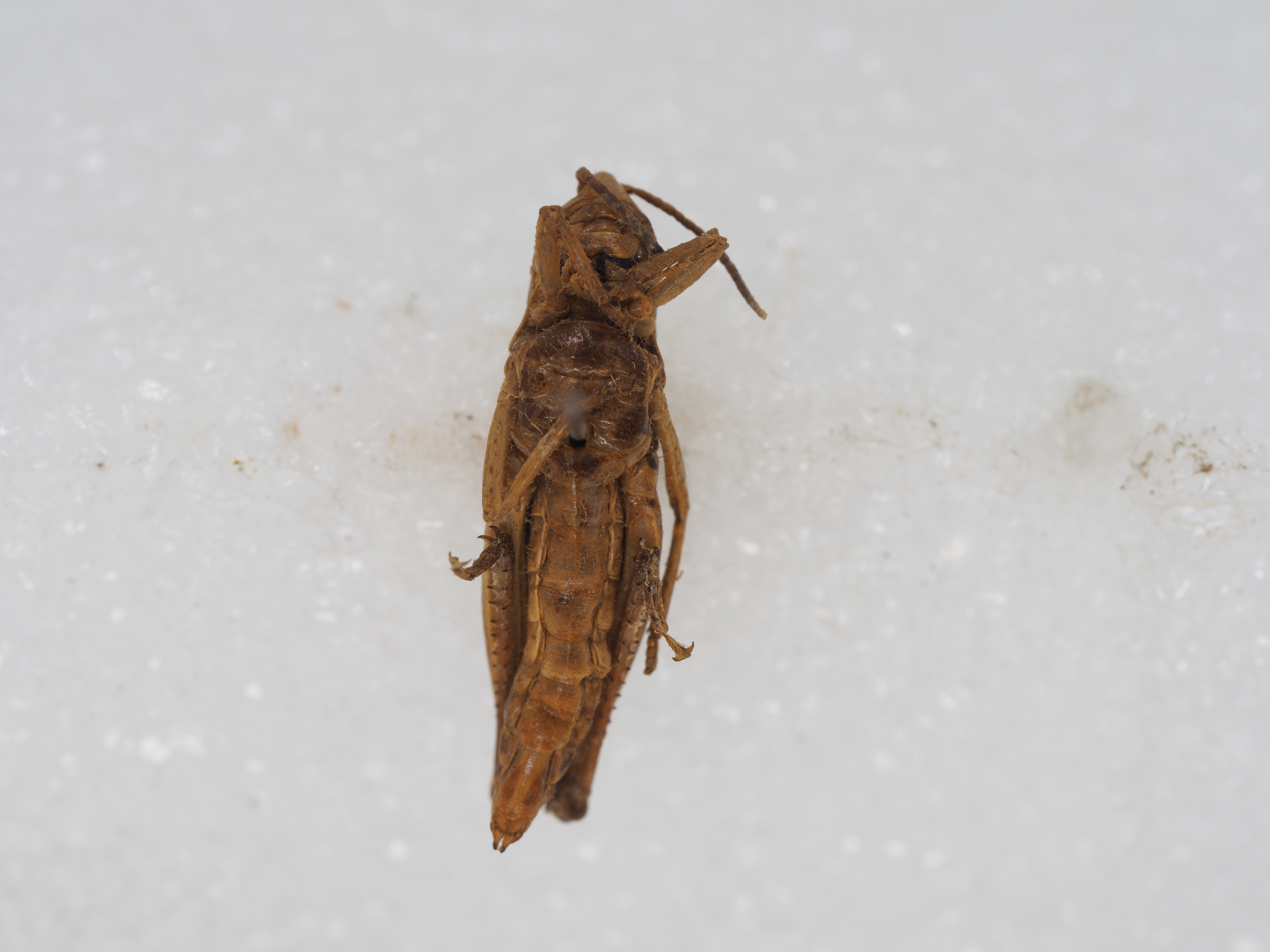 体色 暗褐色、黄褐色或绿褐色。后足股节膝部黑色。后足胫节红色。