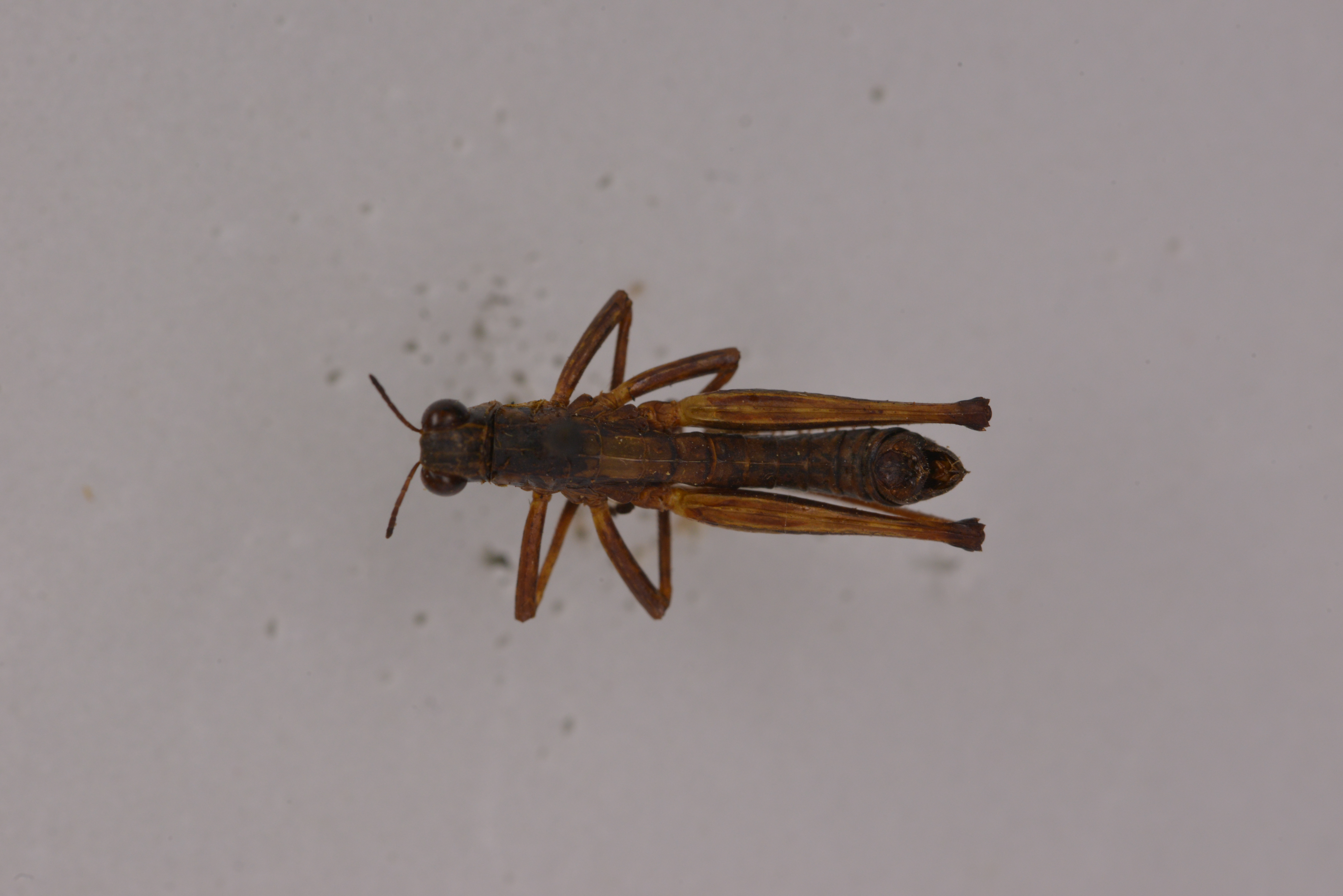 描述:General coloration dull brown, each side of body with a continuous dark band from behind the eyes to the tip of the abdomen in males, in females more diffused and less distinct.