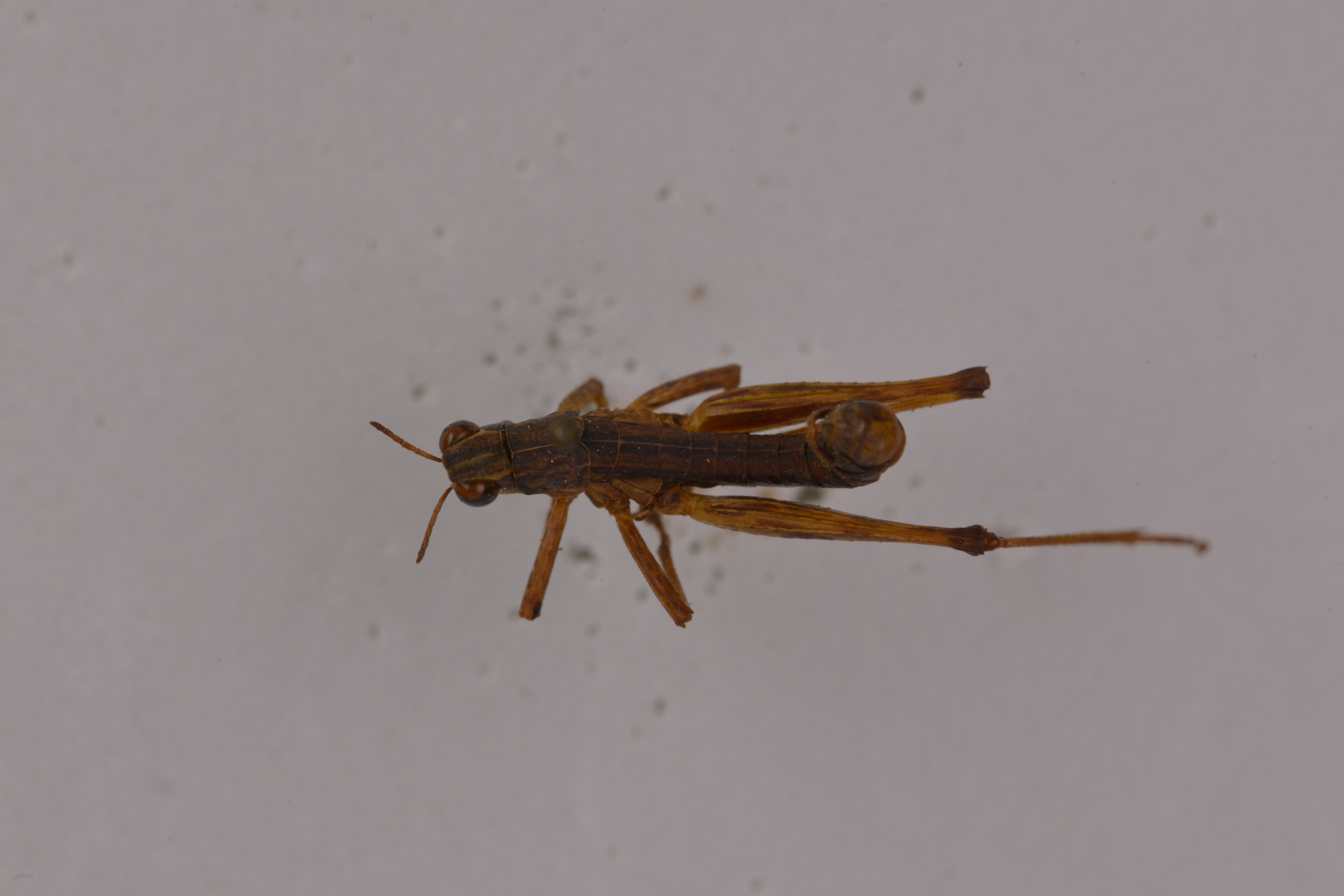 描述:General coloration dull brown, each side of body with a continuous dark band from behind the eyes to the tip of the abdomen in males, in females more diffused and less distinct.