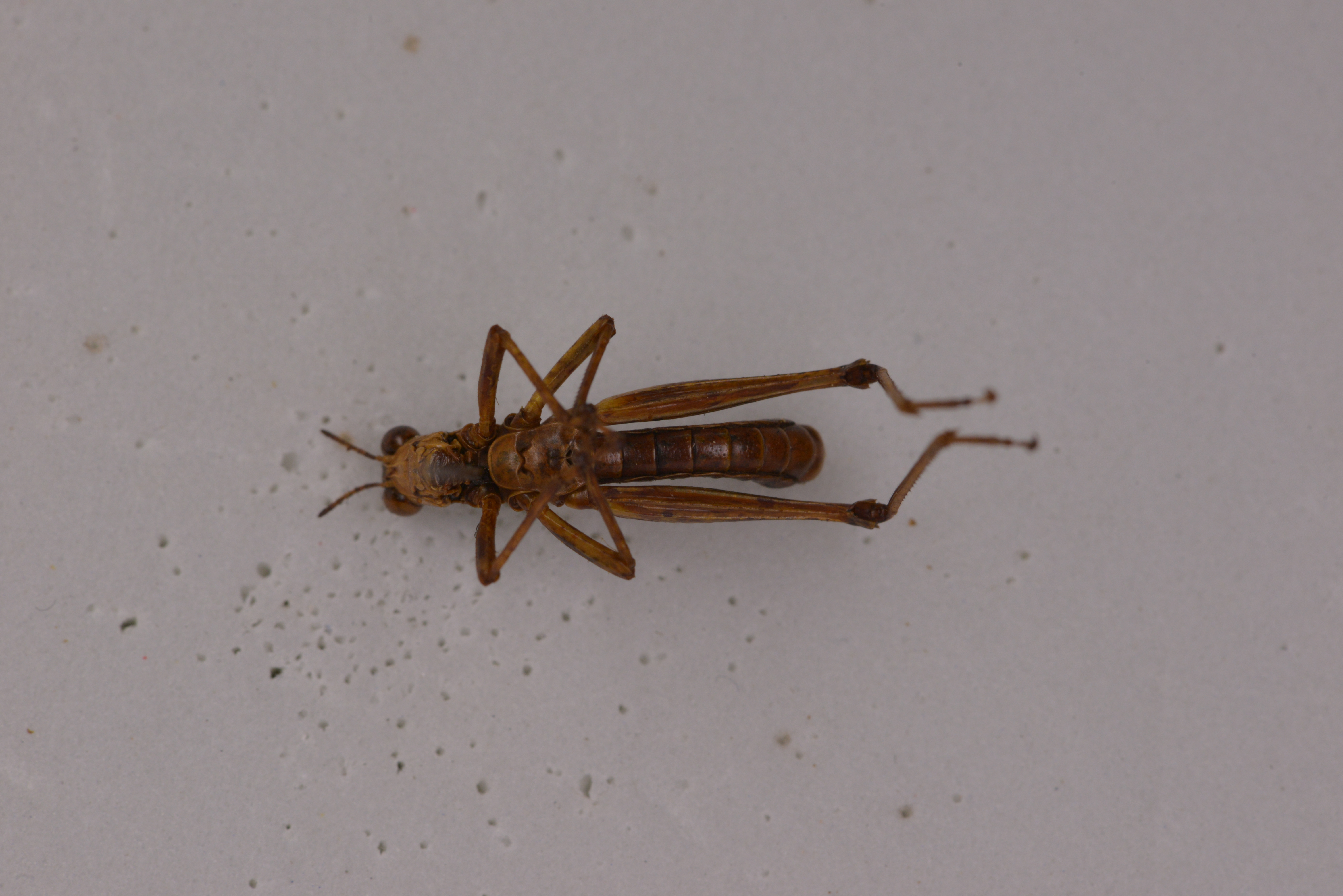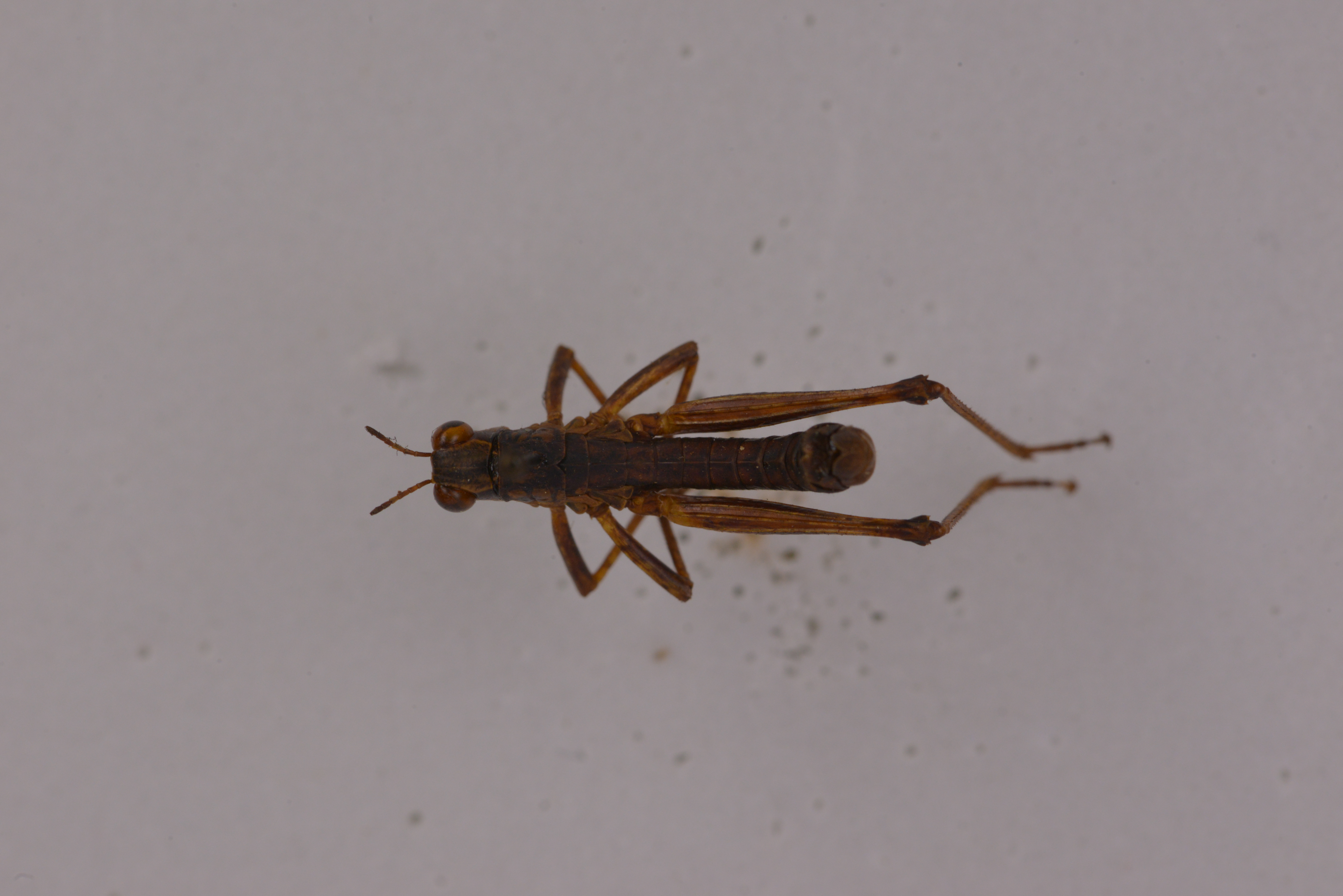 描述:General coloration dull brown, each side of body with a continuous dark band from behind the eyes to the tip of the abdomen in males, in females more diffused and less distinct.
