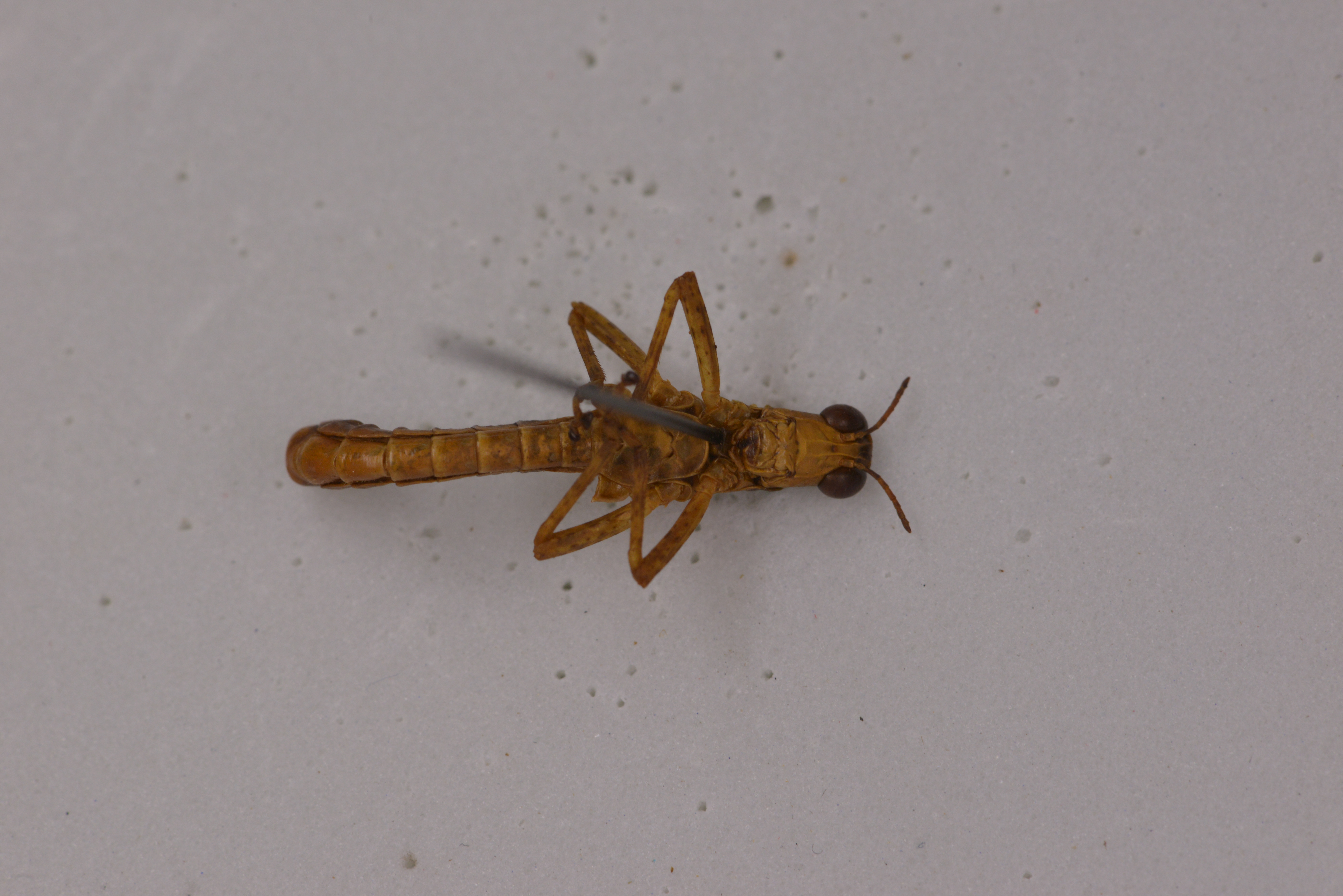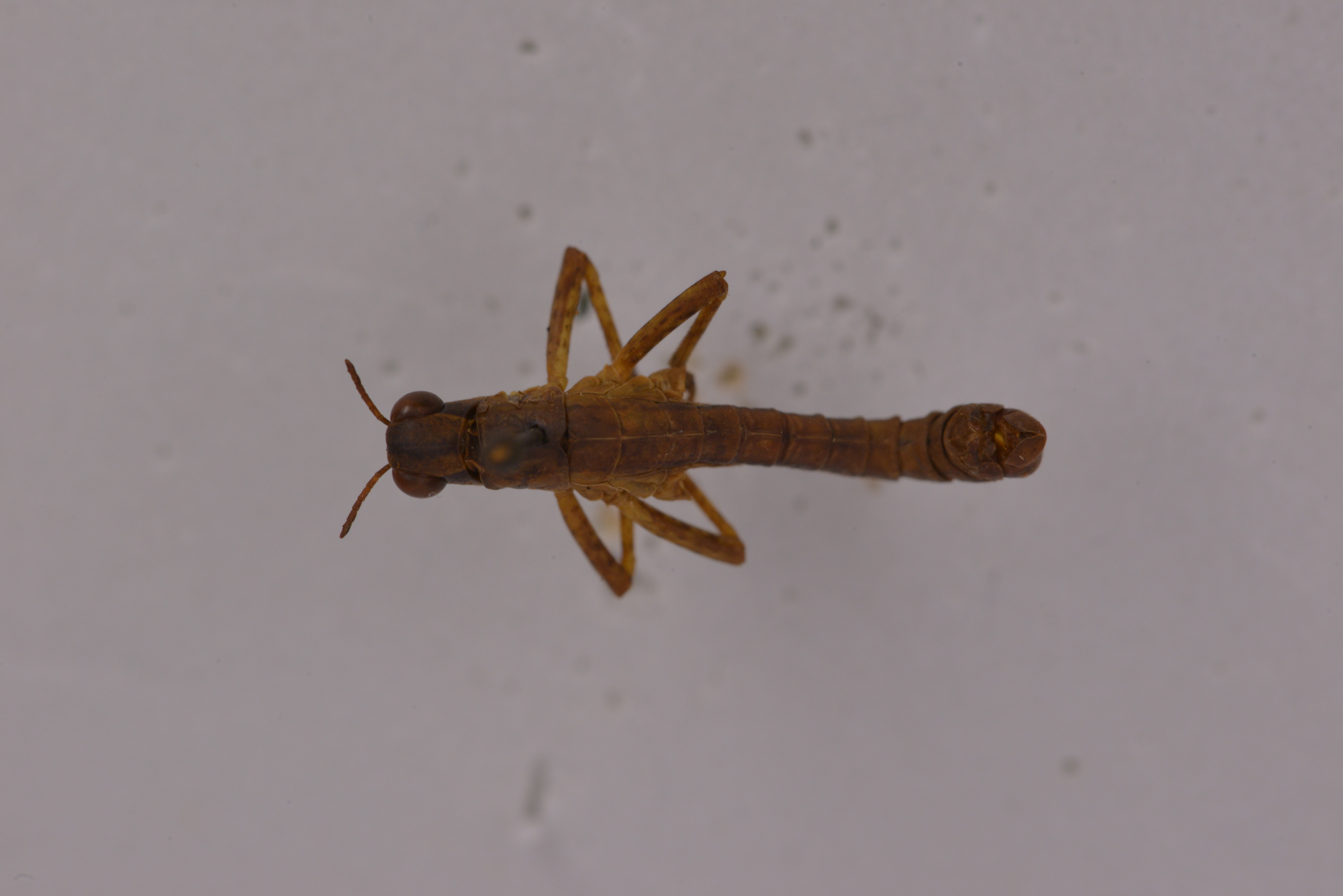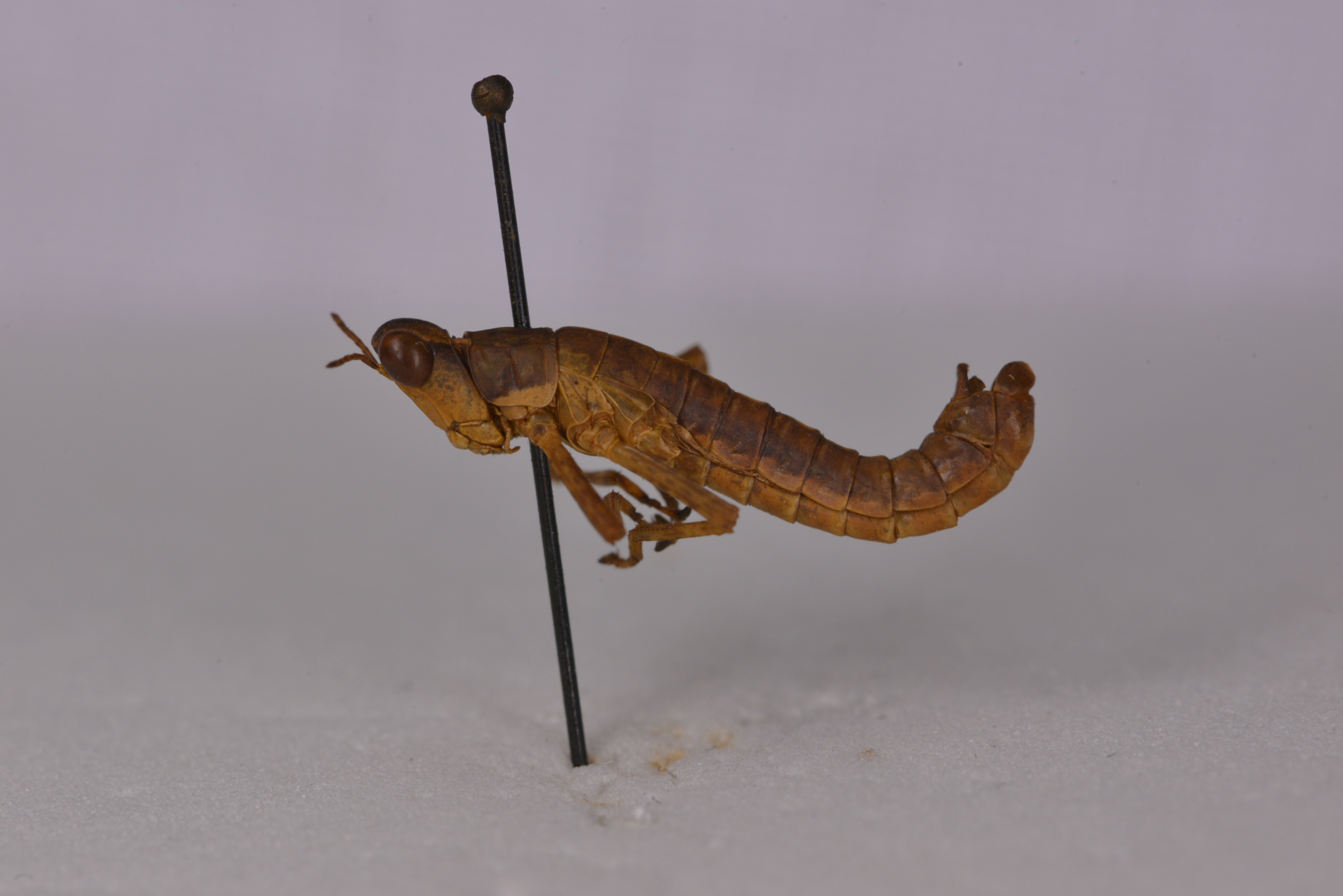 描述:General coloration dull brown, each side of body with a continuous dark band from behind the eyes to the tip of the abdomen in males, in females more diffused and less distinct.