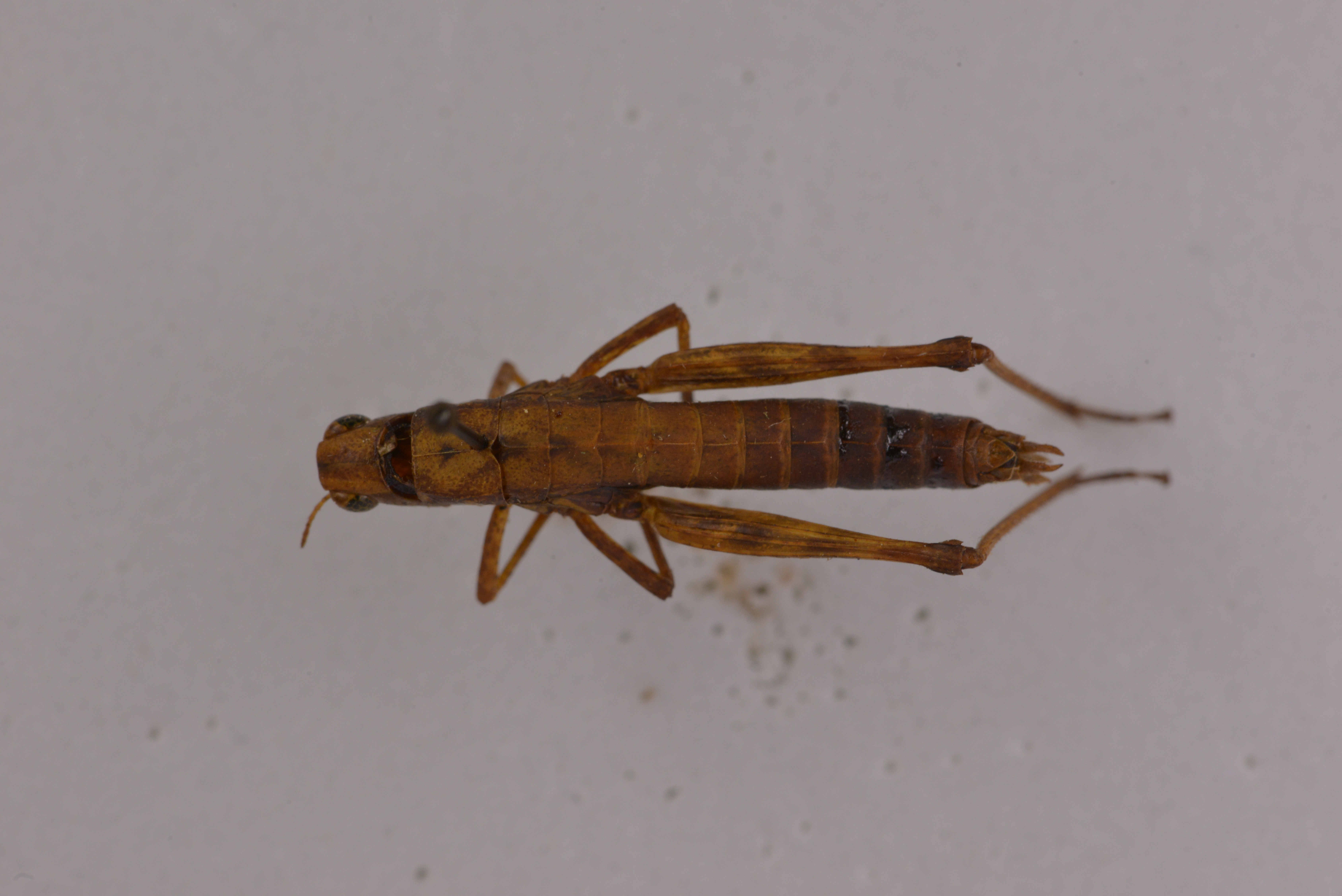 描述:General coloration dull brown, each side of body with a continuous dark band from behind the eyes to the tip of the abdomen in males, in females more diffused and less distinct.