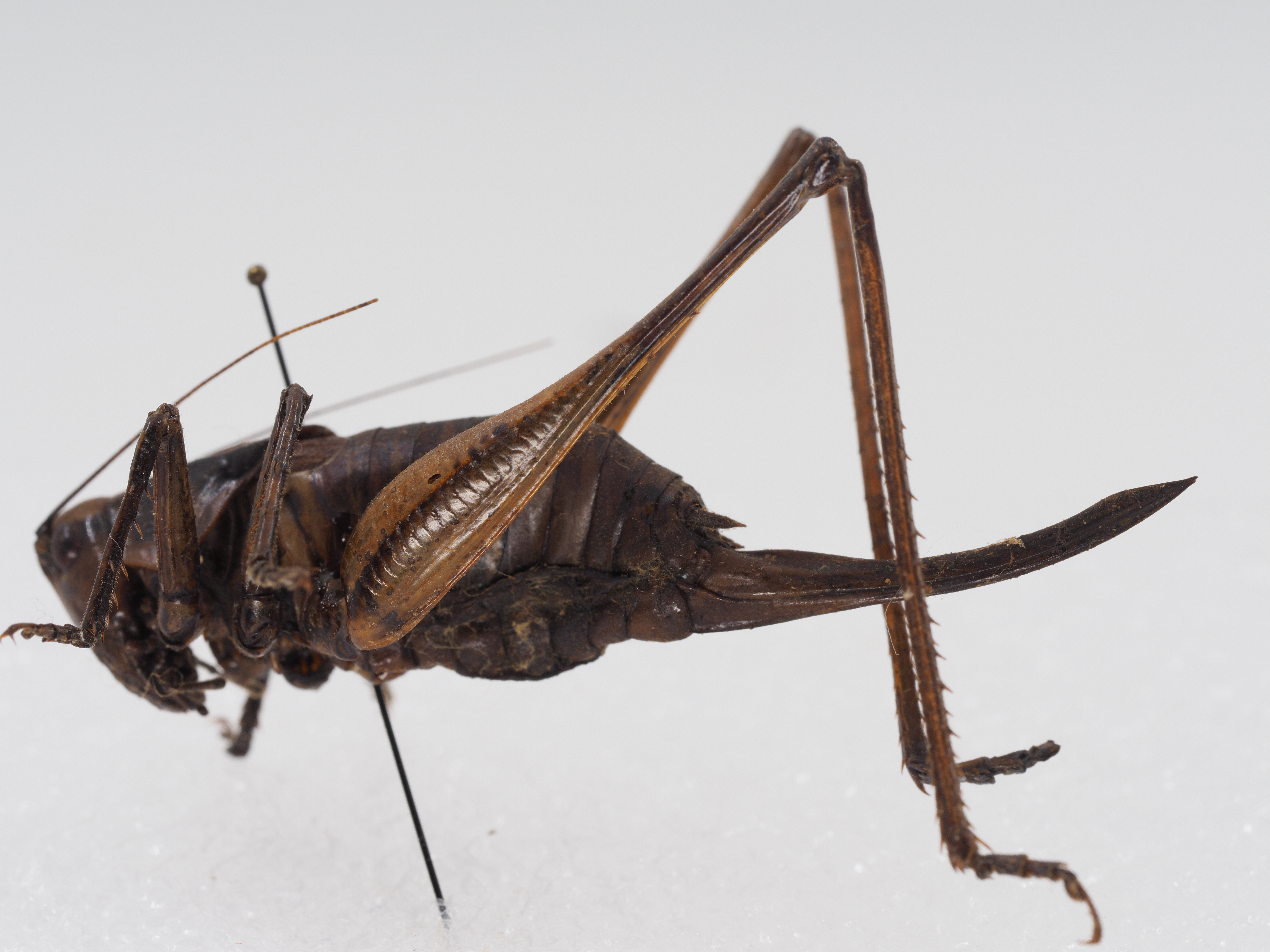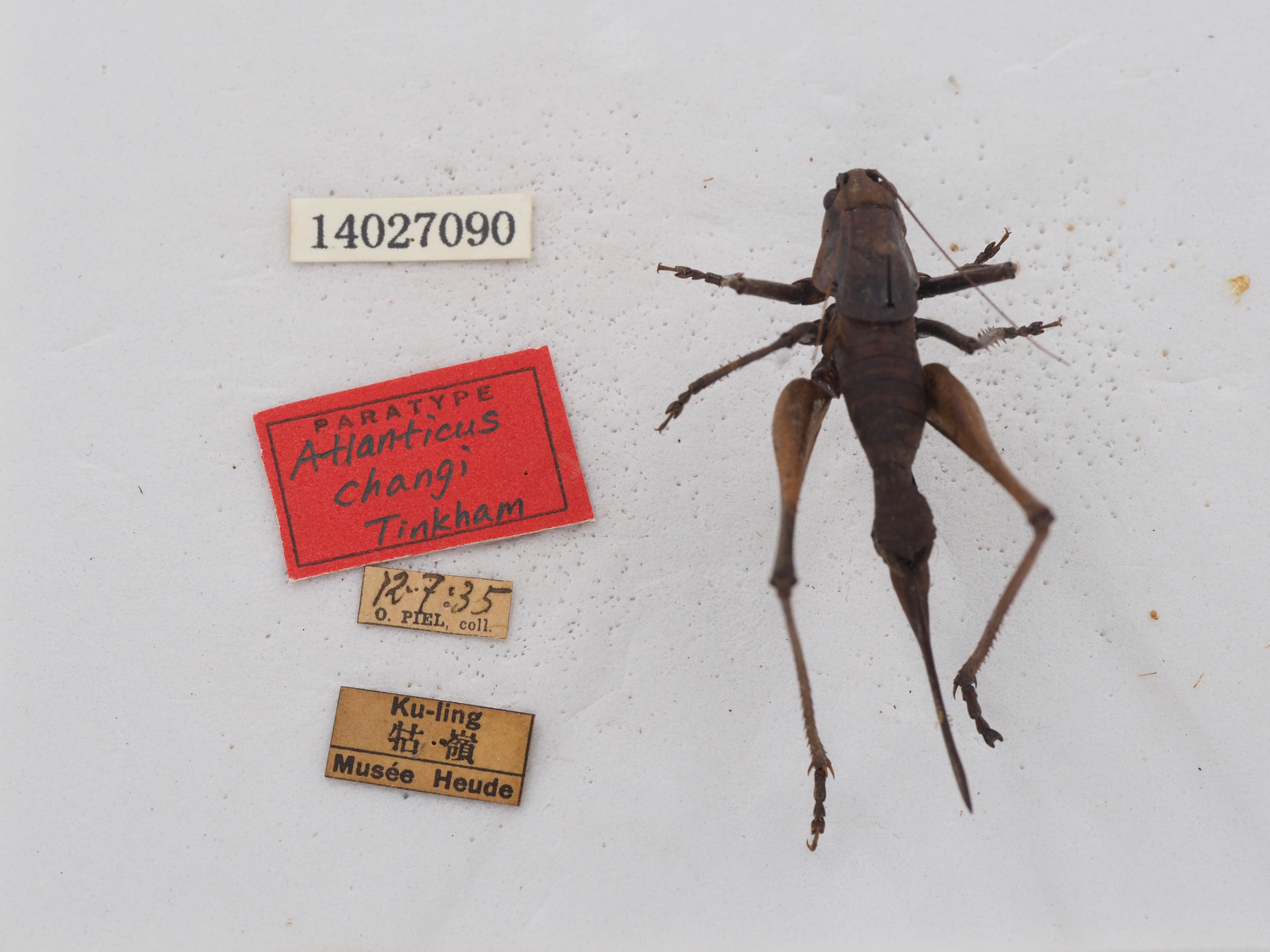 描述:Description: head typical for Atlanticus. Pronotum flat above with a broad "U" shaped suture almostin the middle. Lateral keels rounded, laterad of the suture almost parallel and expanding immediately behind the fore margin to reach that margin. and abruptly ampliated posteriorly, laterad of the bottom ·of the "U" shaped suture,to continue caudad moderately diverging to round into the arcuate posterior margin of the pronotum. Lateral lobes typical. Tegmina large, greater than the length of the pronotum and moderately broad and deep. Leg spination as follows: -fore femora with only one small internal tooth on the inferior keel; fore tibia with 6 pairs of ventral spines and 4 external dorsal spines, the basal one on the distal areas of the tympanum, the other three beyond the middle and evenly spaced. Mesofemora with 1-2 small external teeth on the inferior keel; mesotibiae with 6 pairs of ventral and 2 external· and · 4 internal spines on the dorsal surface. Caudal femora with only 2 small internal teeth on the inferior keel. Caudal tibiae with 21-23 external and 18-19 internal dorsal teeth and 9 small widely spaced external and 10 internal spines on the ventral surface. Supra-anal plate with a deep " u " shaped excision and a smaller one between the apical styli of the subgenital plate. Cerci straight, of even width to the small internal median uncinate tooth, then abruptly acuminate to the acute apex. Coloration:-Head, thorax and abdomen reddish brown with the upper portions of the lateral lobes below the 1ateral carinae of the pronotum dark shining Verona brown with the lower marginal areas typically pale. Central portions of the meso- and metathoracic segments just ventrad of the costal margin of the tegmina with a patch of dark brown. Tegmina pale yellowish brown similar to that in palpalis with the weins dull yellowish. Basal radial area between the radial and suhcostal veins dark reddish brown or almost piceous. Legs dark purplish grey, the fore tibiae almost piceous, the mesotibiae with piceous areas at the base of the spines. Caudal femora with the typica1 median line on the outer swollen basal half of the femora, below which is dark verona brown paling to yellowish brown on the ventral margins; above pale yellowish with darker impunctations on the dorsal surface and with 2-3 small brownish spots just above the median line at about the basal third.