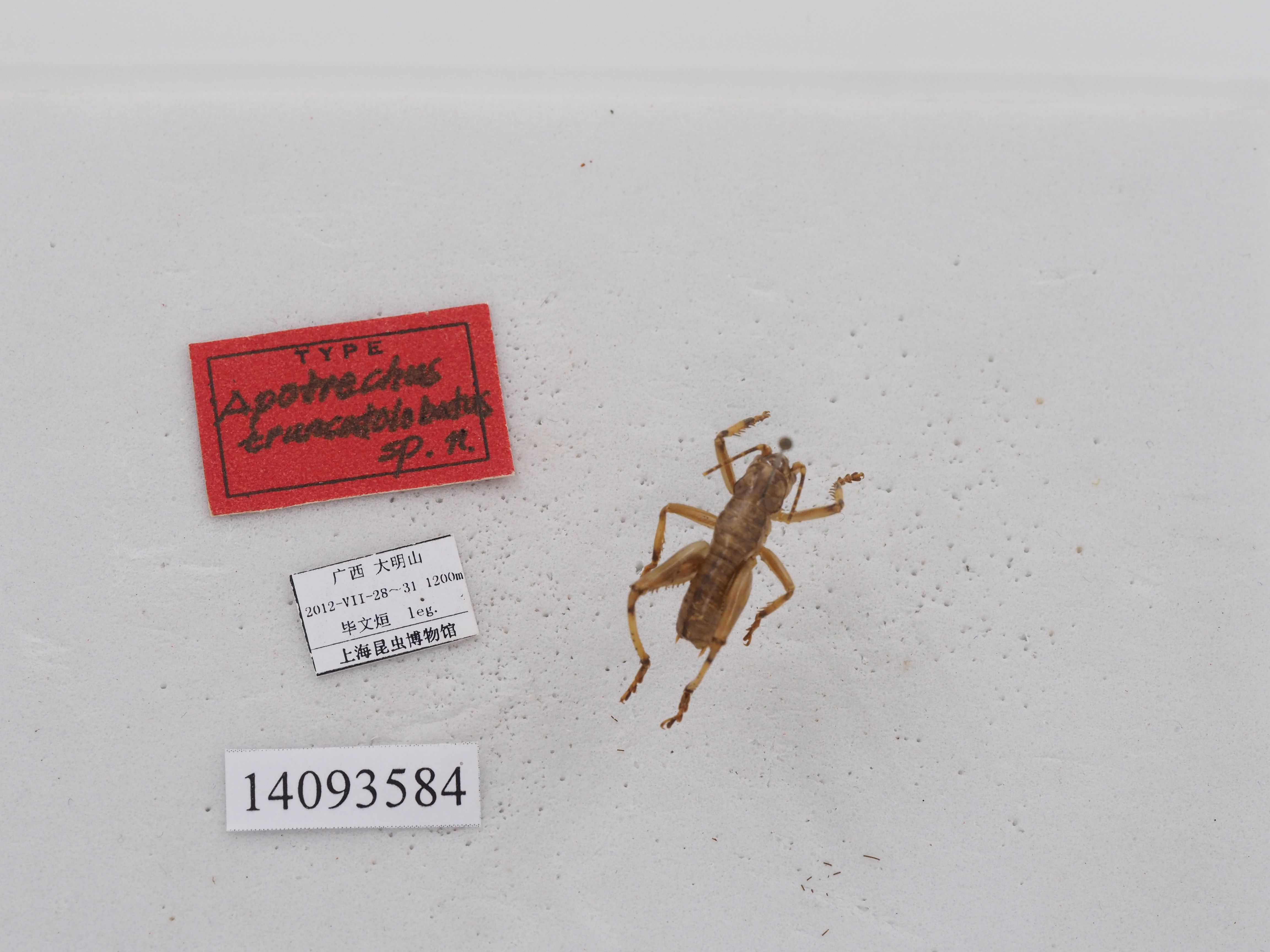 描述:Male. Body medium sized. Wings absent. Fastigium of vertex rounded,