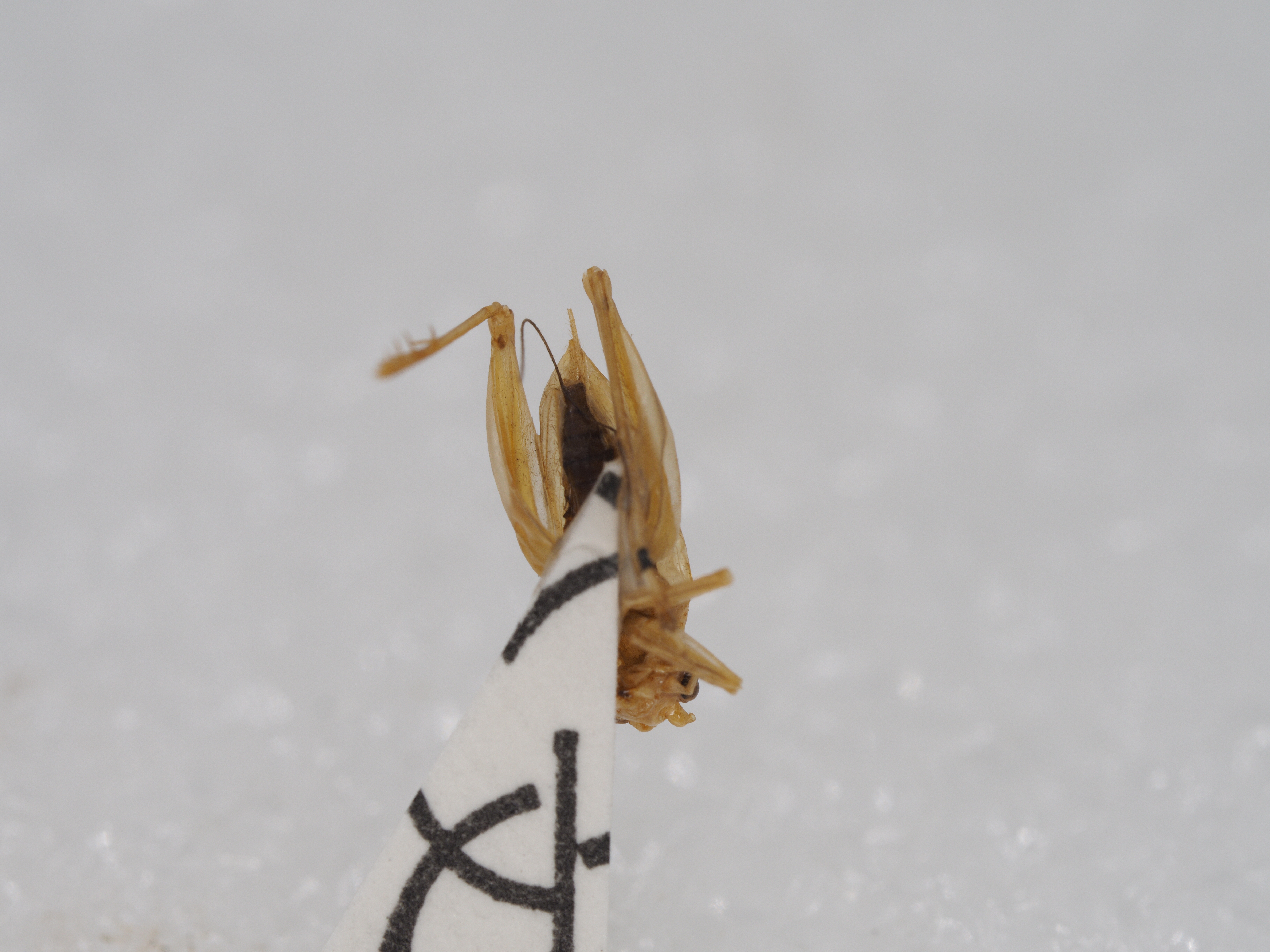 Female. Tegmina faintly convex, with 5 regular veins in the dorsal field; lateral field with 5 complete