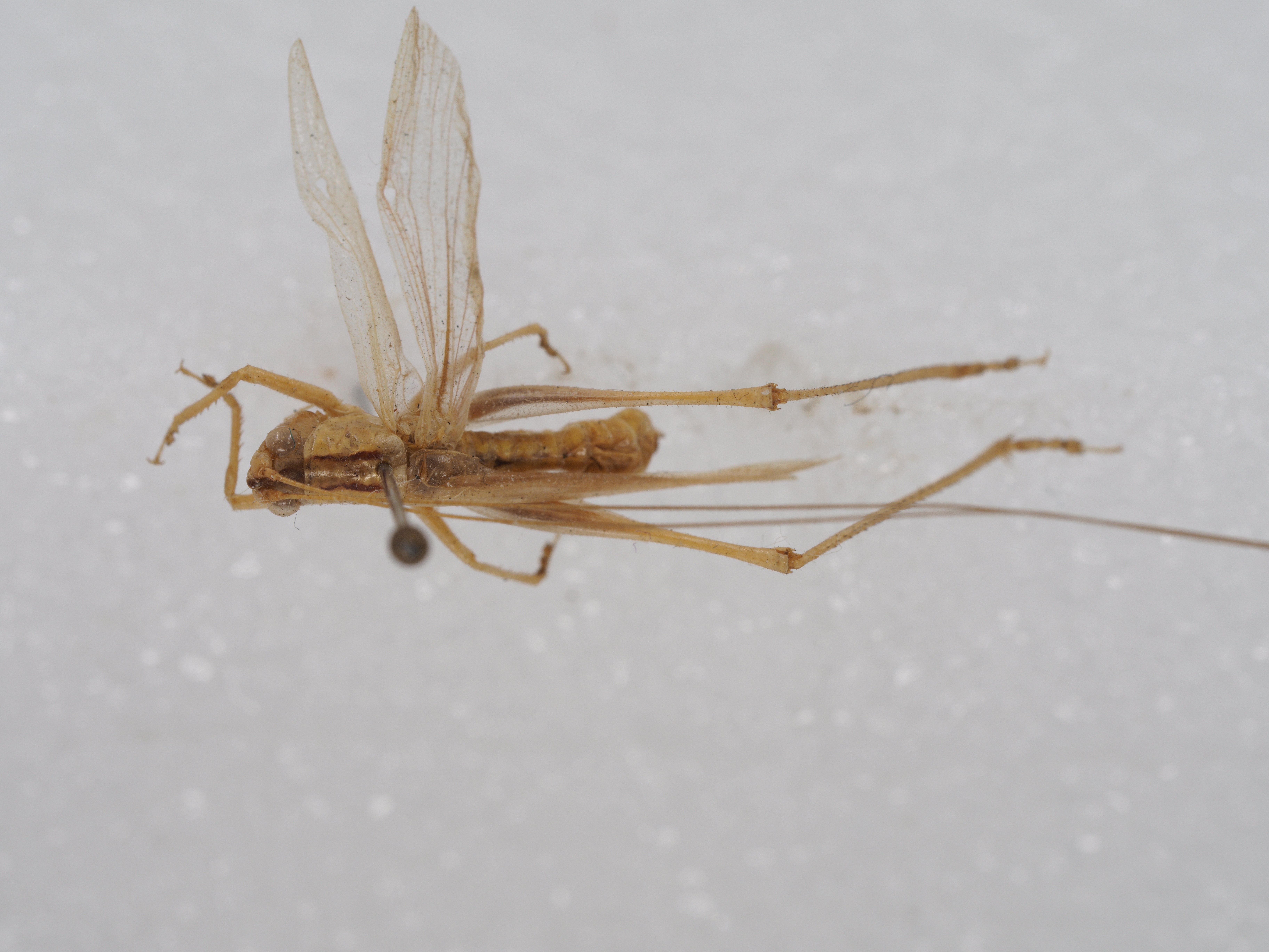 triangular notch in the middle of its hind margin. Cerci cylindrical-shaped, comparatively slim, and with one