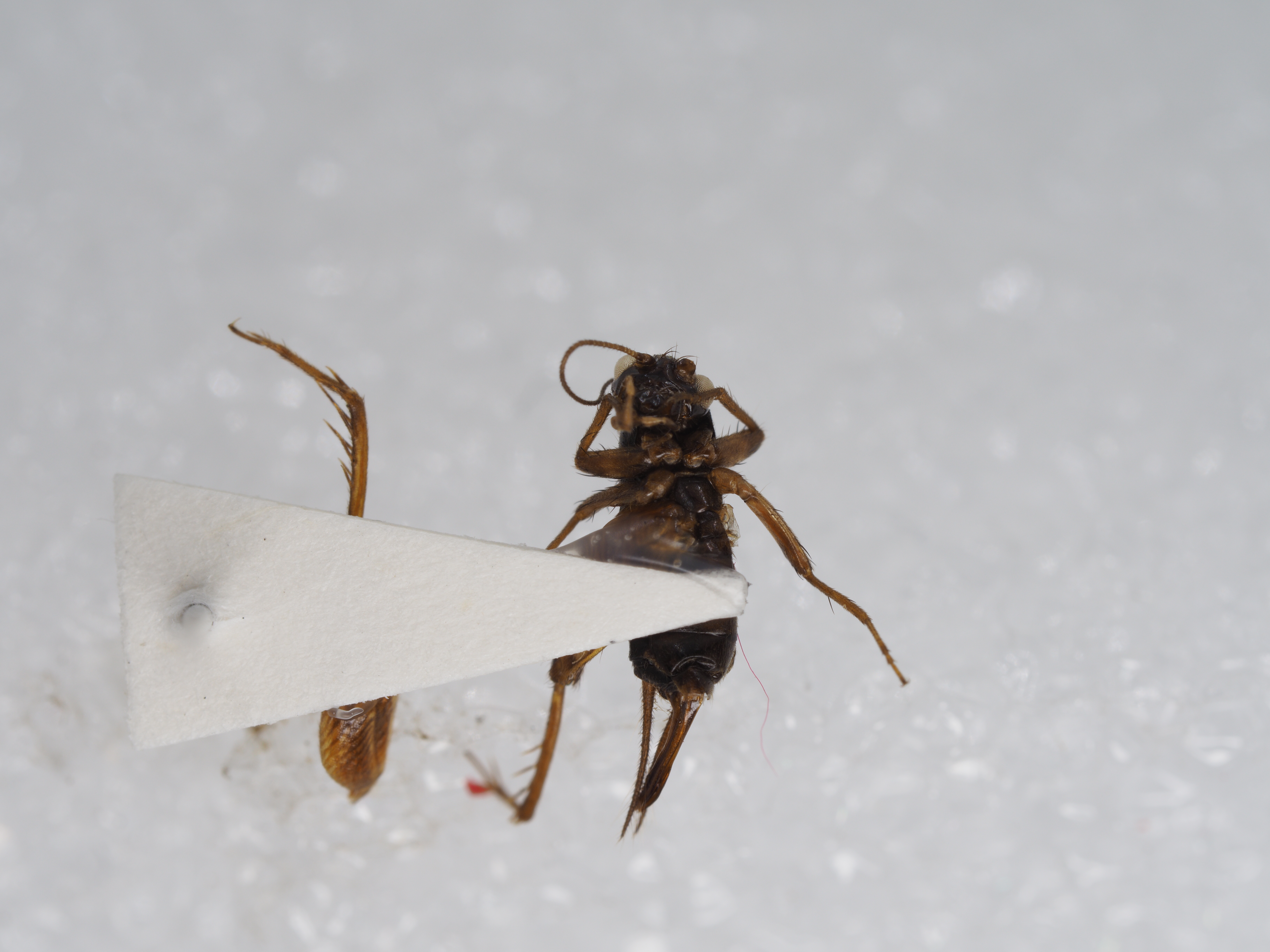 glossy, with five veins on dorsal field and four veins on lateral field (Fig. 1). No mirror and wings absent.