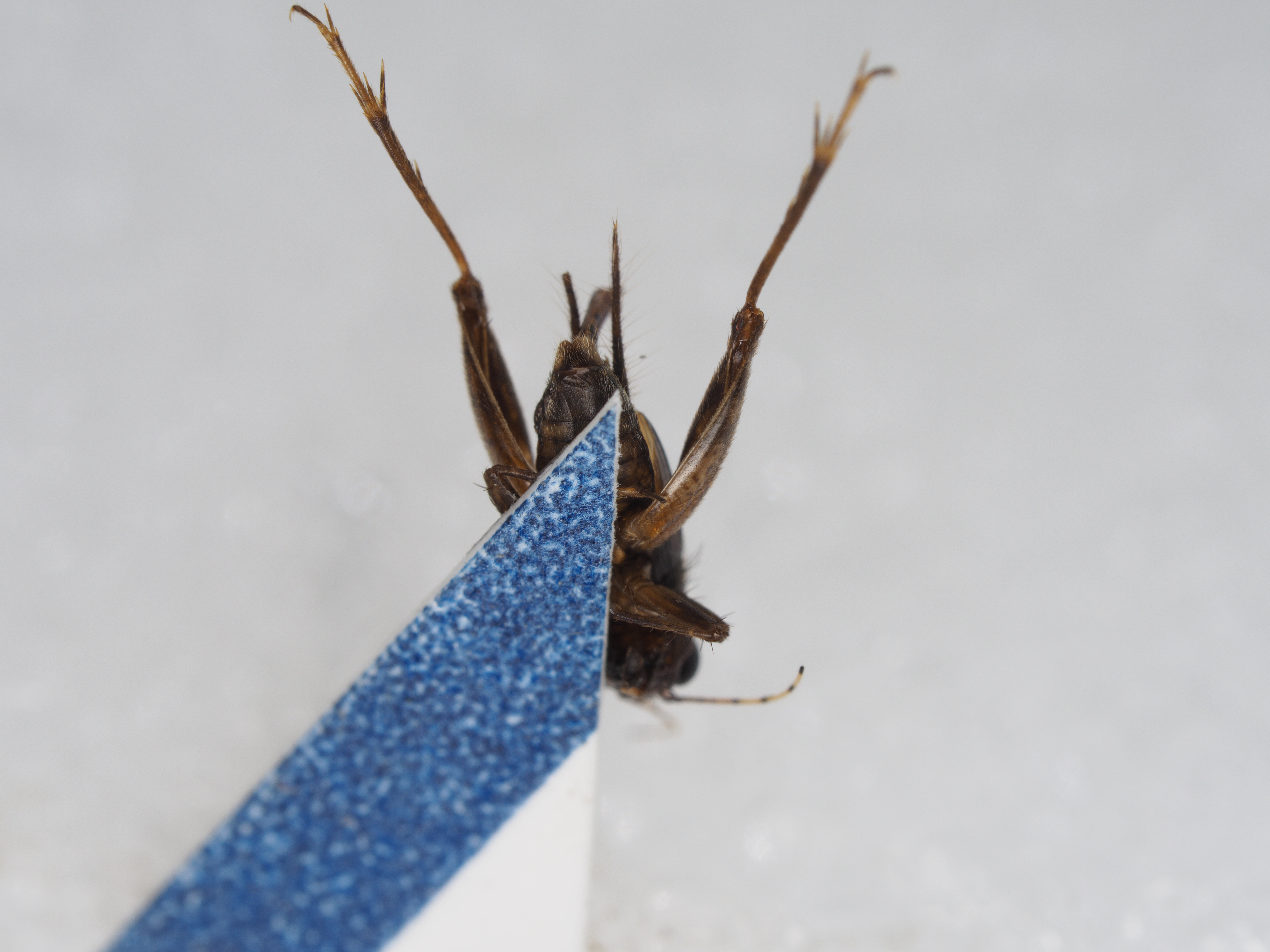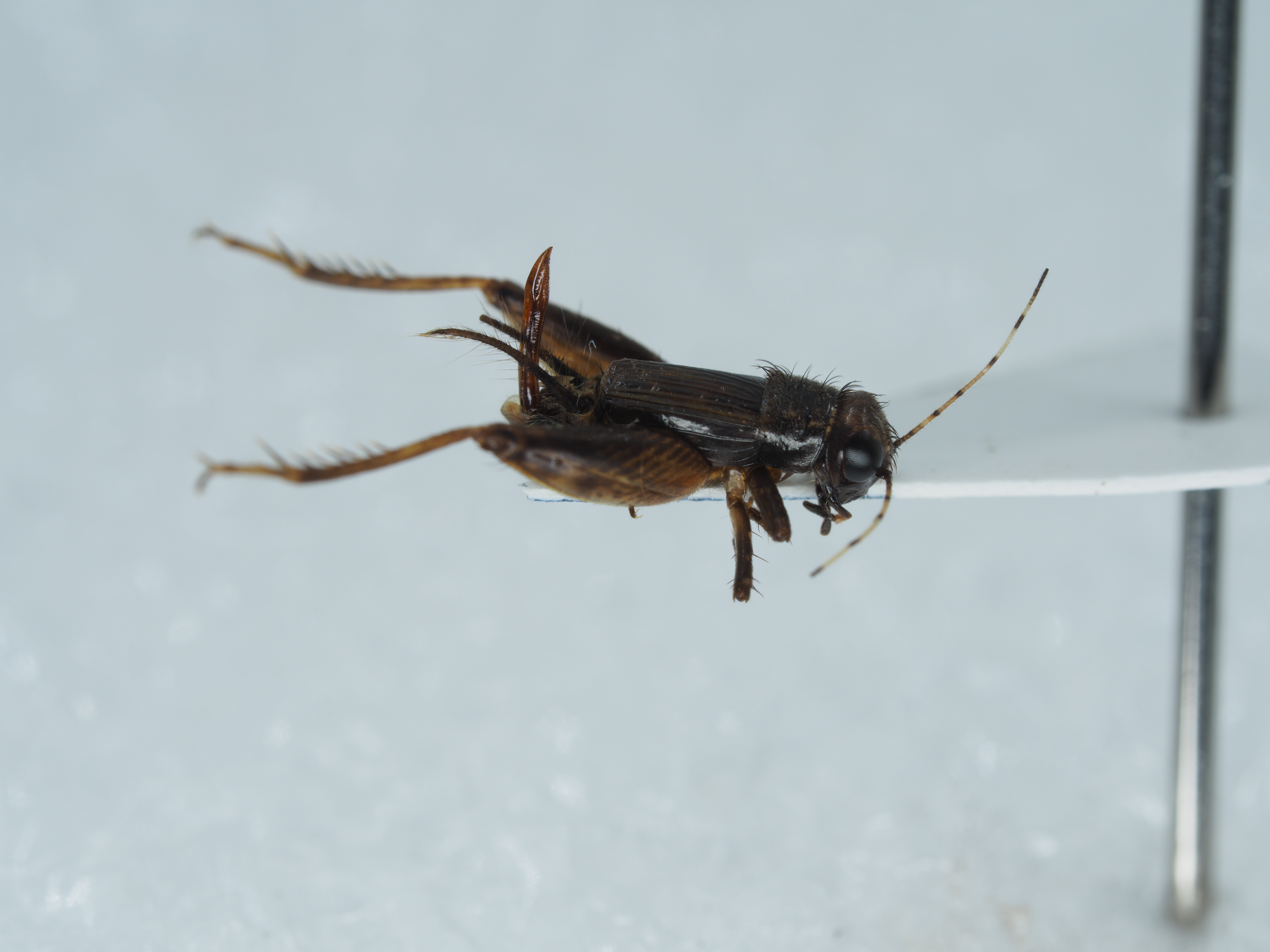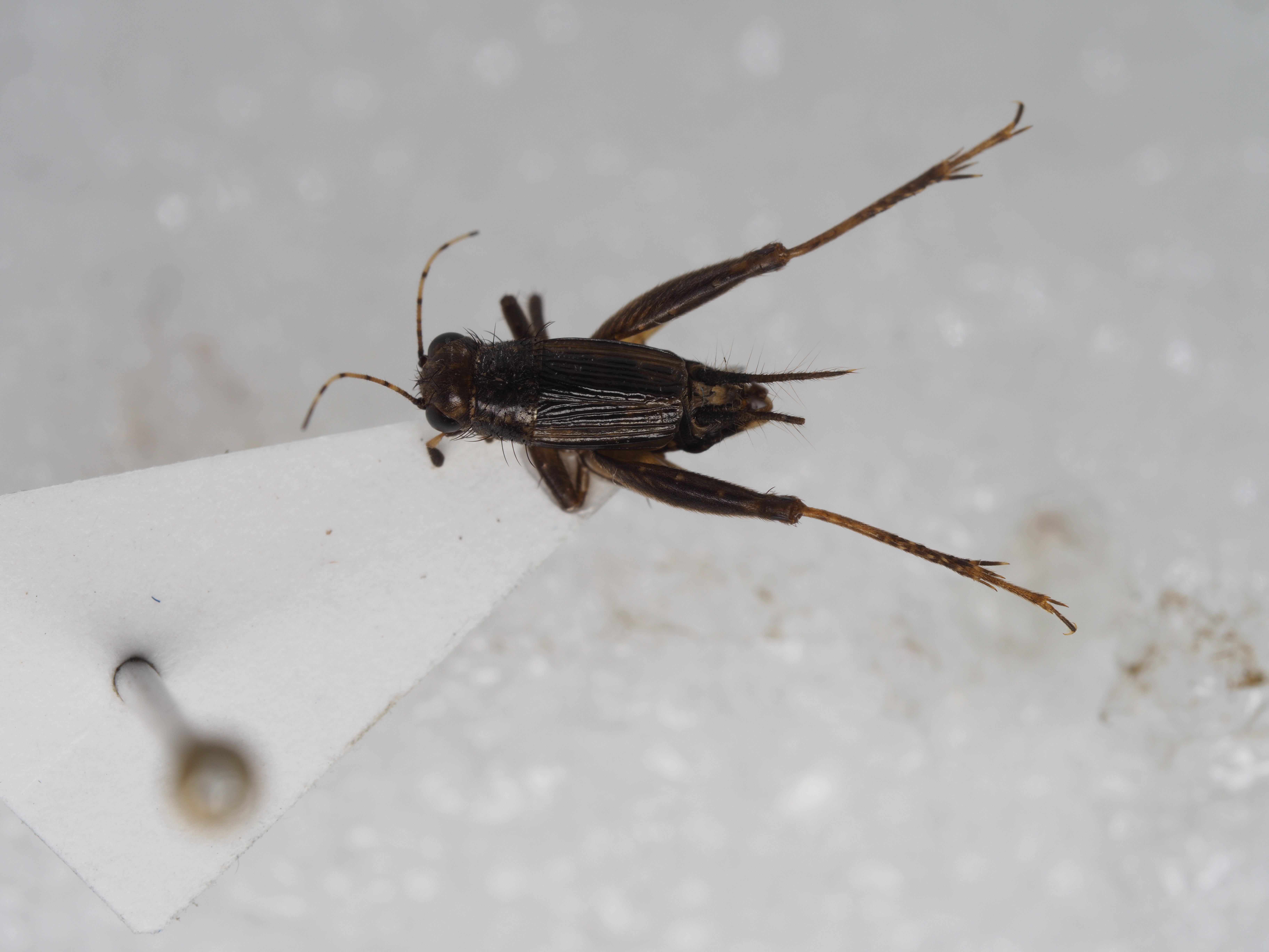 with tympanum on outer surface. Hind tibia with three external dorsal spurs and four internal dorsal spurs