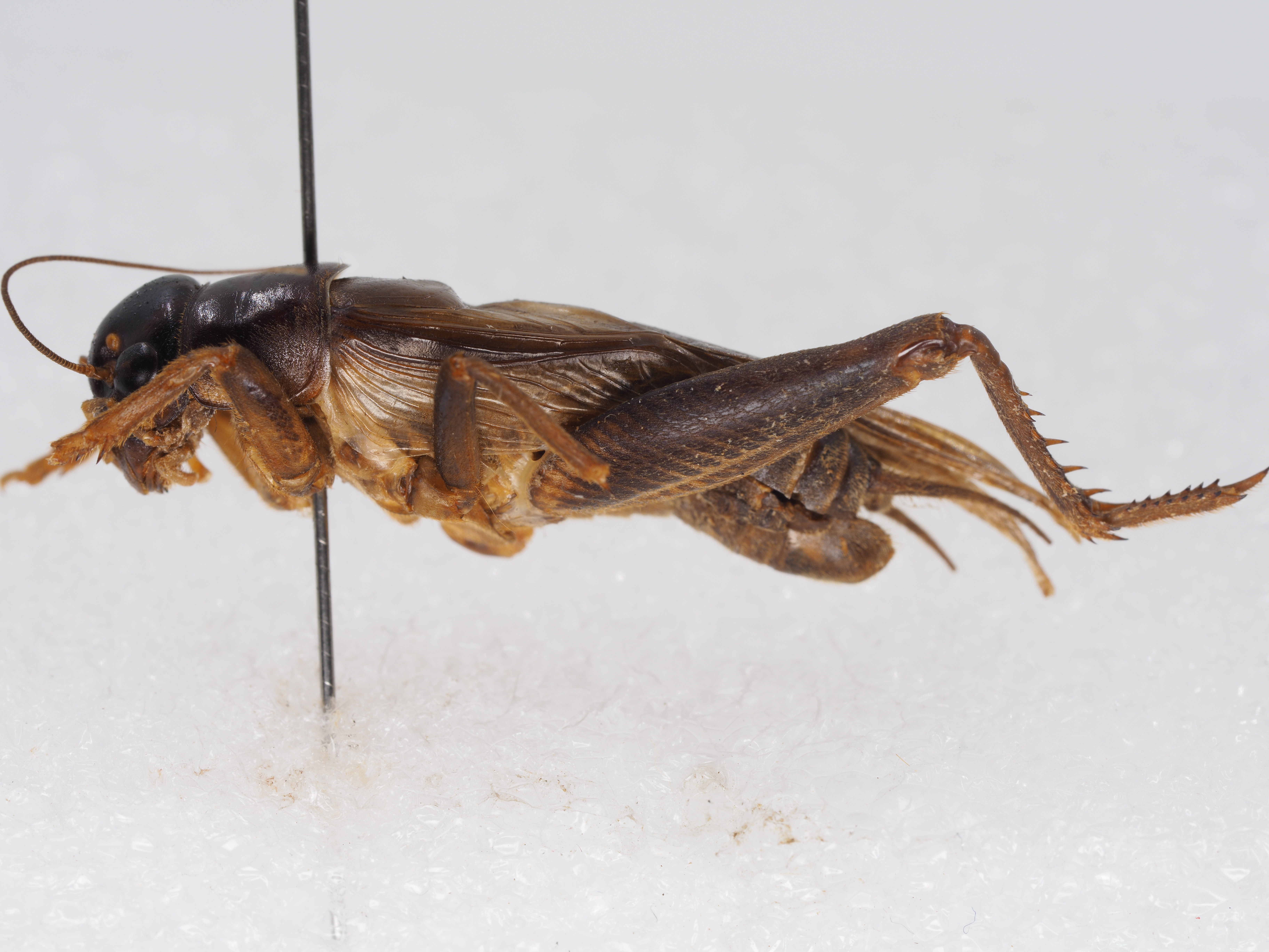men). Forewings do not reach apex of abdomen. Stridulatory file inside apex almost connect to hairs, with 54 anvil-