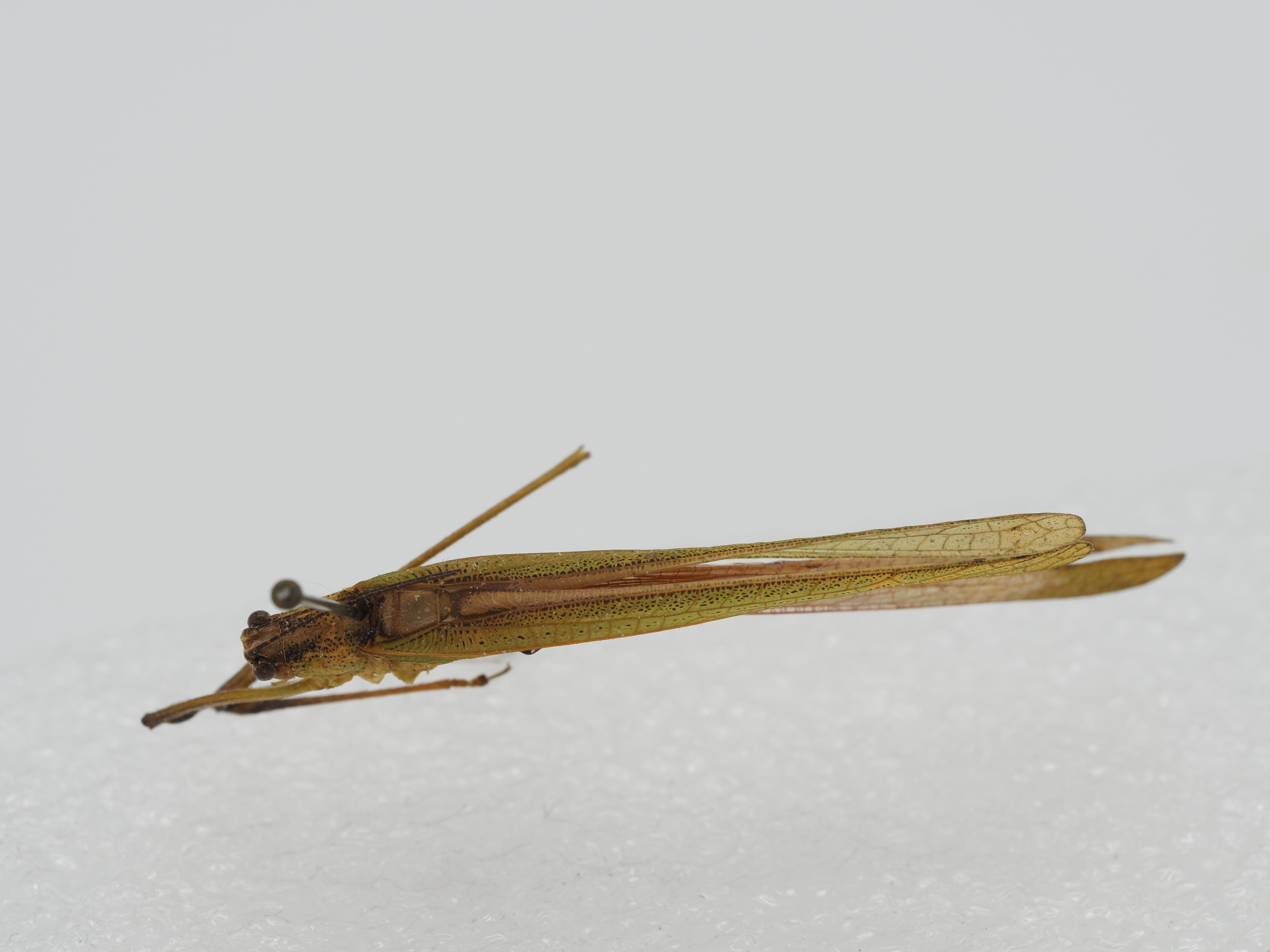 Color: Body yellowish green (probably green in life). Compound eyes light brown. Antennal scape and pedi-