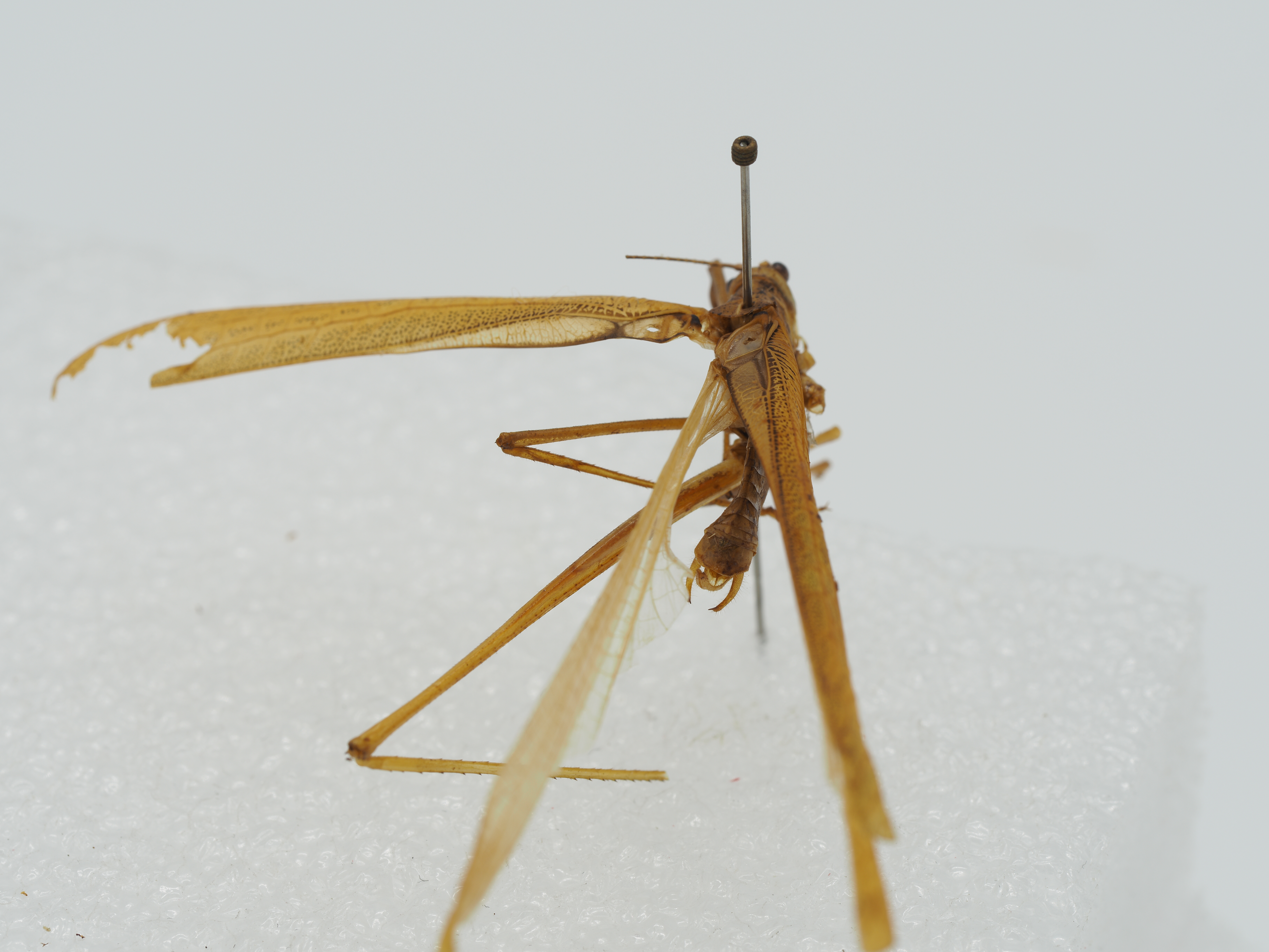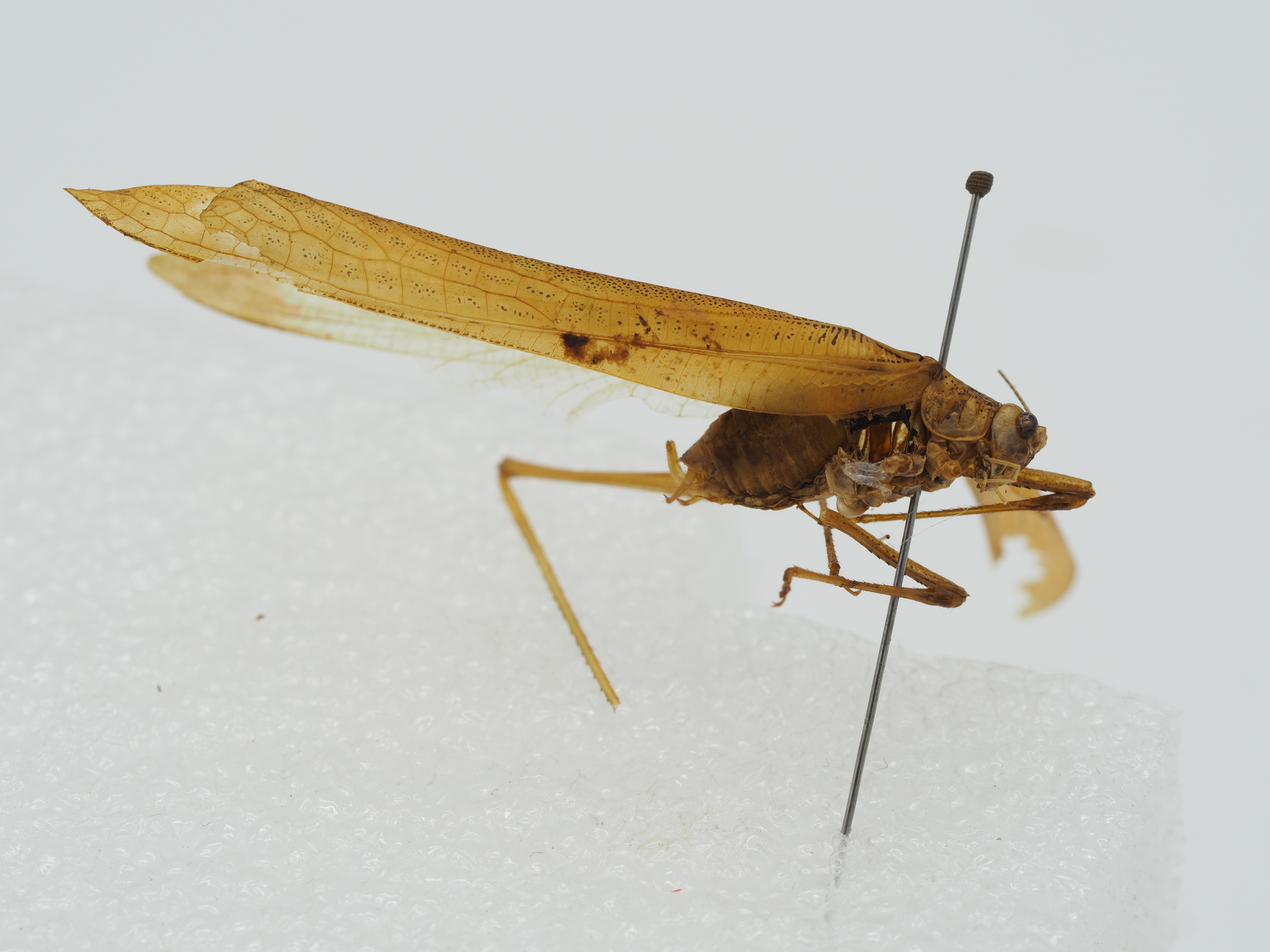 描述:Tegmen distinctly surpassing apex of hind femur; hind wings much longer than tegmen; radius
