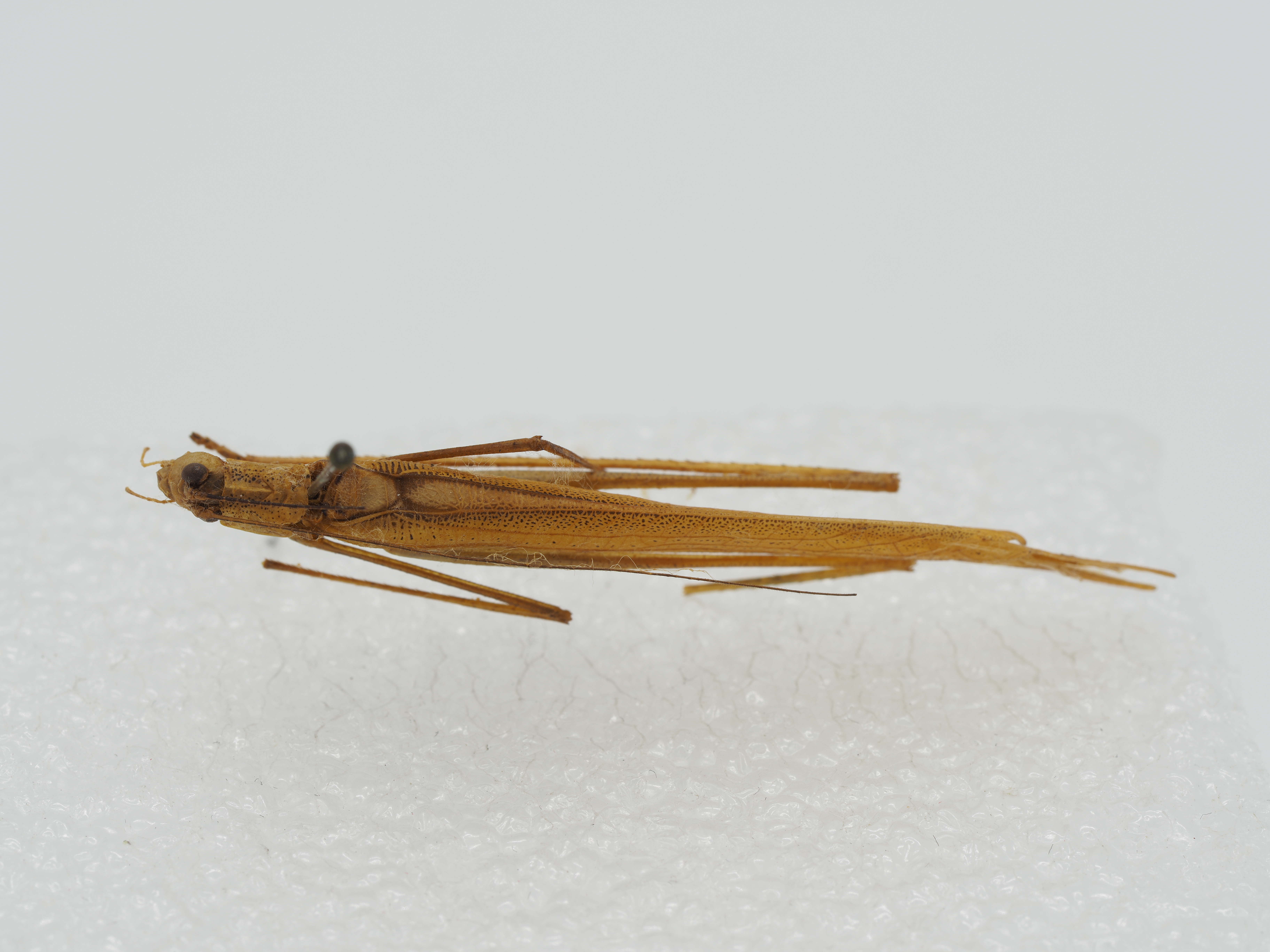 ish white. Pronotal disc and each femur densely covered with numerous scattered brown dots. Veinlets of tegminal