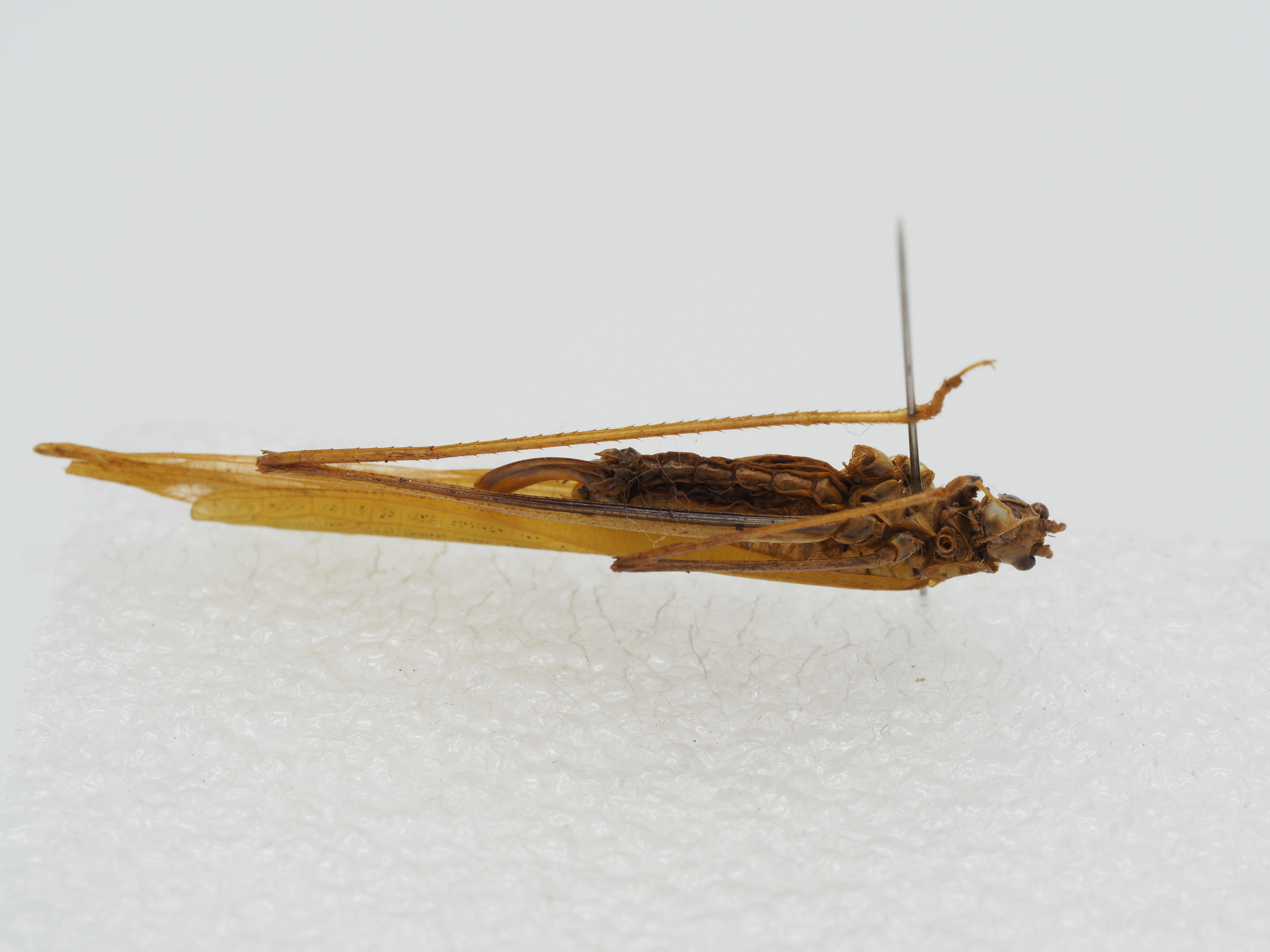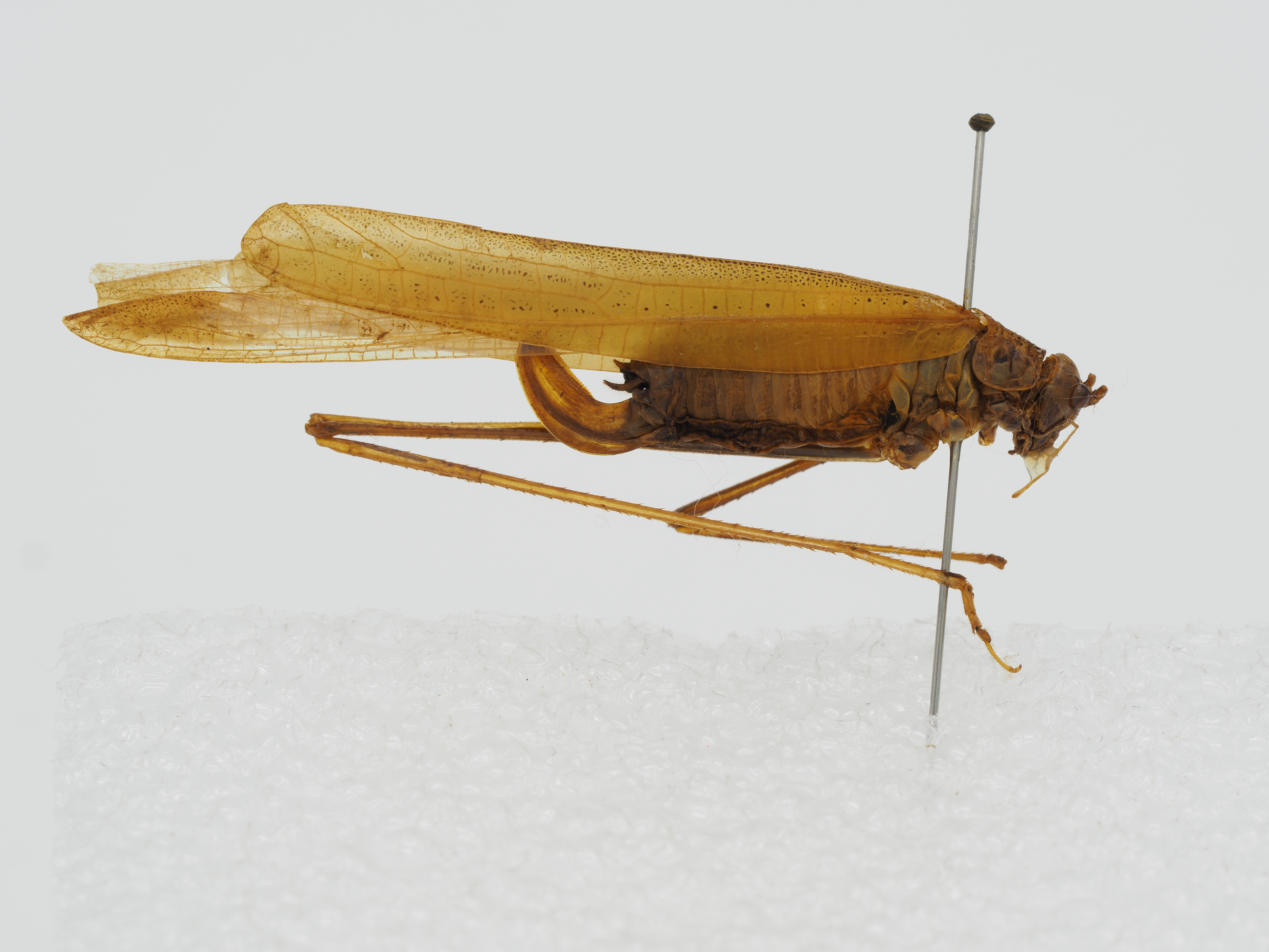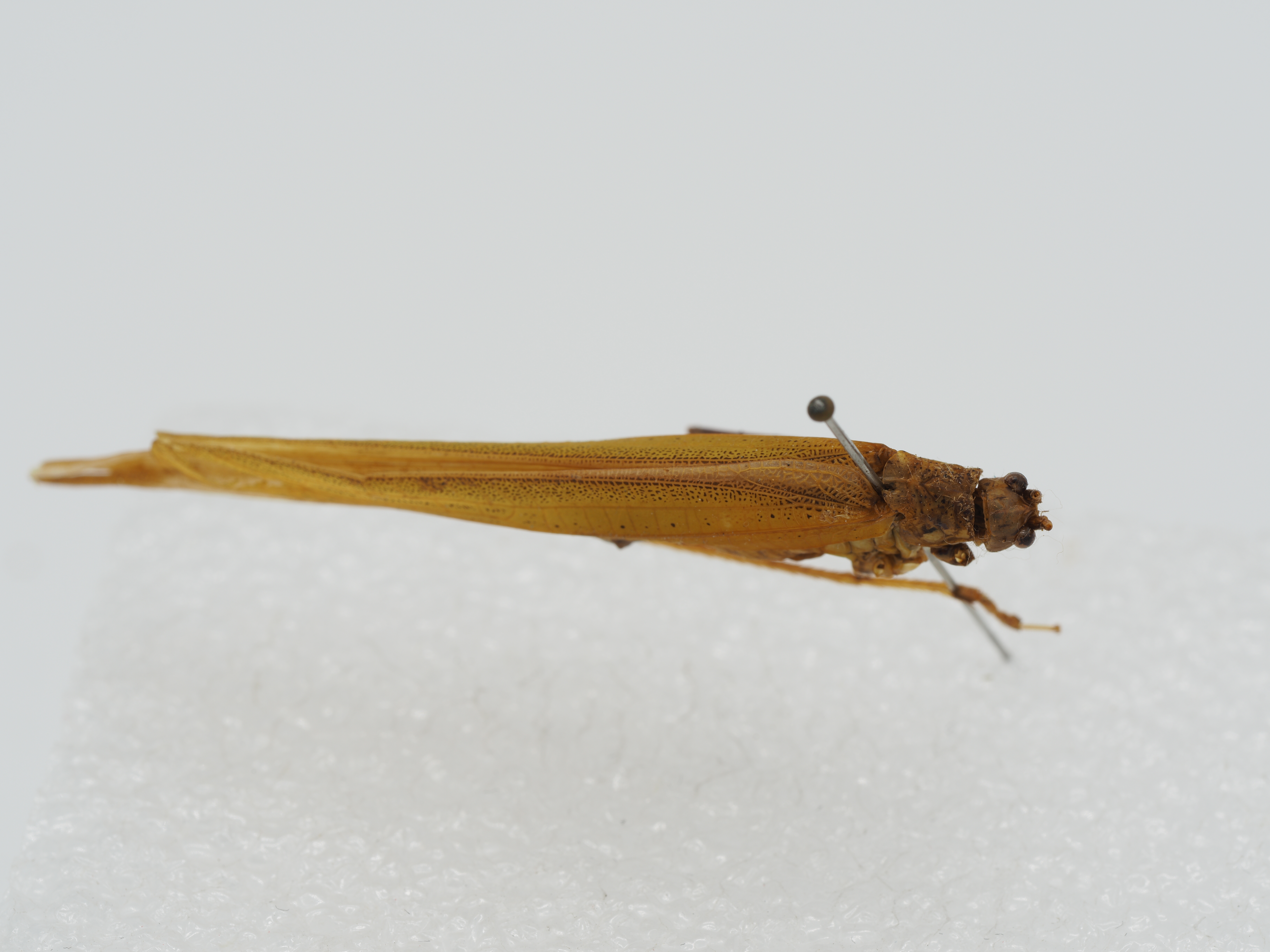 描述:Tegmen distinctly surpassing apex of hind femur; hind wings much longer than tegmen; radius