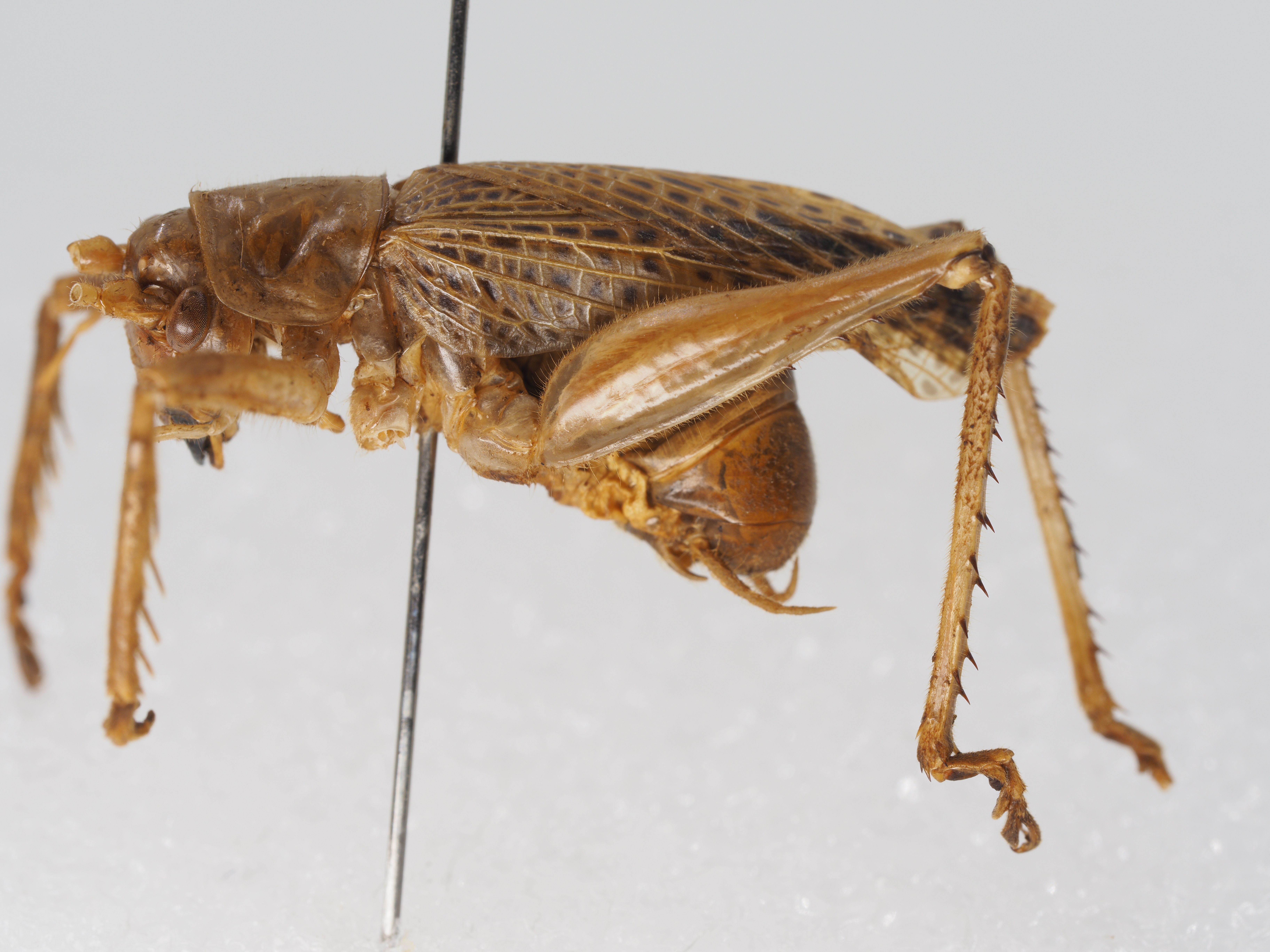 vein. Hind femur with 11–12 internal spines and 9 external spines on ventral surface; hind tibia with 8–9 spines