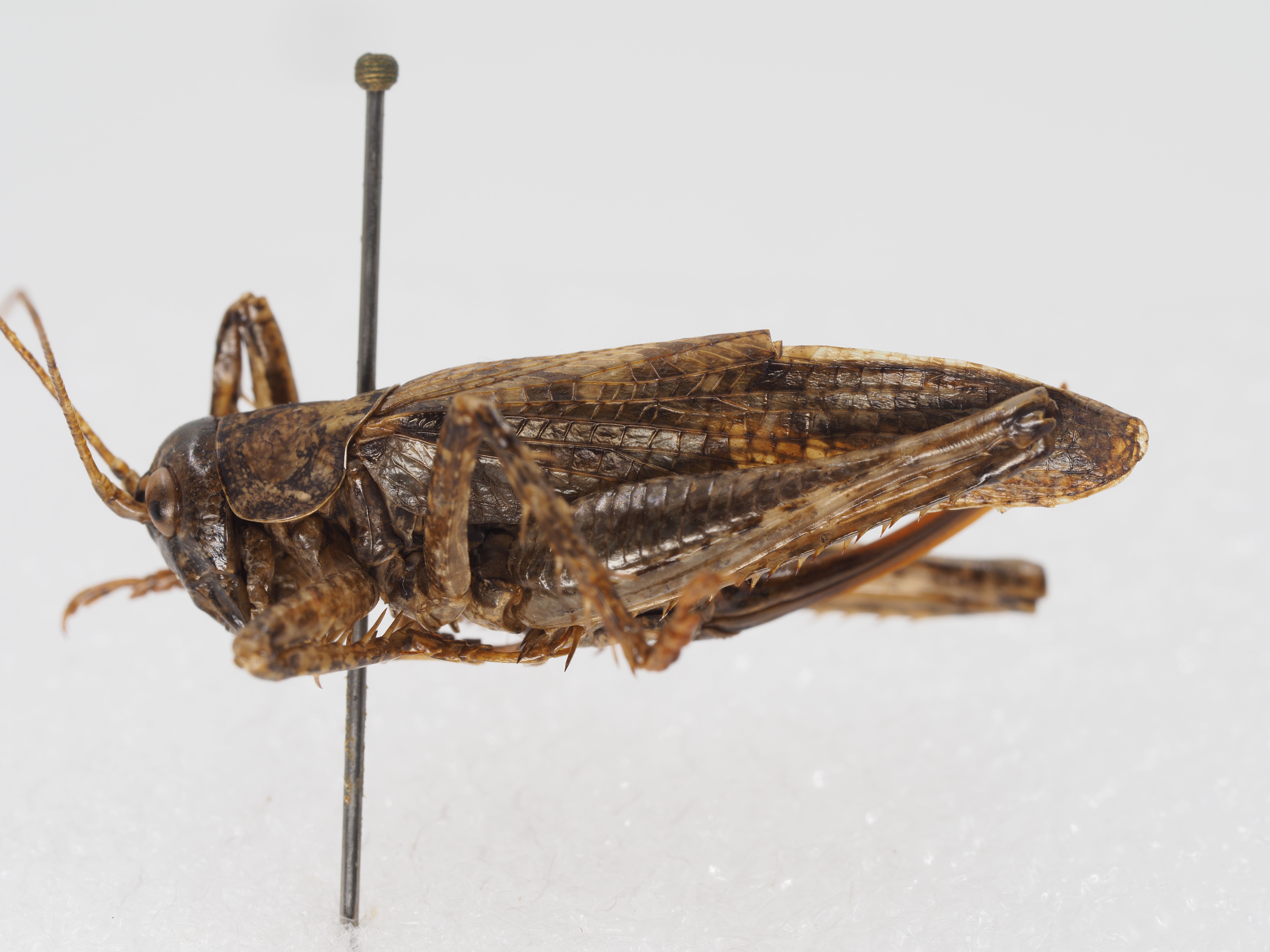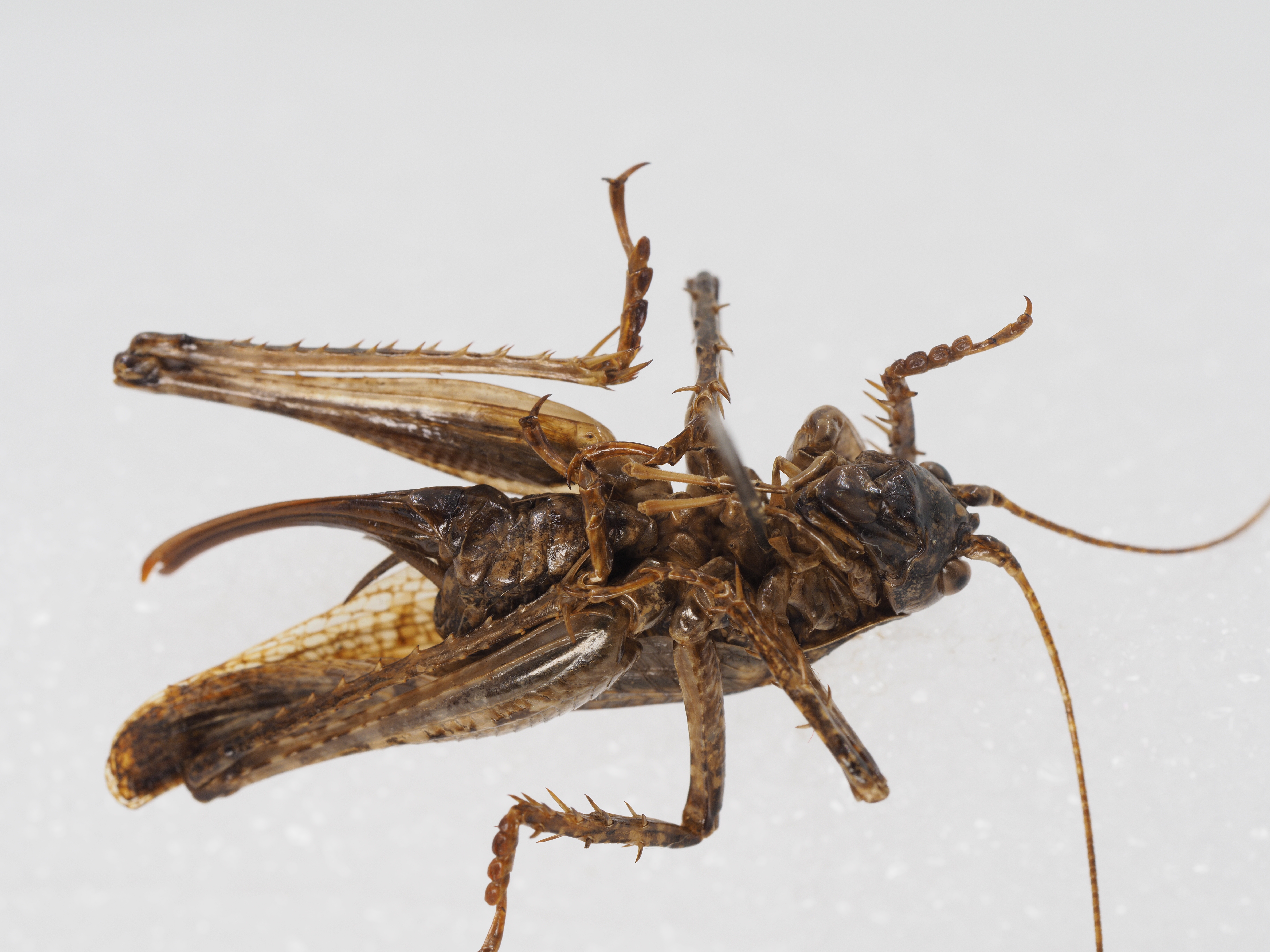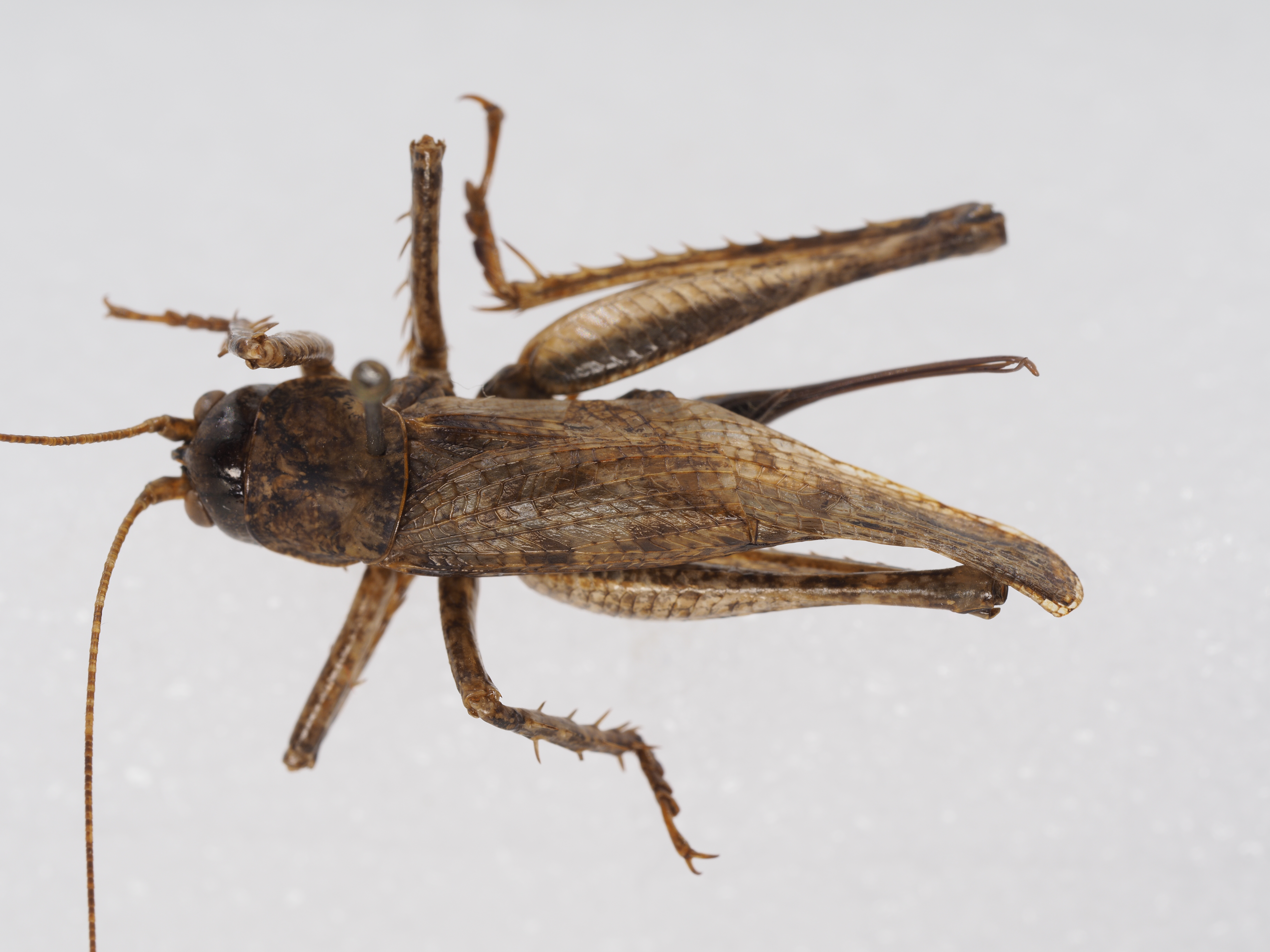 spine, fore tibia with 2 internal spines and 1 external spine above, 5 pairs of spines on below, tympanal organ open.