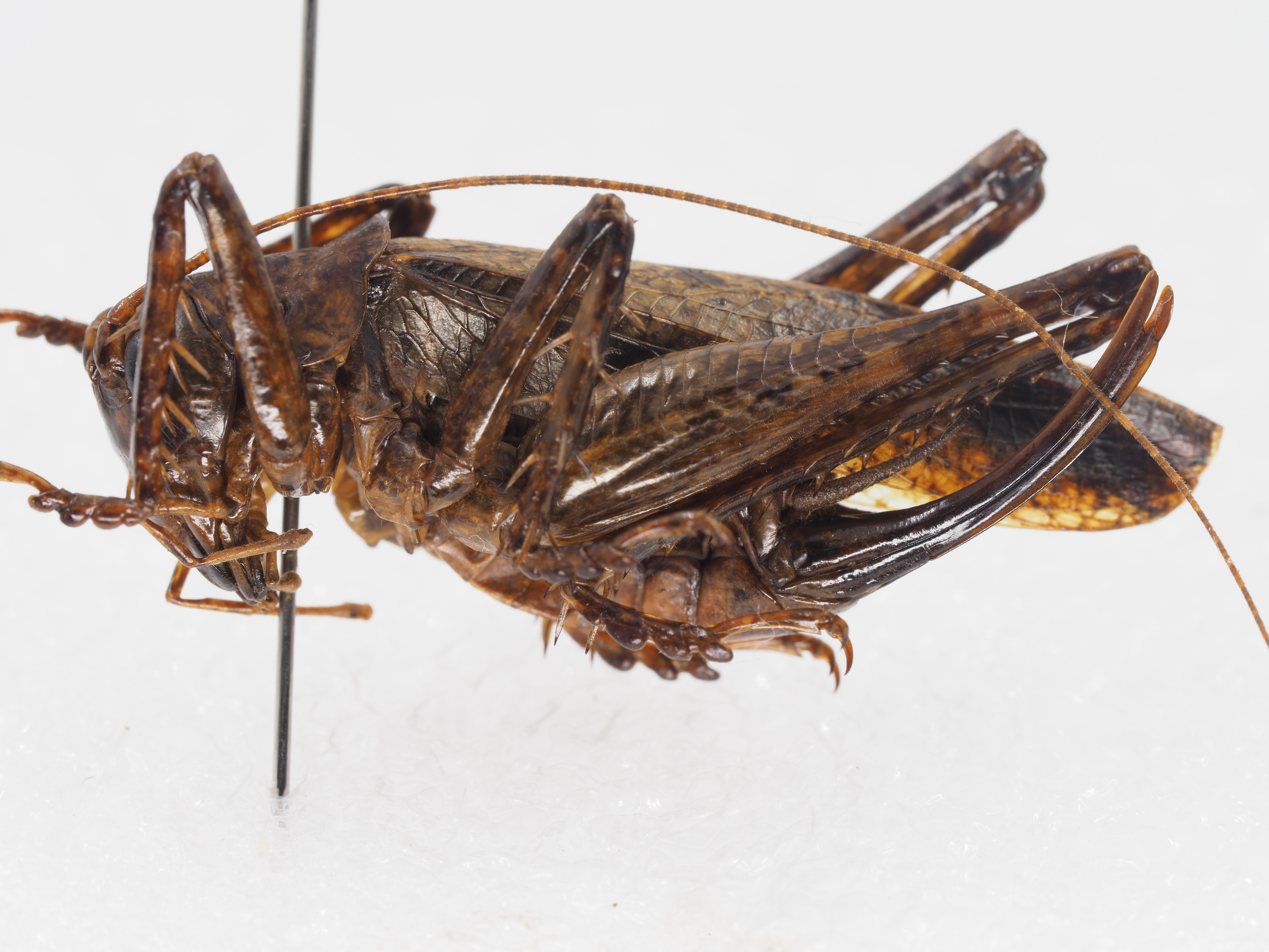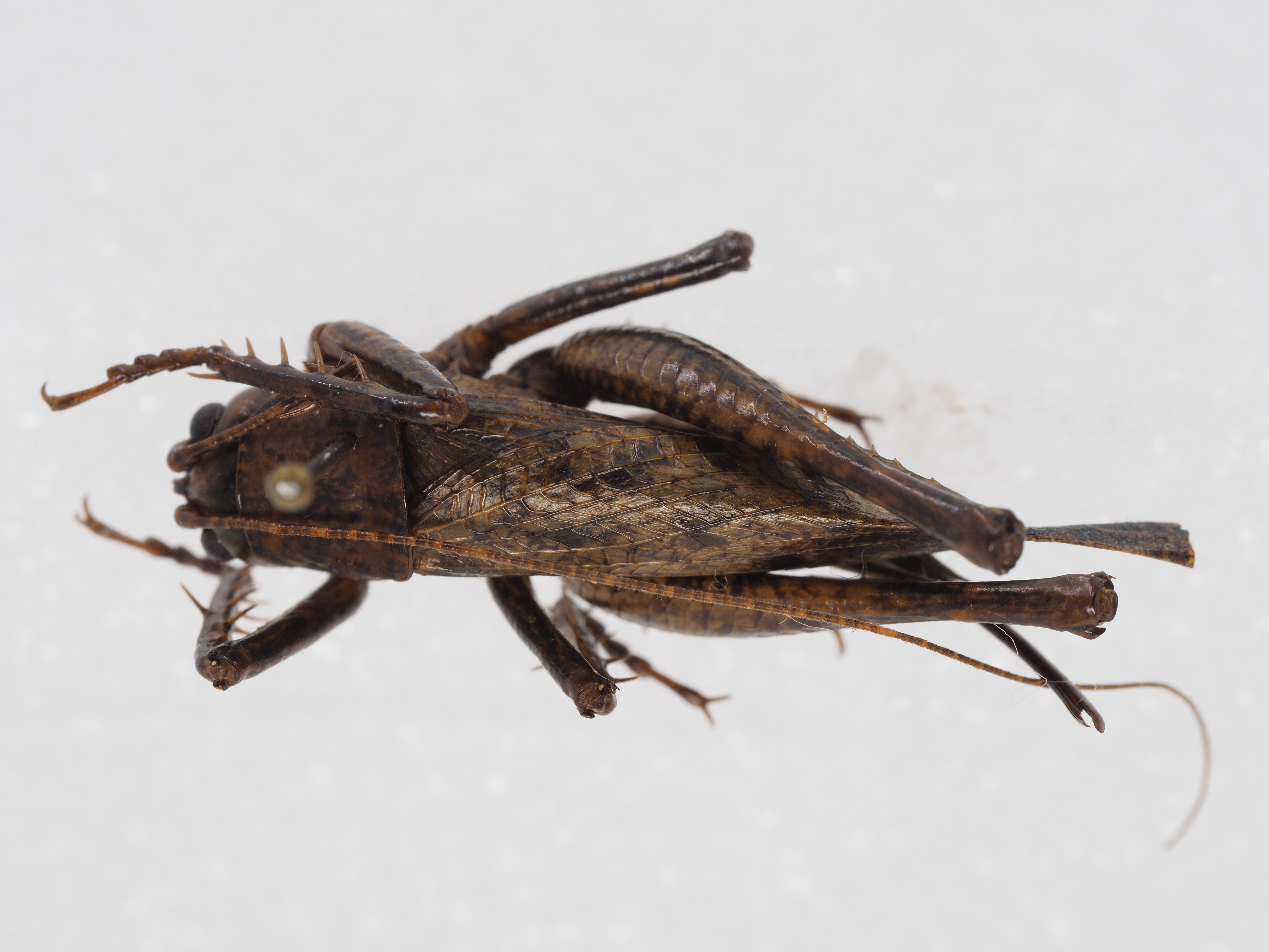 spine, fore tibia with 2 internal spines and 1 external spine above, 5 pairs of spines on below, tympanal organ open.