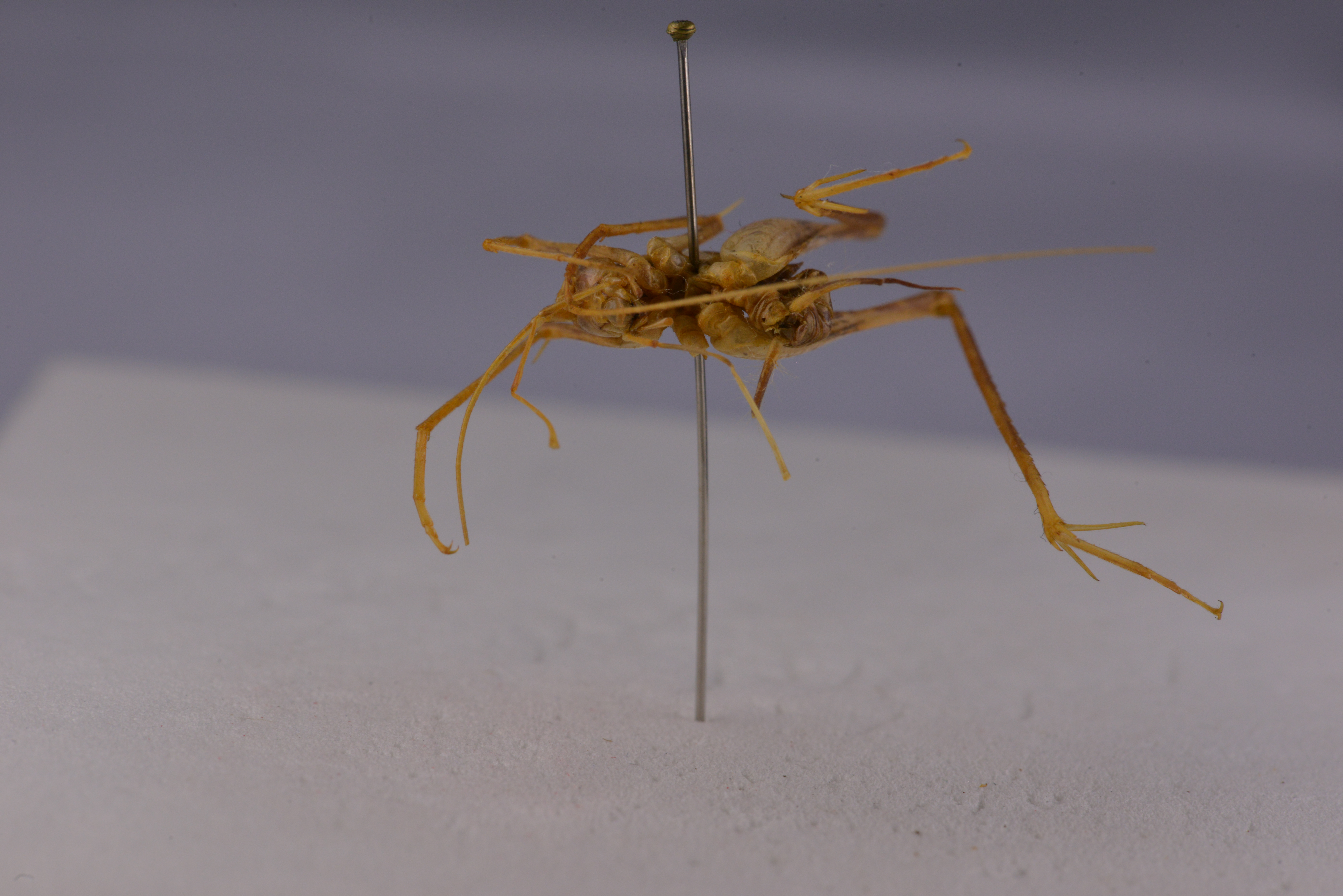 描述:Male. Head with fastigium of vertex divided into two conical tubercles. Legs long and slender;