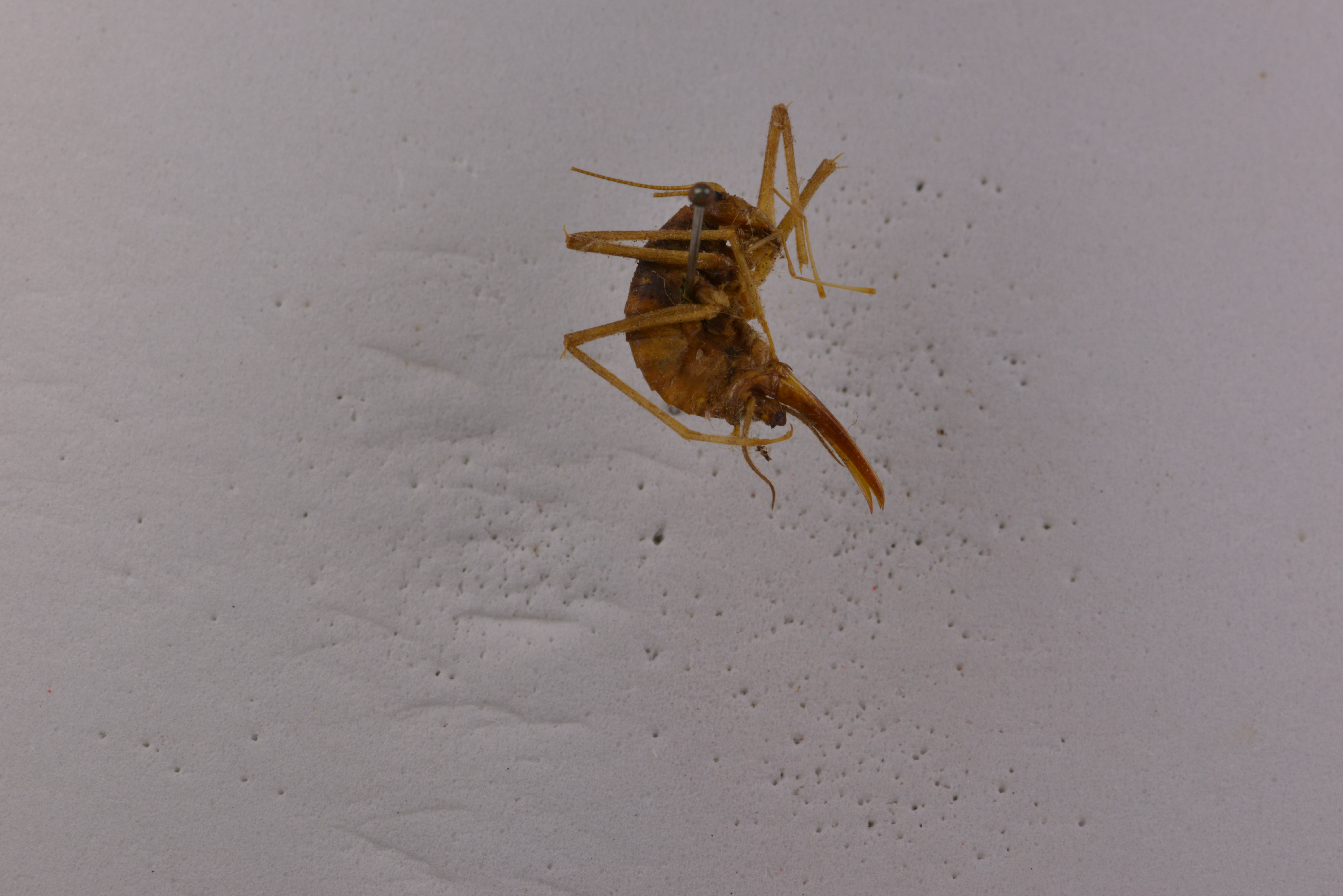 描述:Male. Head with fastigium of vertex divided into two conical tubercles. Legs long and slender;