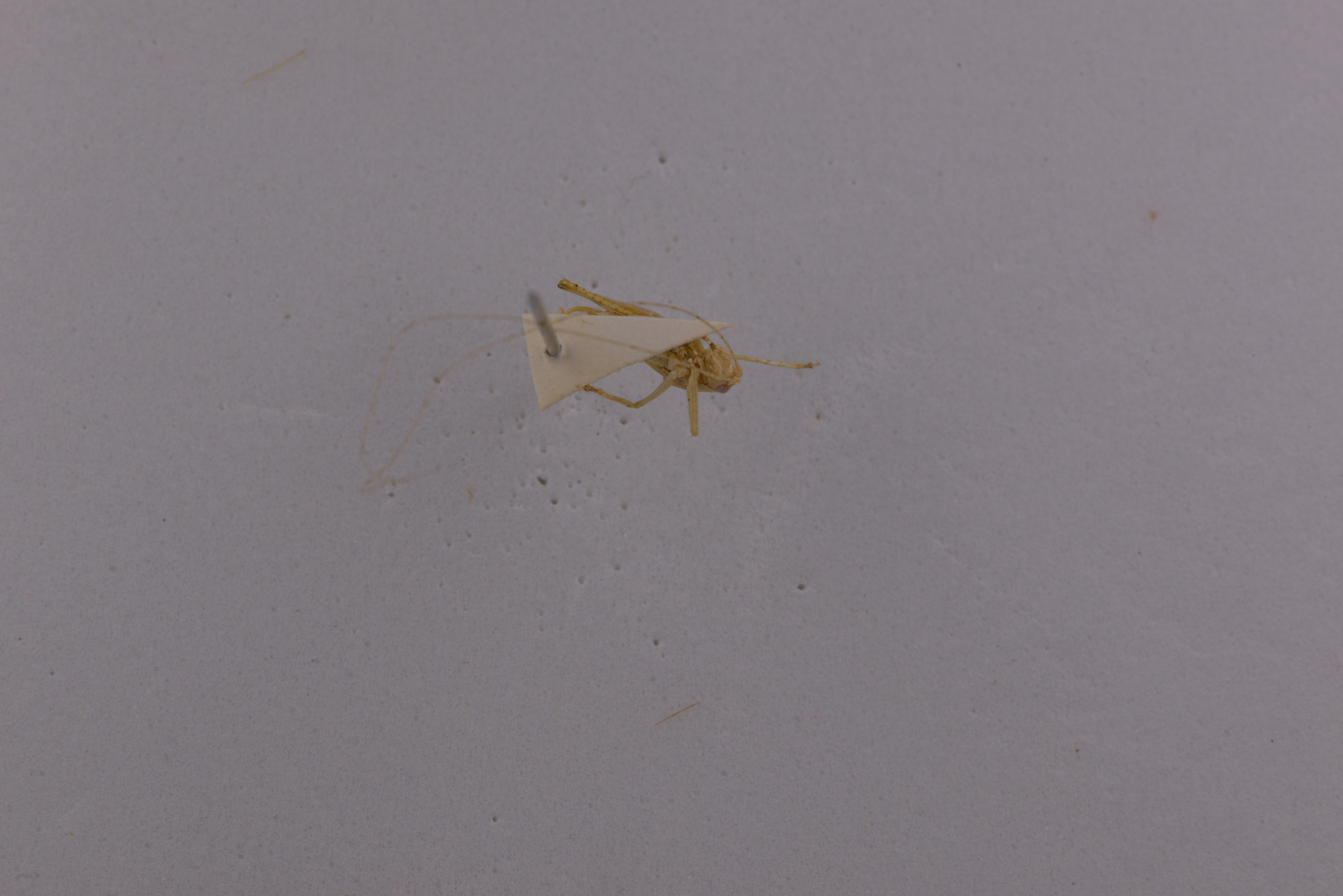描述:Male. Fastigium of vertex conical, with weak dorsal groove. Pronotum long and low, metazona