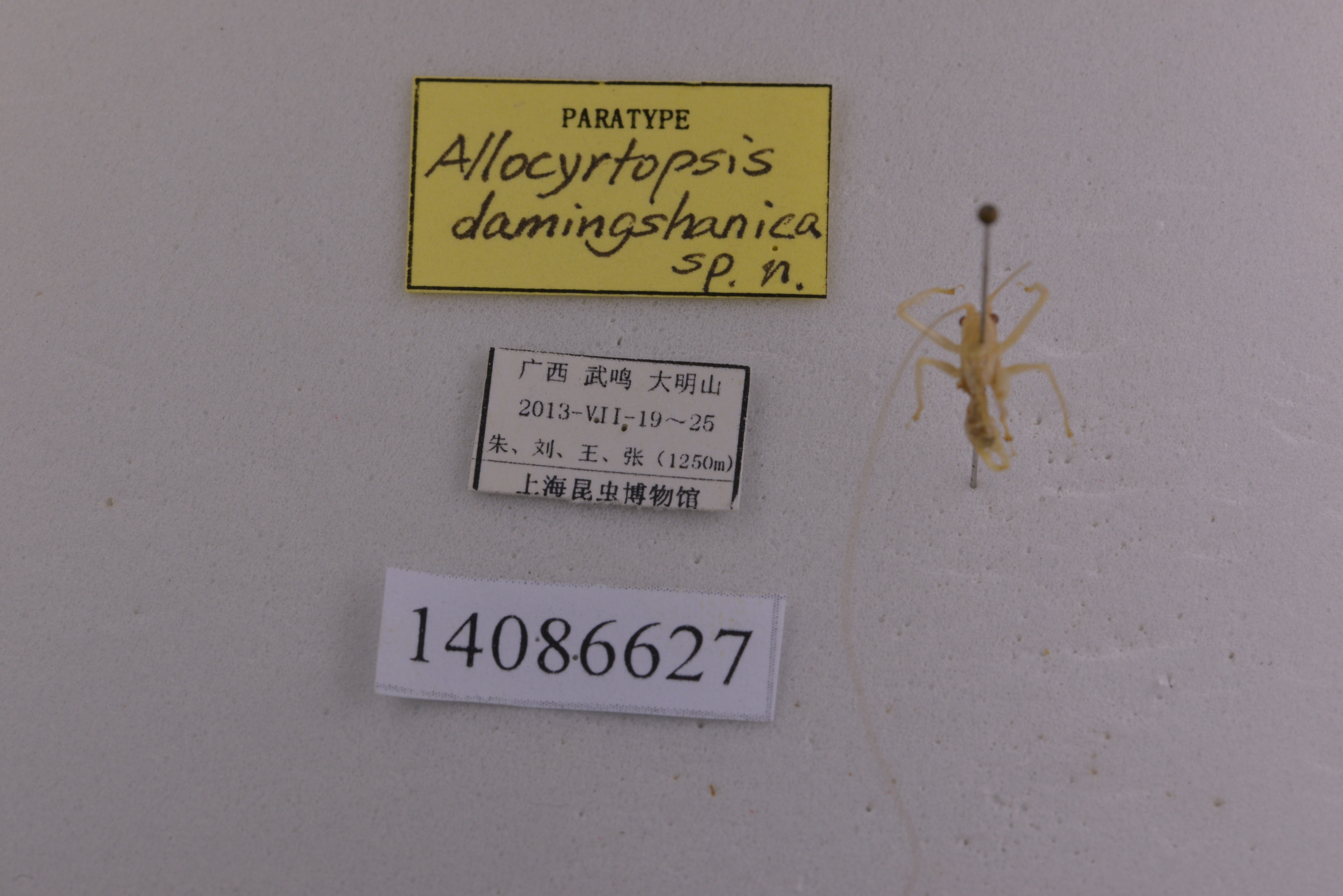 描述:Male. Fastigium of vertex conical, apically blunt and dorsally furrowed. Head hypognathous, last