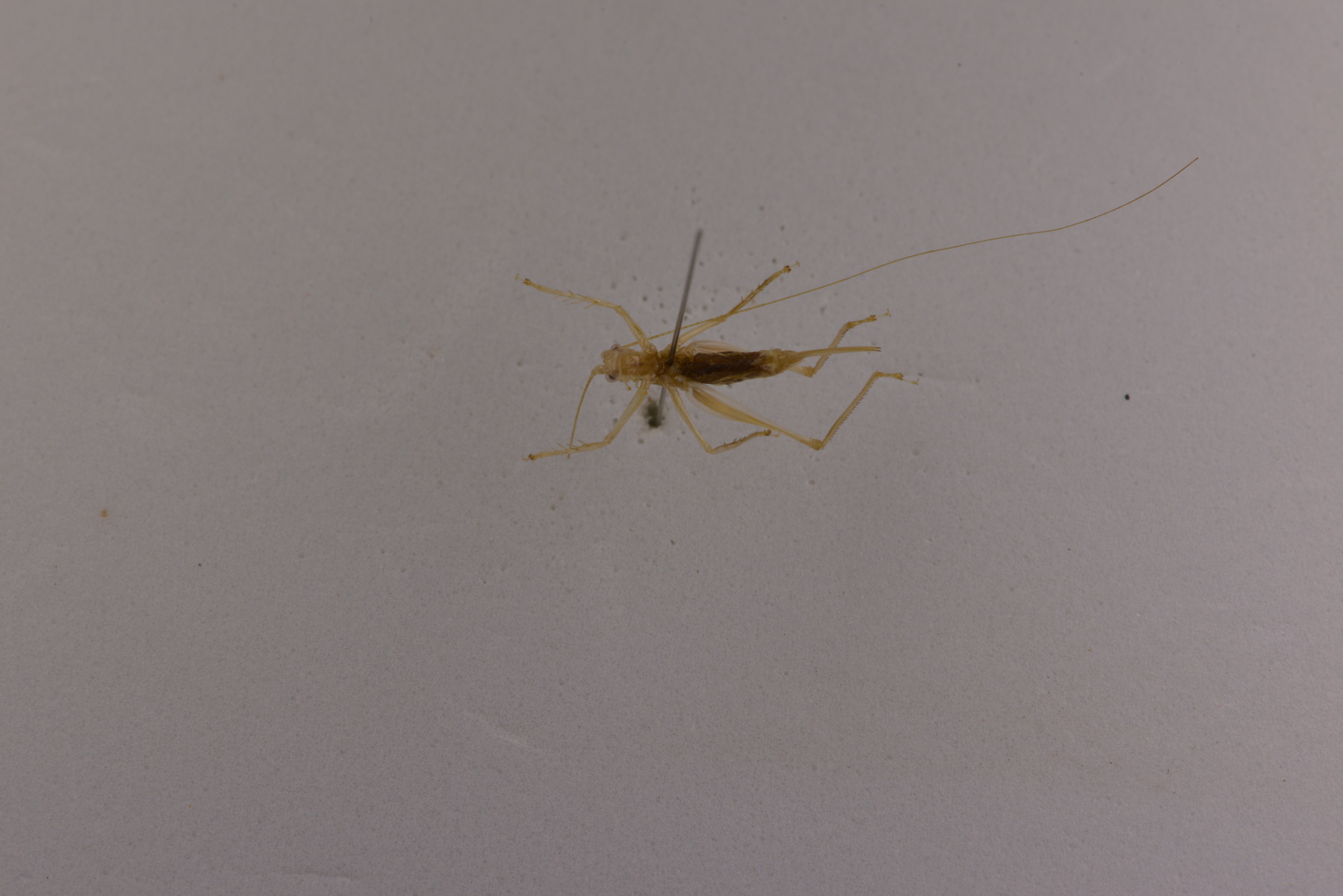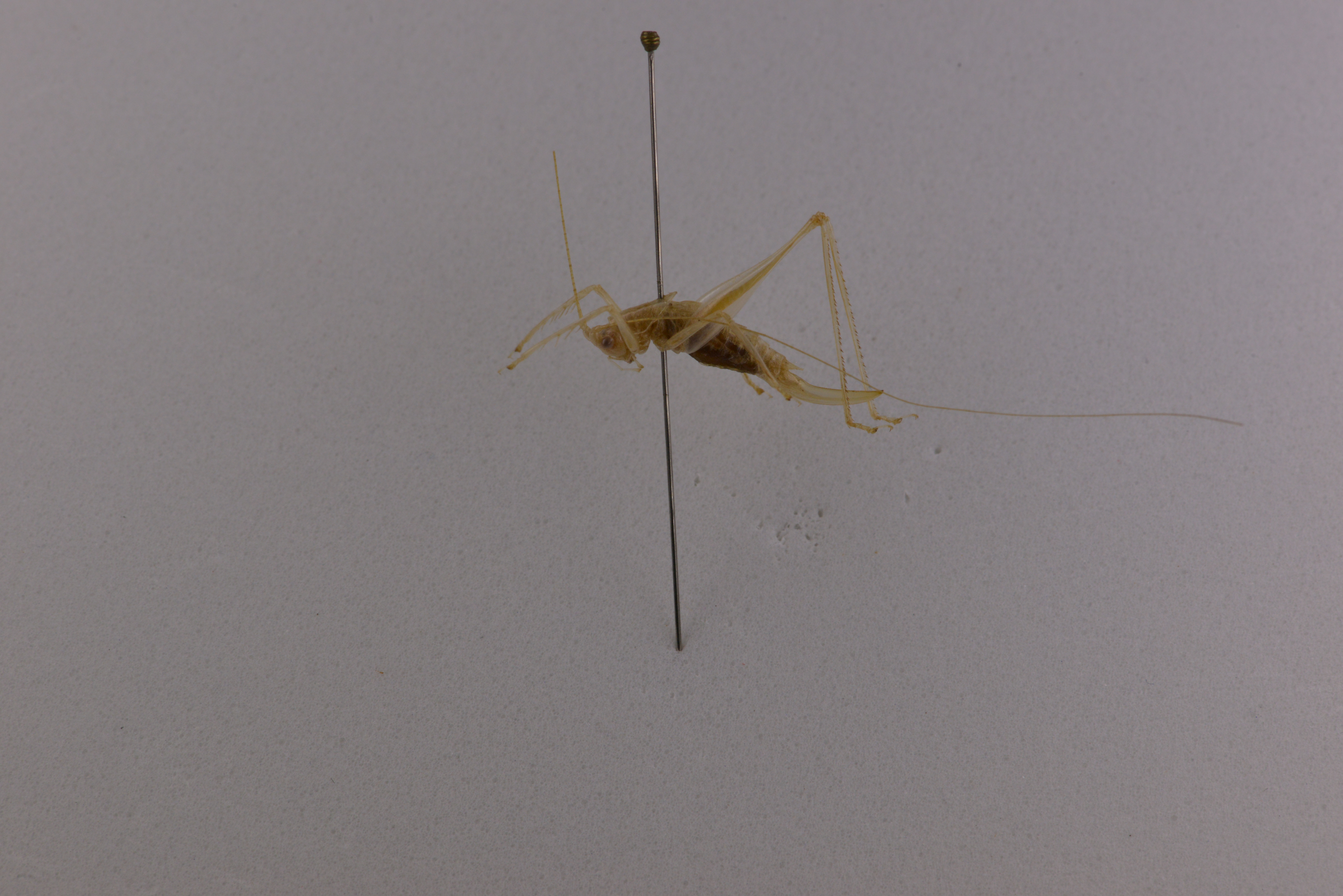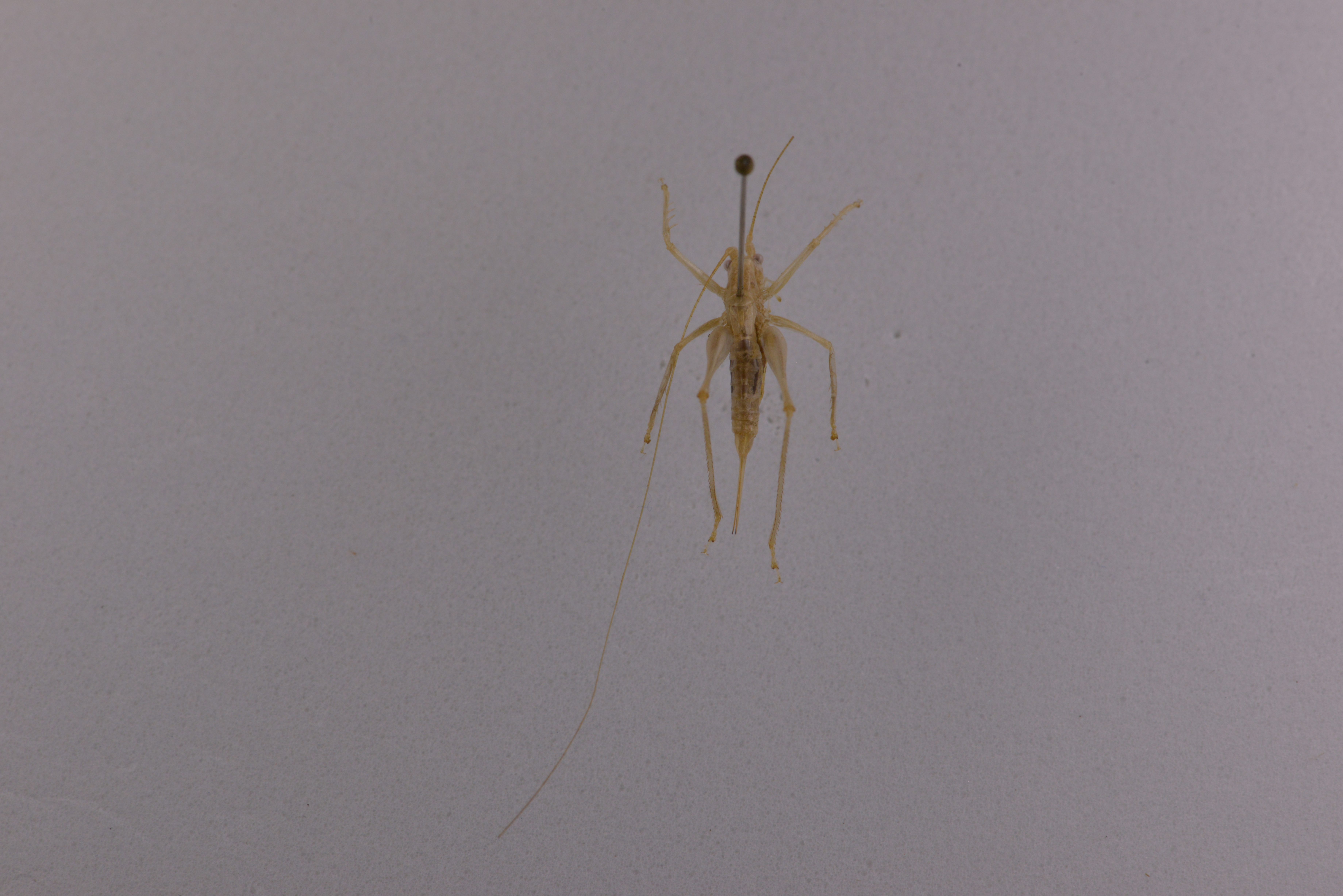 Thoracic auditory spiracle totally exposed. Tegmina short, too transparent to notice while alive, hind margin