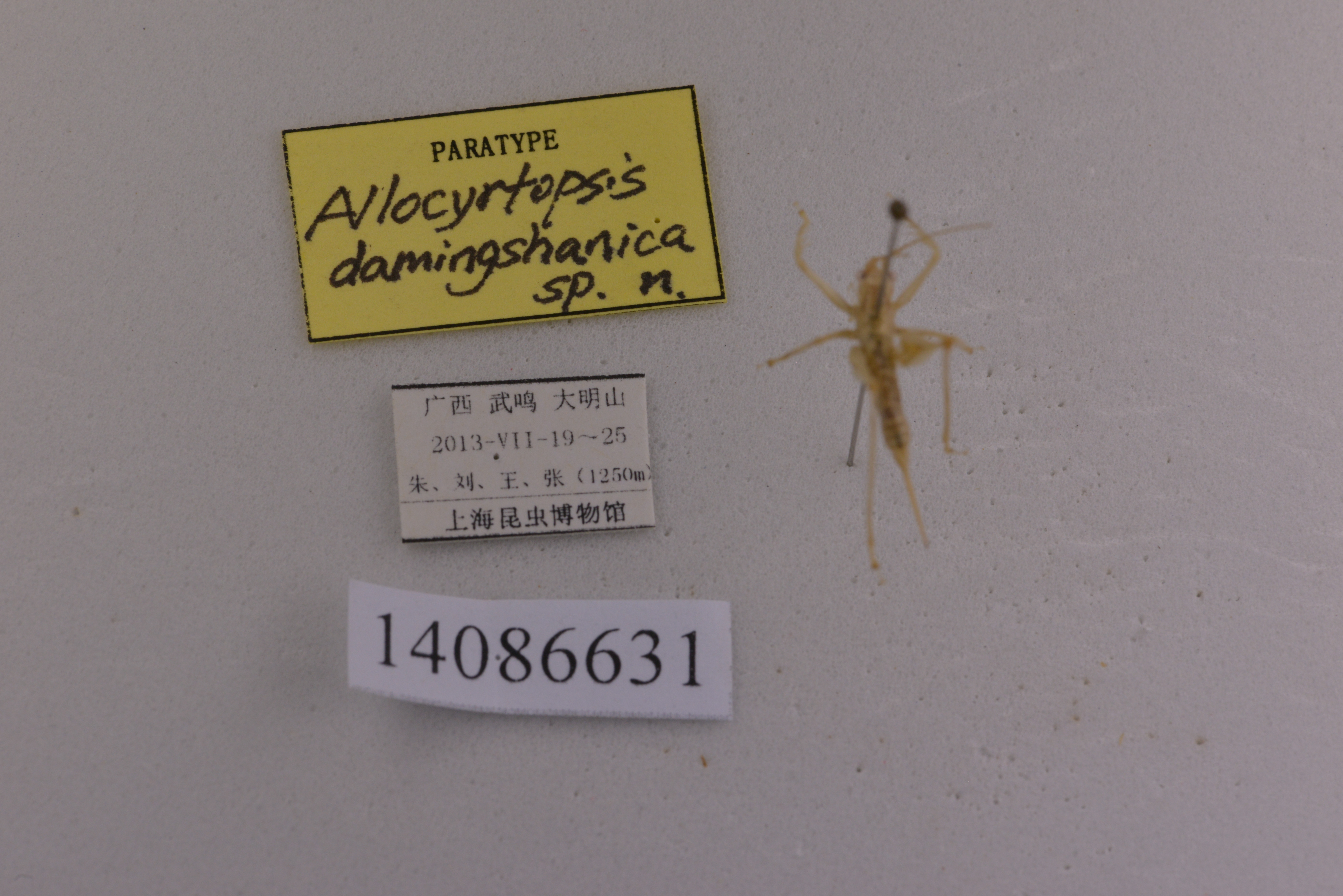 描述:Male. Fastigium of vertex conical, apically blunt and dorsally furrowed. Head hypognathous, last
