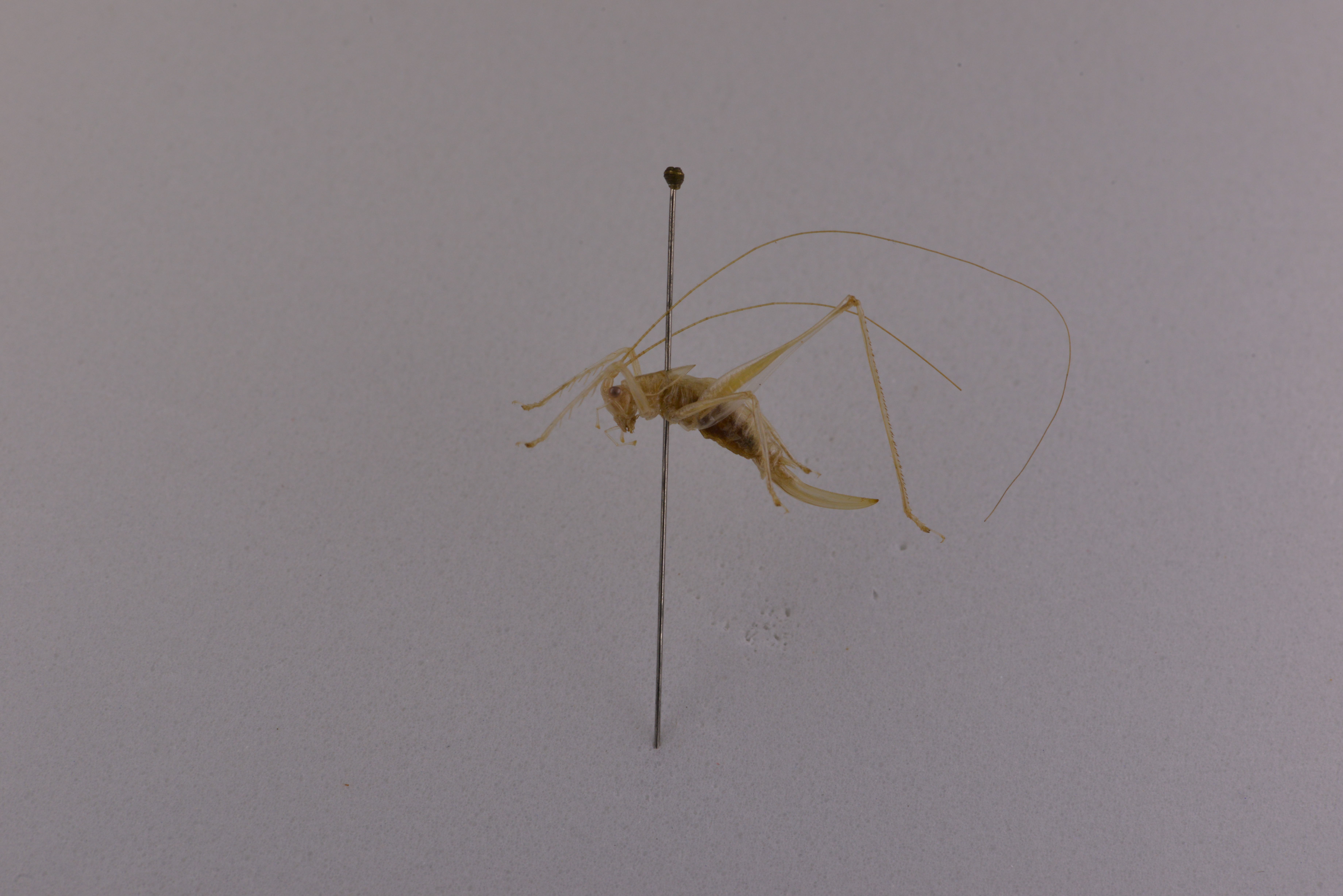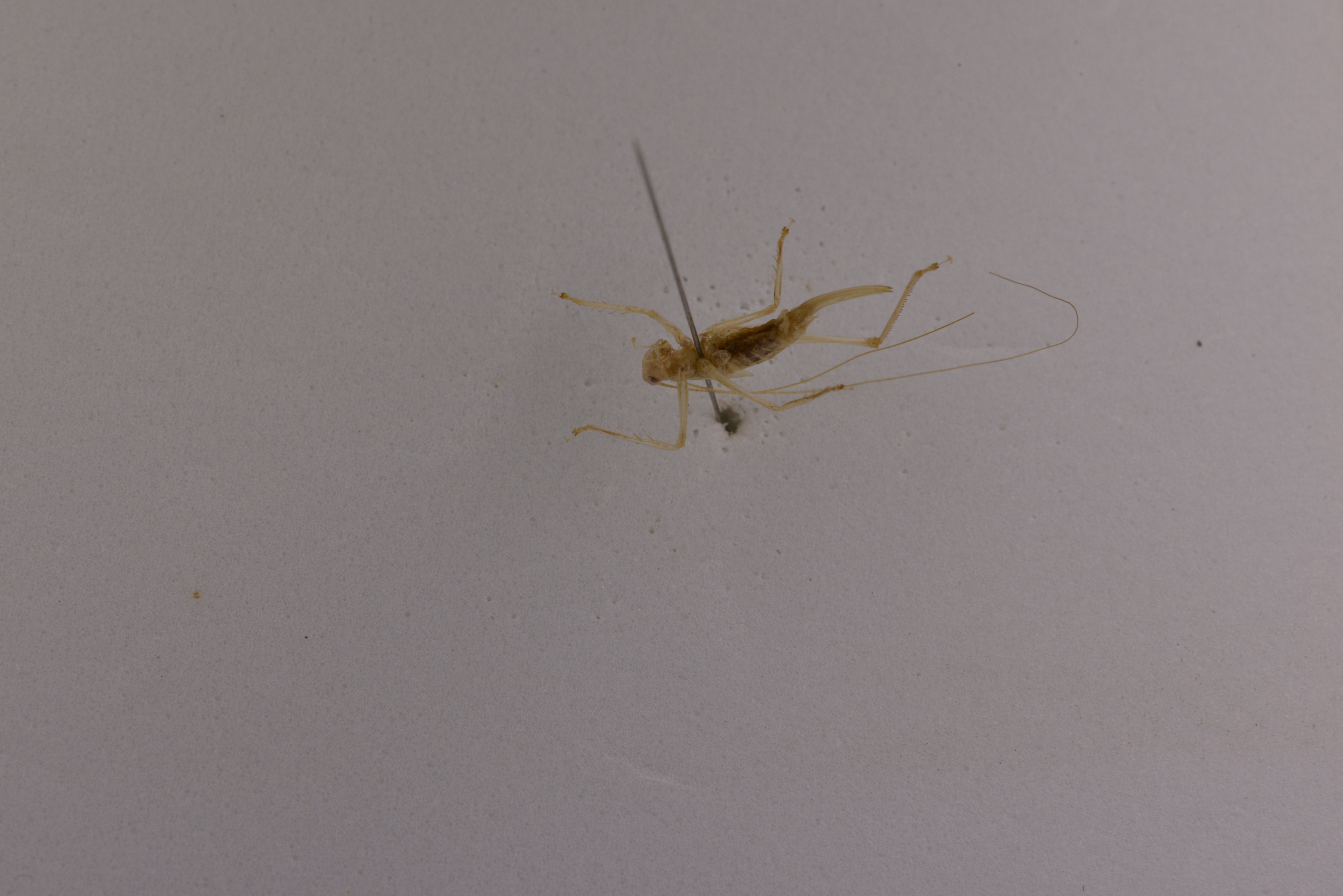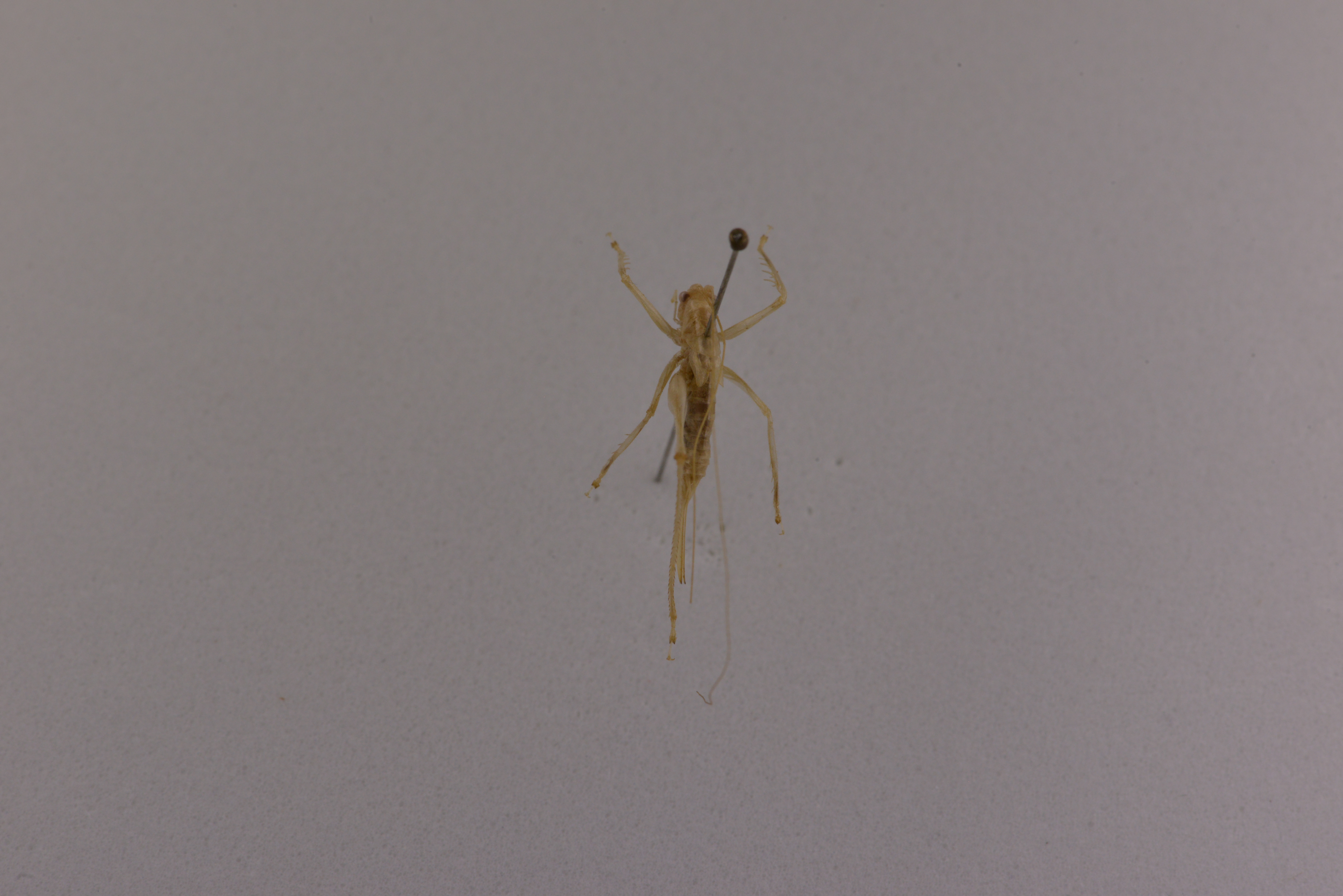 Thoracic auditory spiracle totally exposed. Tegmina short, too transparent to notice while alive, hind margin