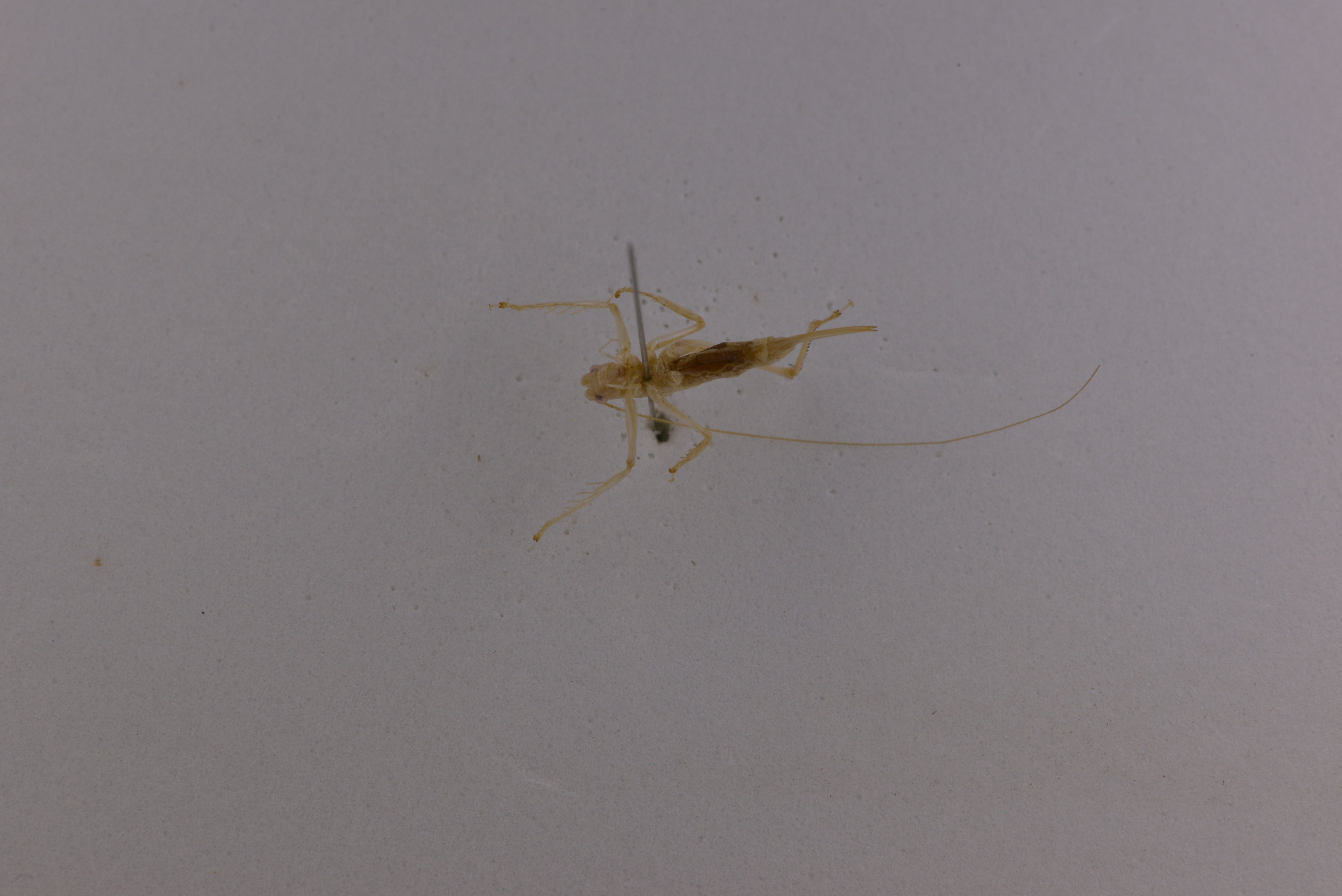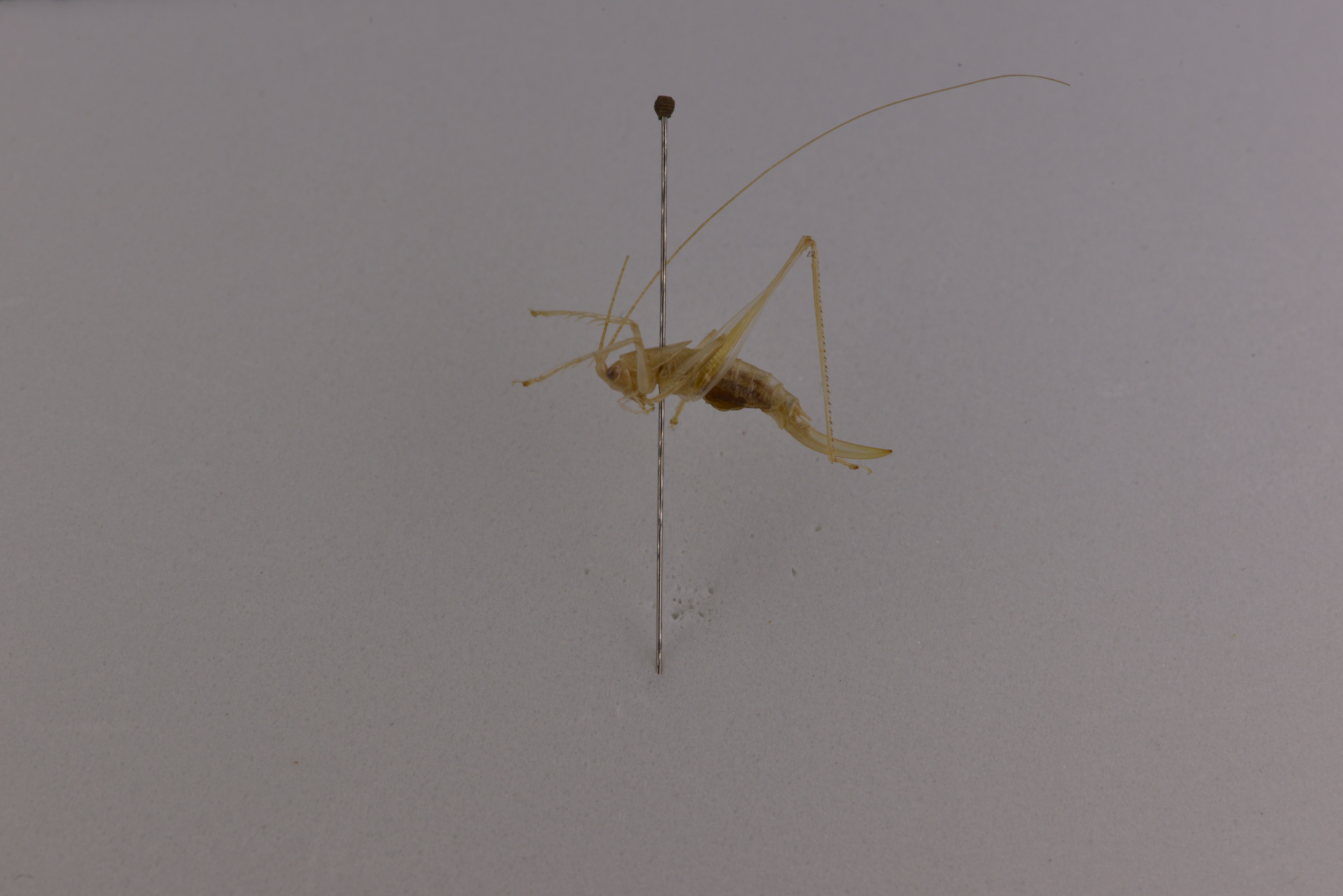 Thoracic auditory spiracle totally exposed. Tegmina short, too transparent to notice while alive, hind margin