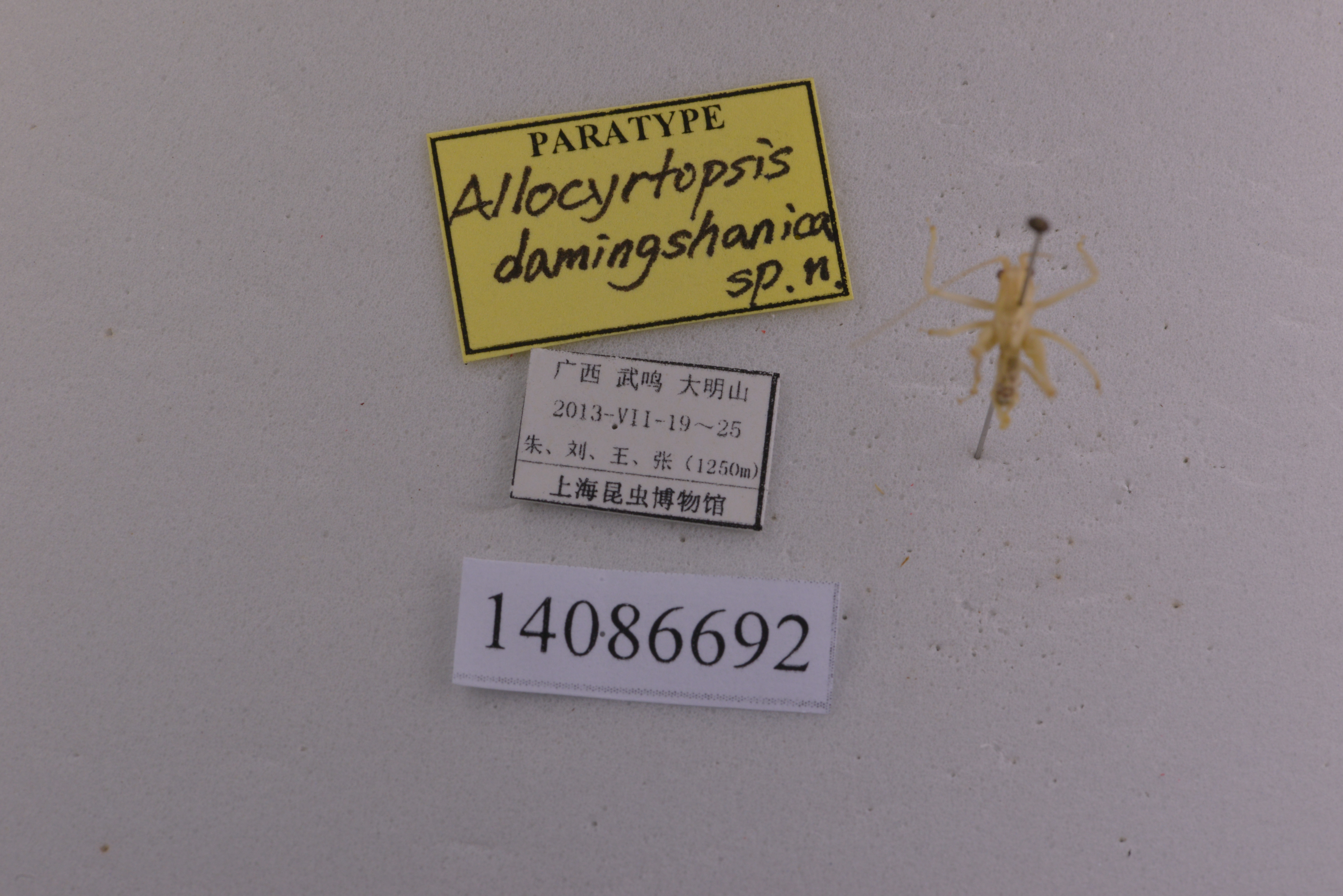 描述:Male. Fastigium of vertex conical, apically blunt and dorsally furrowed. Head hypognathous, last