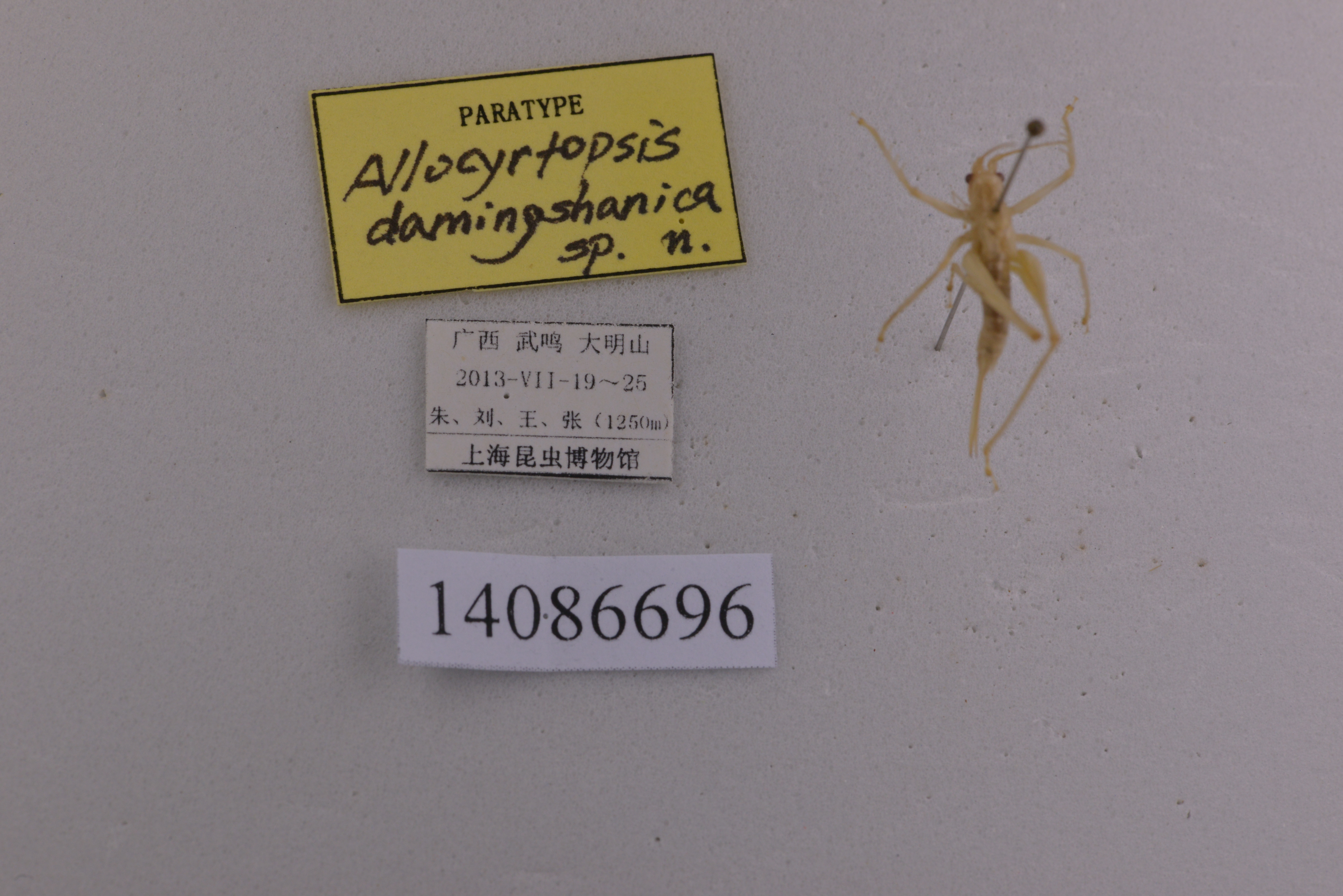 描述:Male. Fastigium of vertex conical, apically blunt and dorsally furrowed. Head hypognathous, last